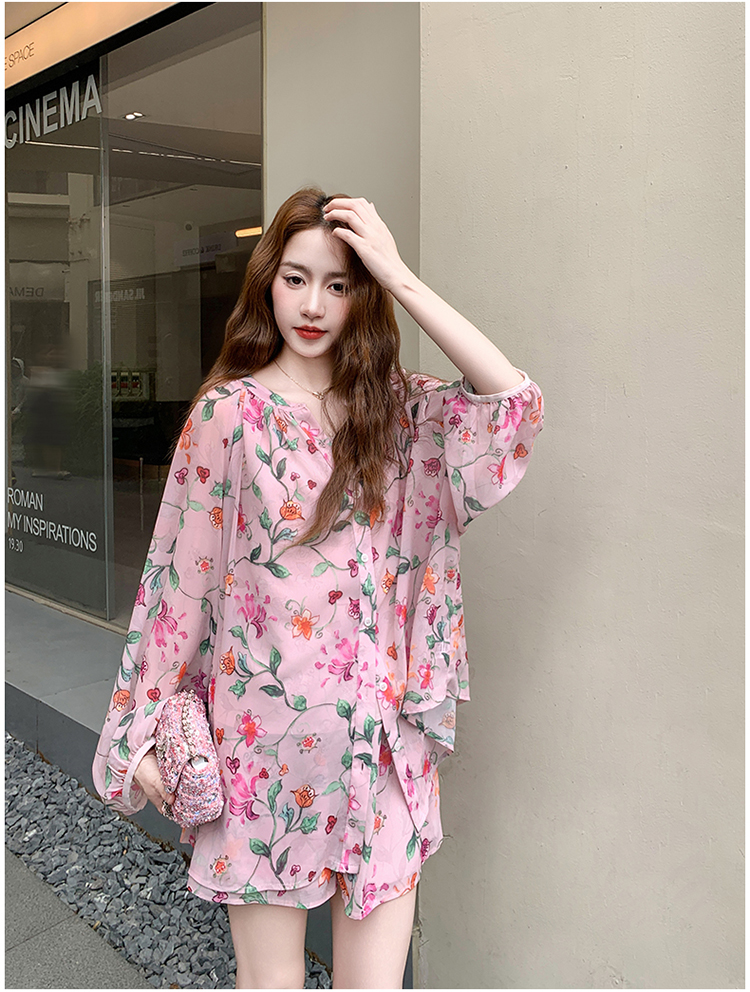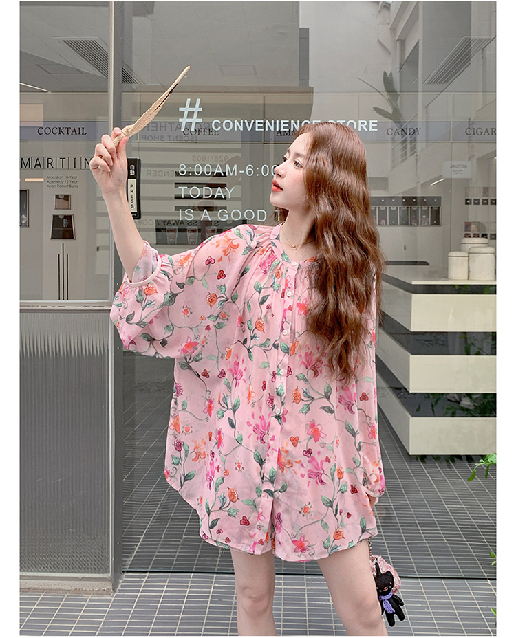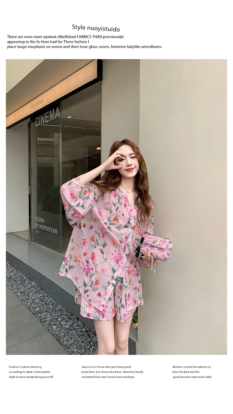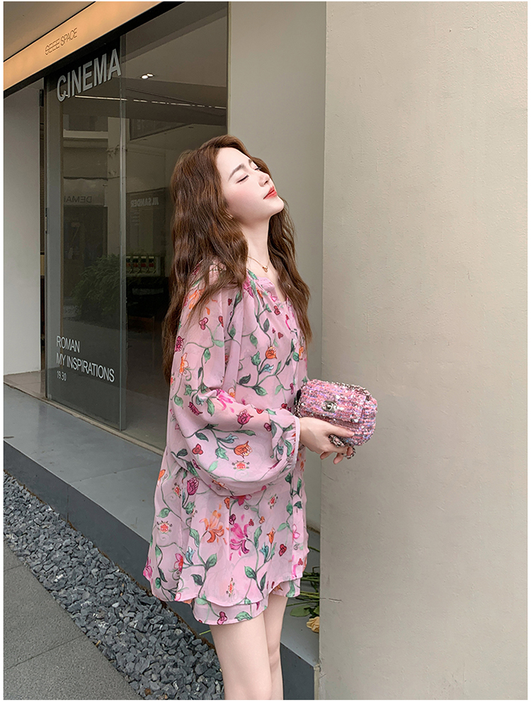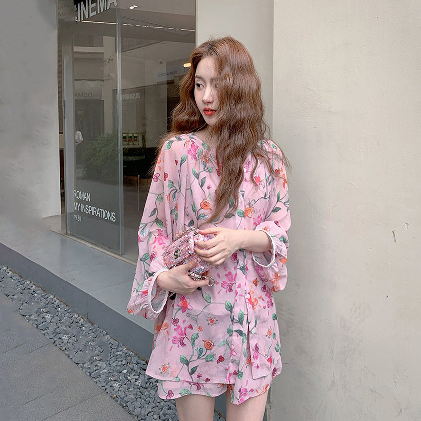 3点セット!【セットアップ】夏 日焼け防止 長袖プリントシャツ+キャミソール+ショートパンツ 3点上下セット【SHシリーズ】