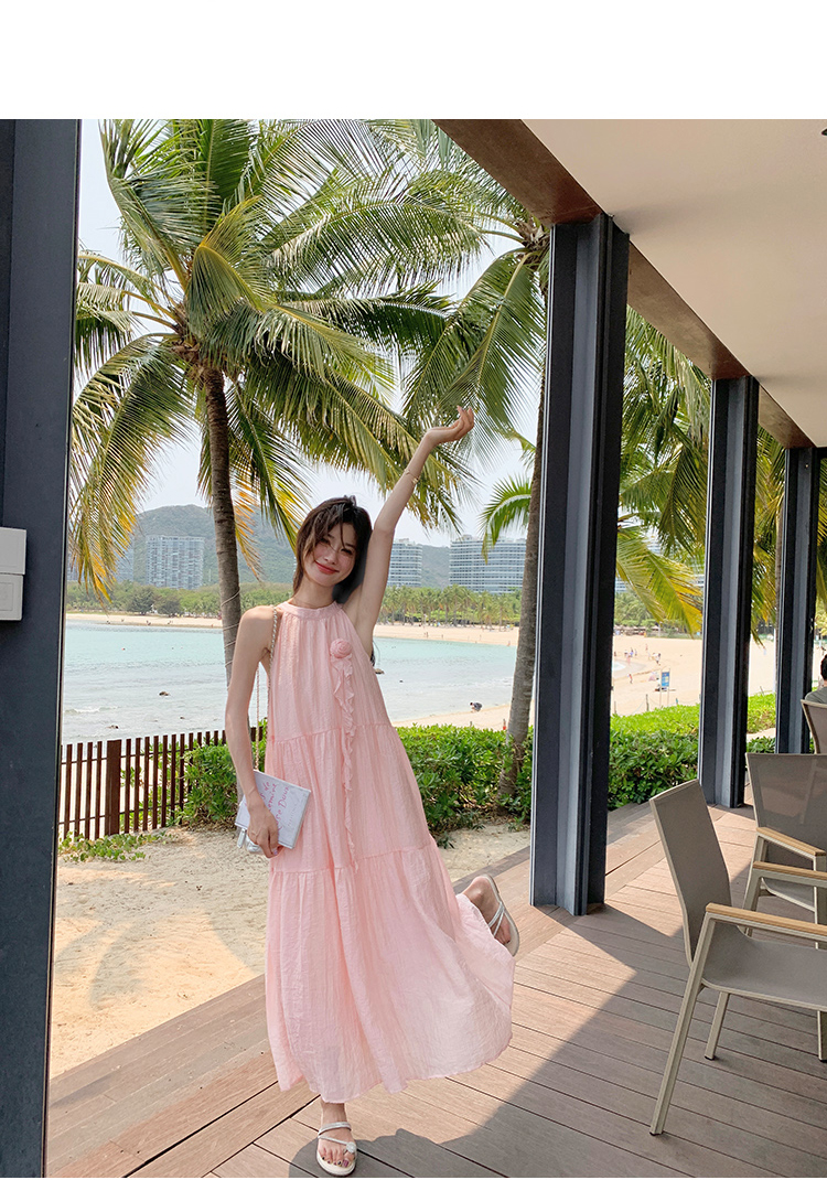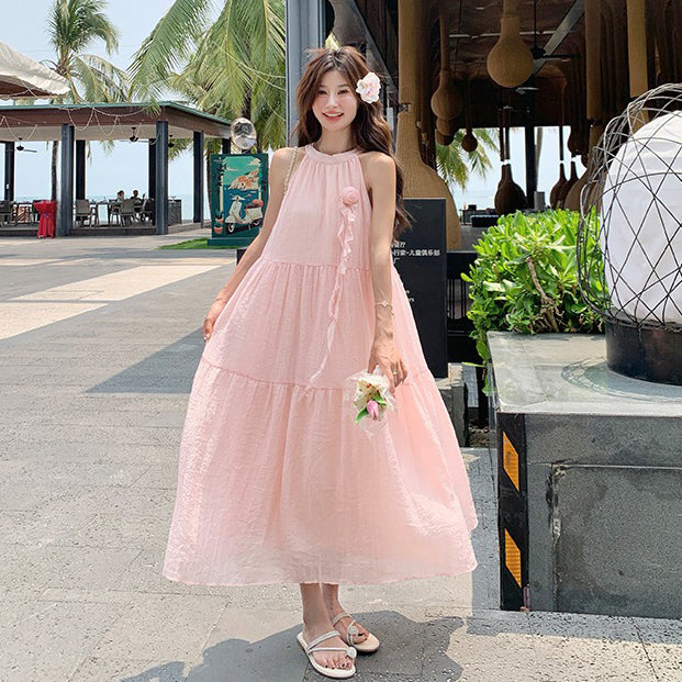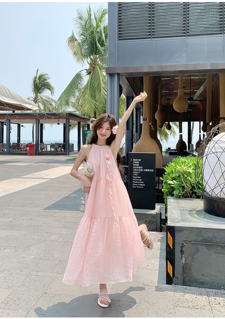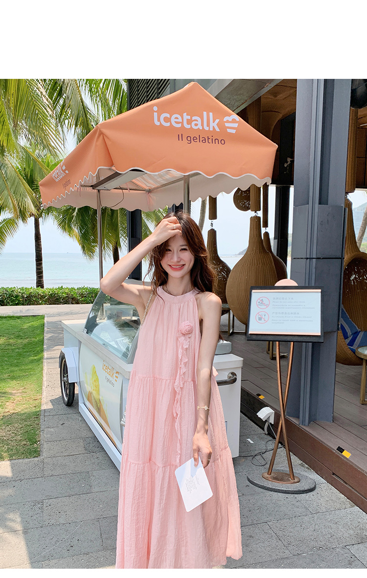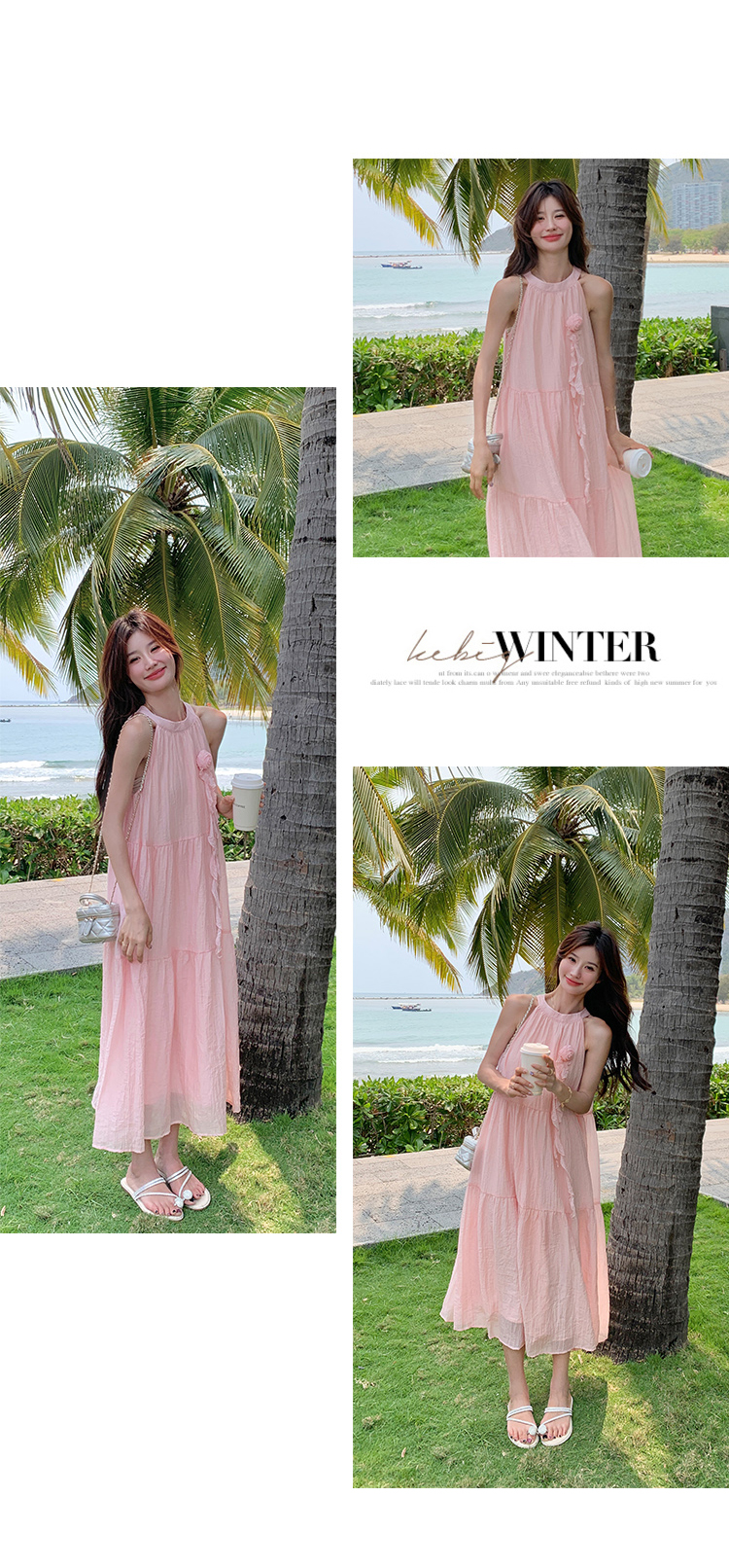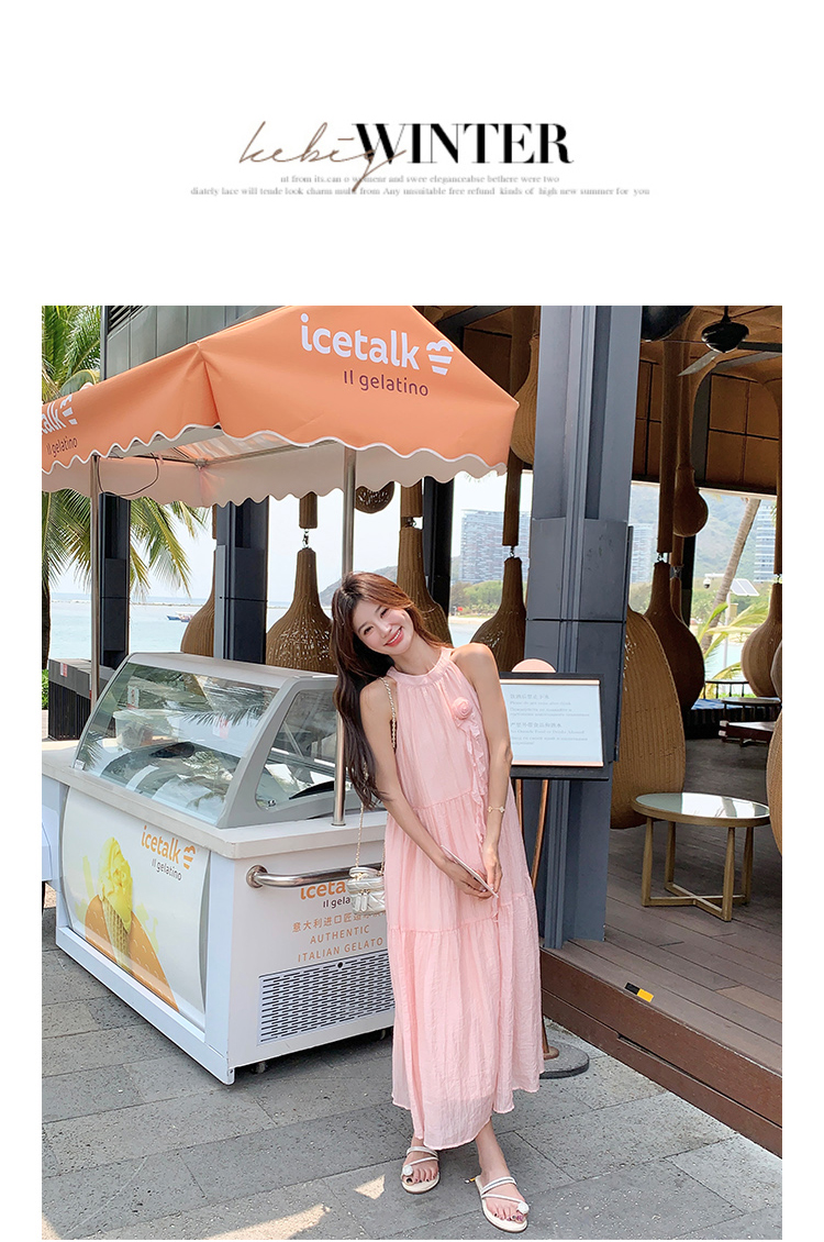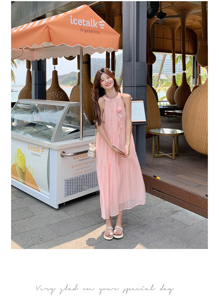 【商品名】【ワンピース】夏 バカンス風 立体フラワー 甘め ハイネックノースリーブワンピース【JZシリーズ】