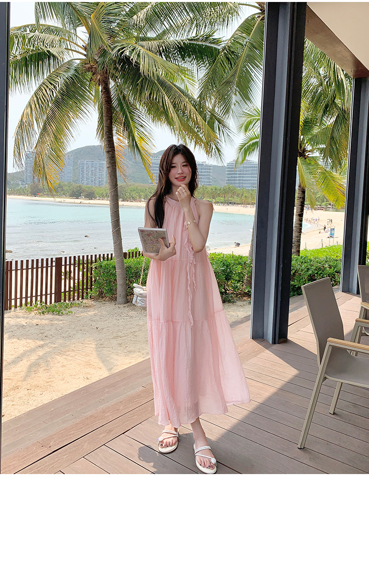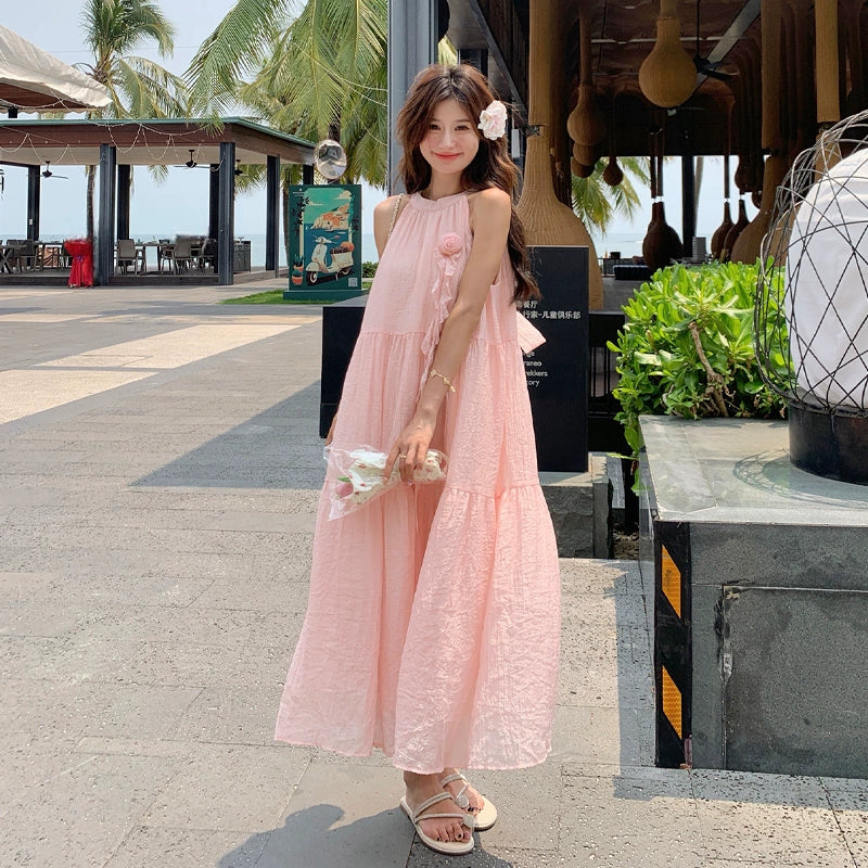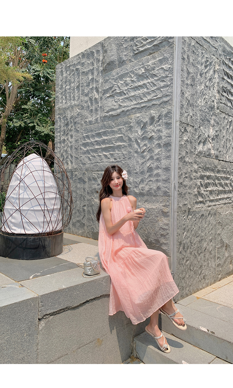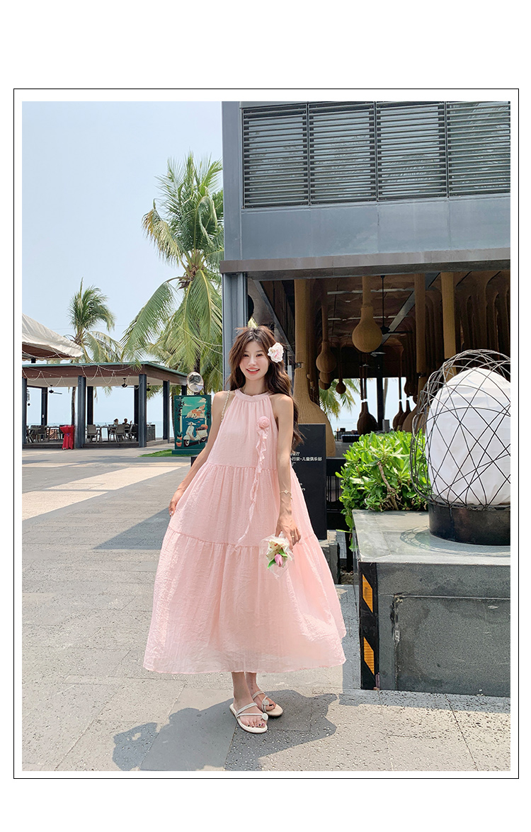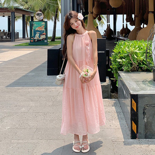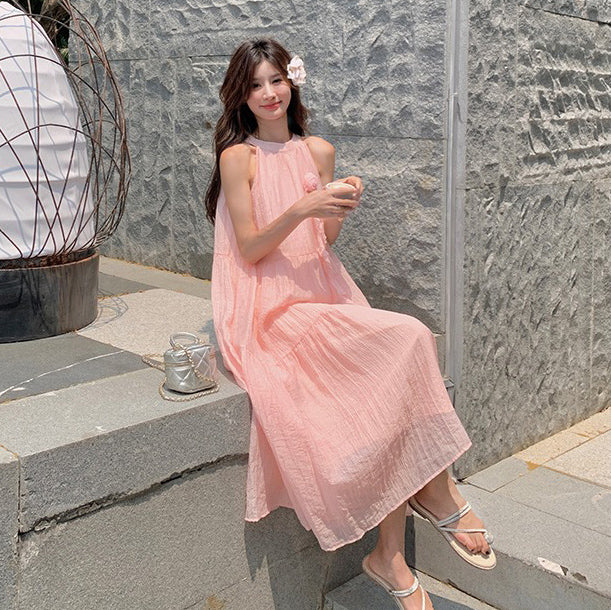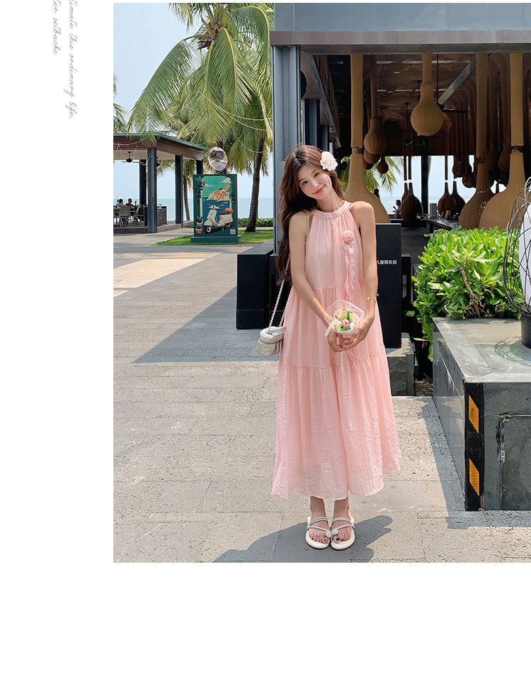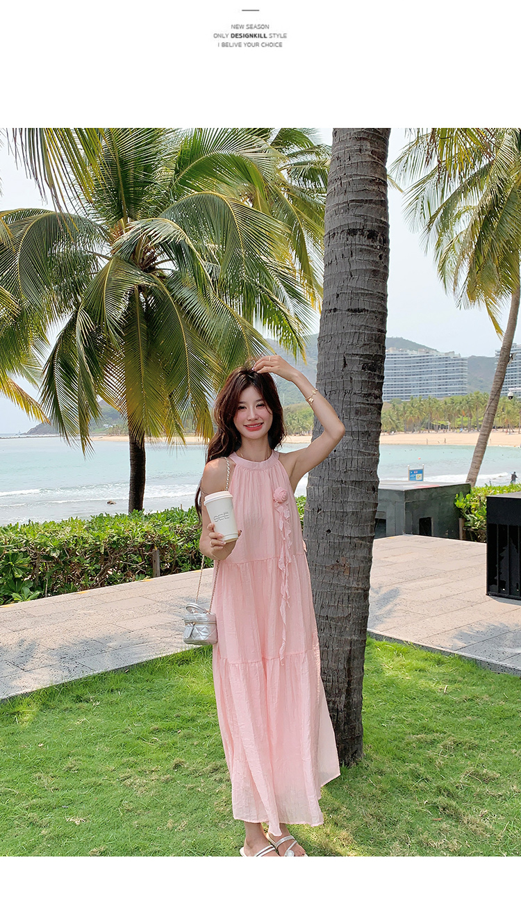 【商品名】【ワンピース】夏 バカンス風 立体フラワー 甘め ハイネックノースリーブワンピース【JZシリーズ】