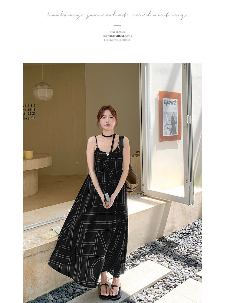 【商品名】【ワンピース】バカンス配色ジオメトリックプリント リラックス感細見え ノースリーブキャミワンピース【SHシリーズ】