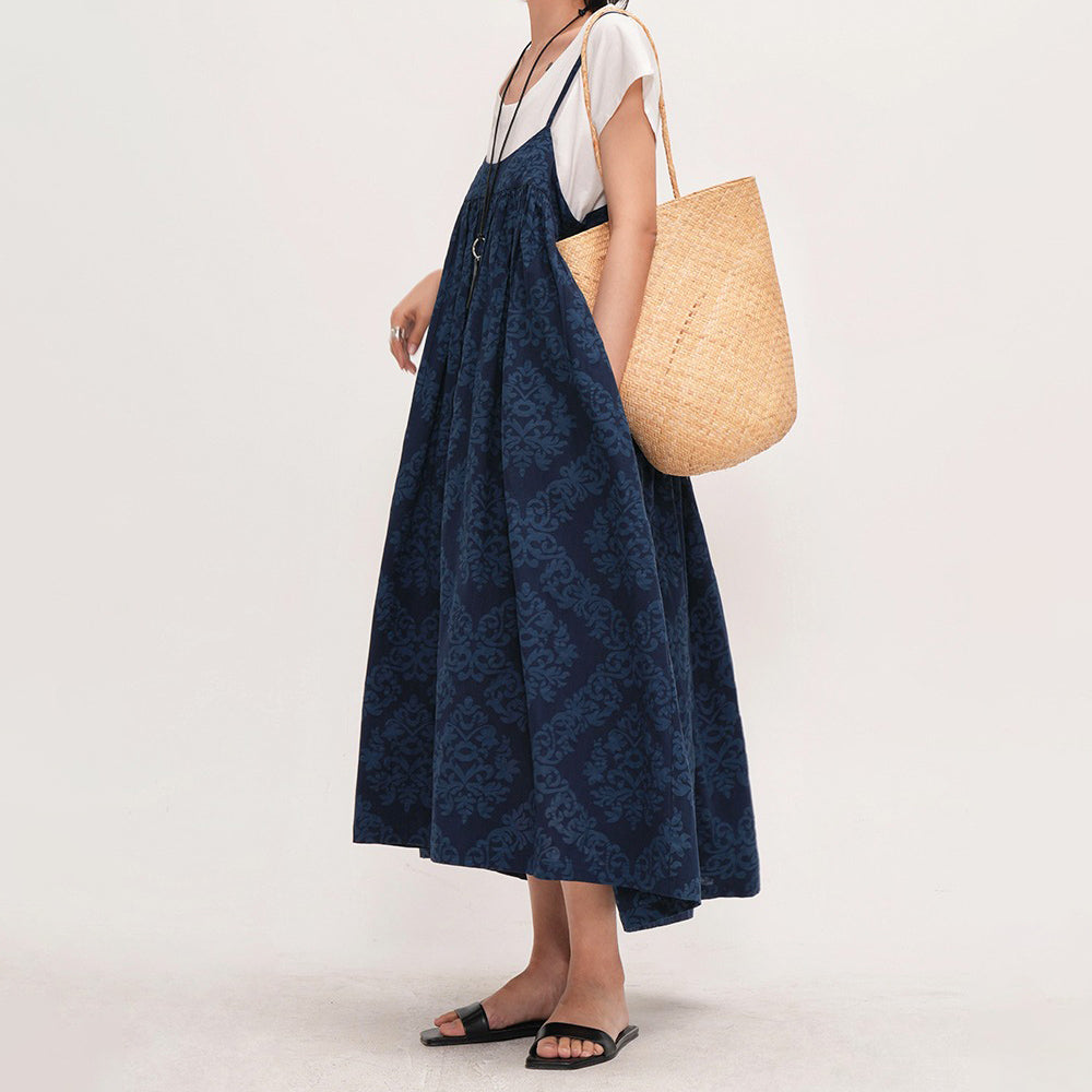【ワンピース】【15~20日内発送】上品シルエット 夏新作 エレガント ノースリーブコットンワンピース ゆったり大きめサイズ 花柄ロングドレス 気質&若見え【JZシリーズ】【SHシリーズ】