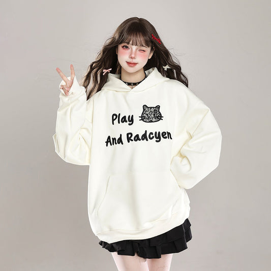 S~3XL【トップス】黒猫柄 フード付き スウェット レディース 秋冬 裏起毛 ゆったり おしゃれ【FCシリーズ】