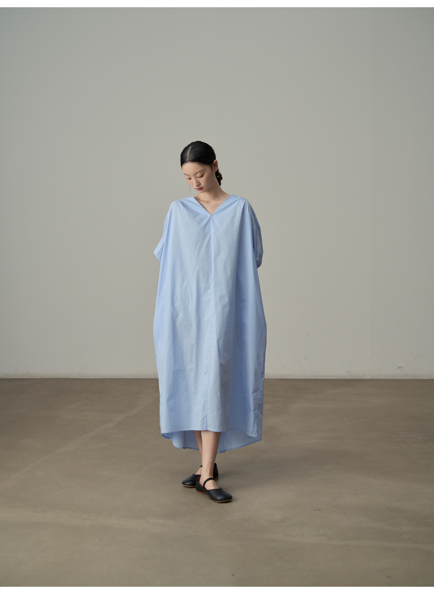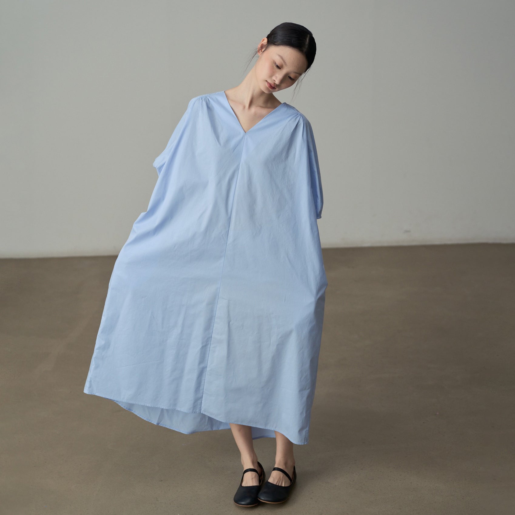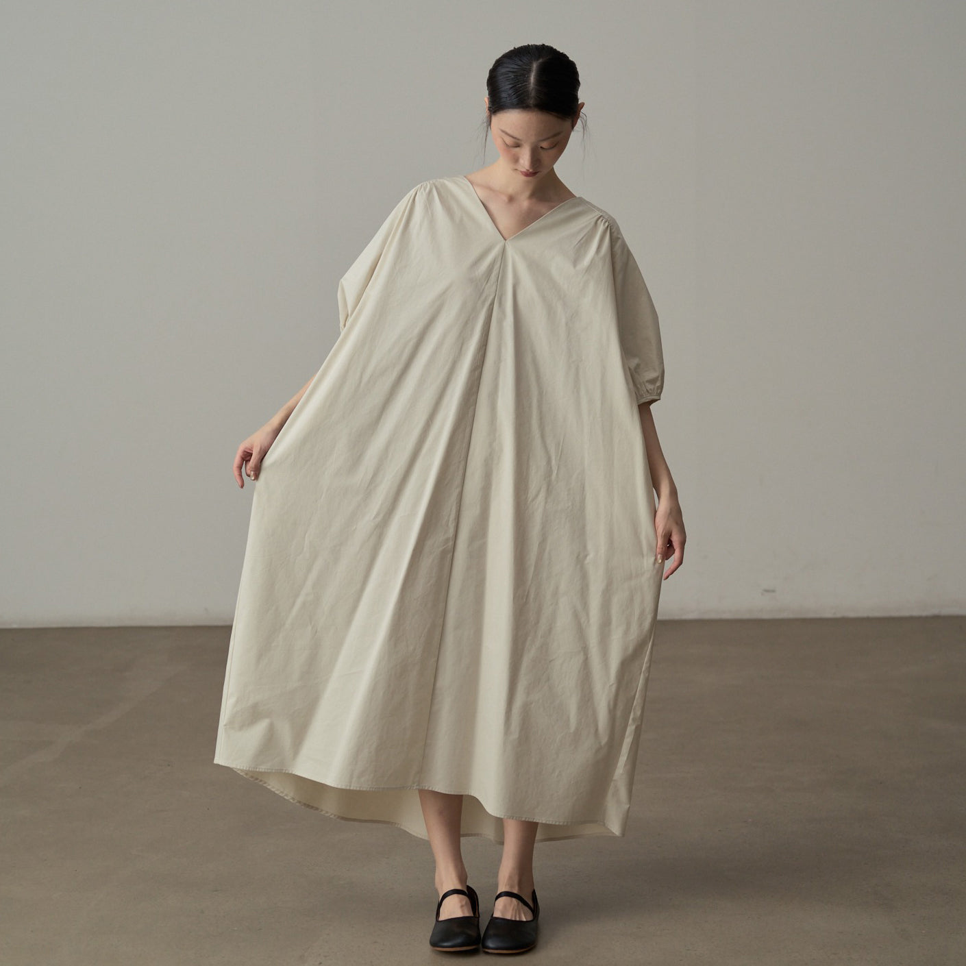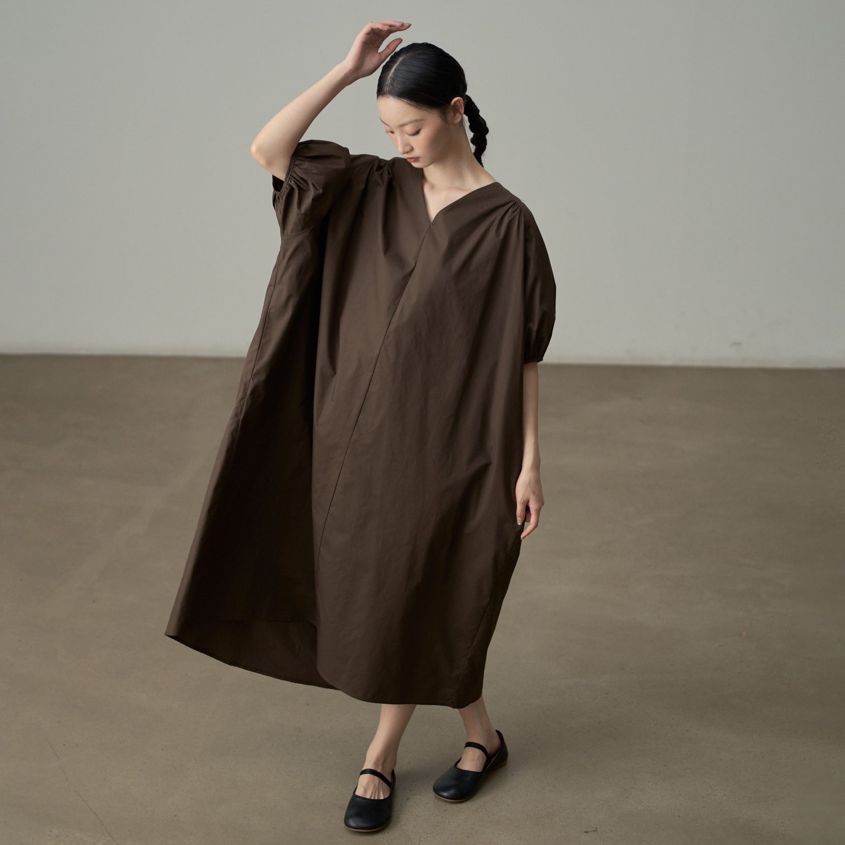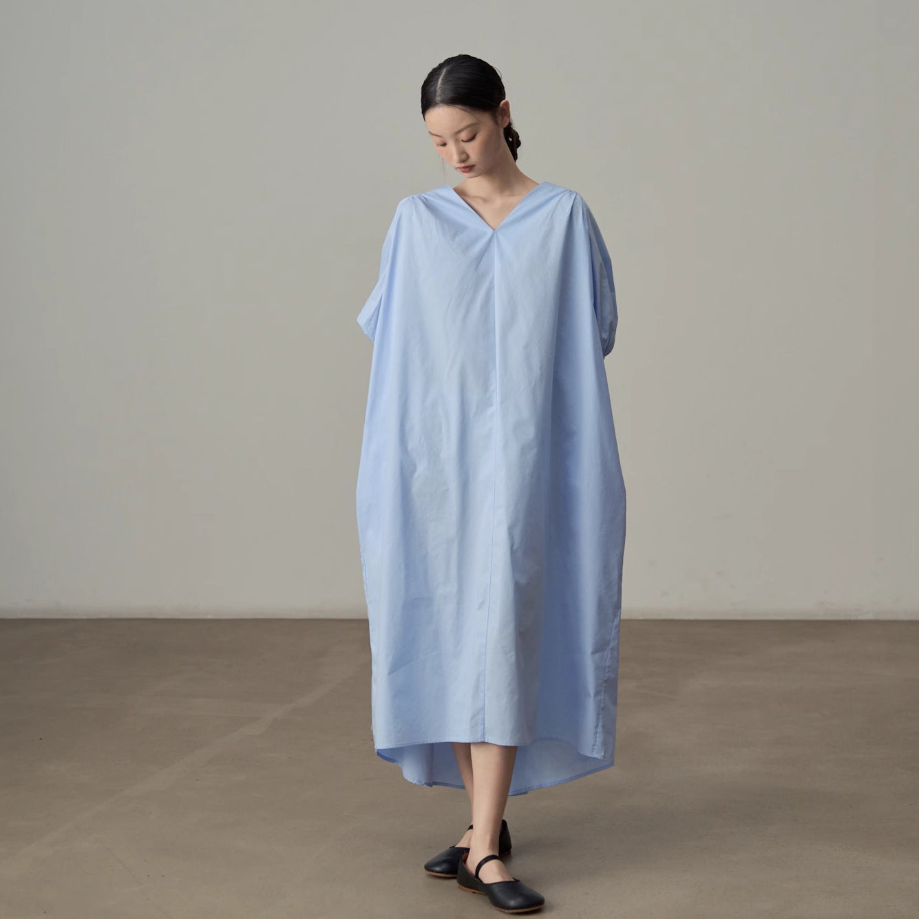 【ワンピース】夏新作 フランス風 Vネック パフ袖 無地ロングドレス 後ろ開き ゆったりシルエット 半袖ワンピース【JZシリーズ】