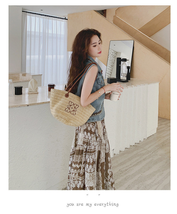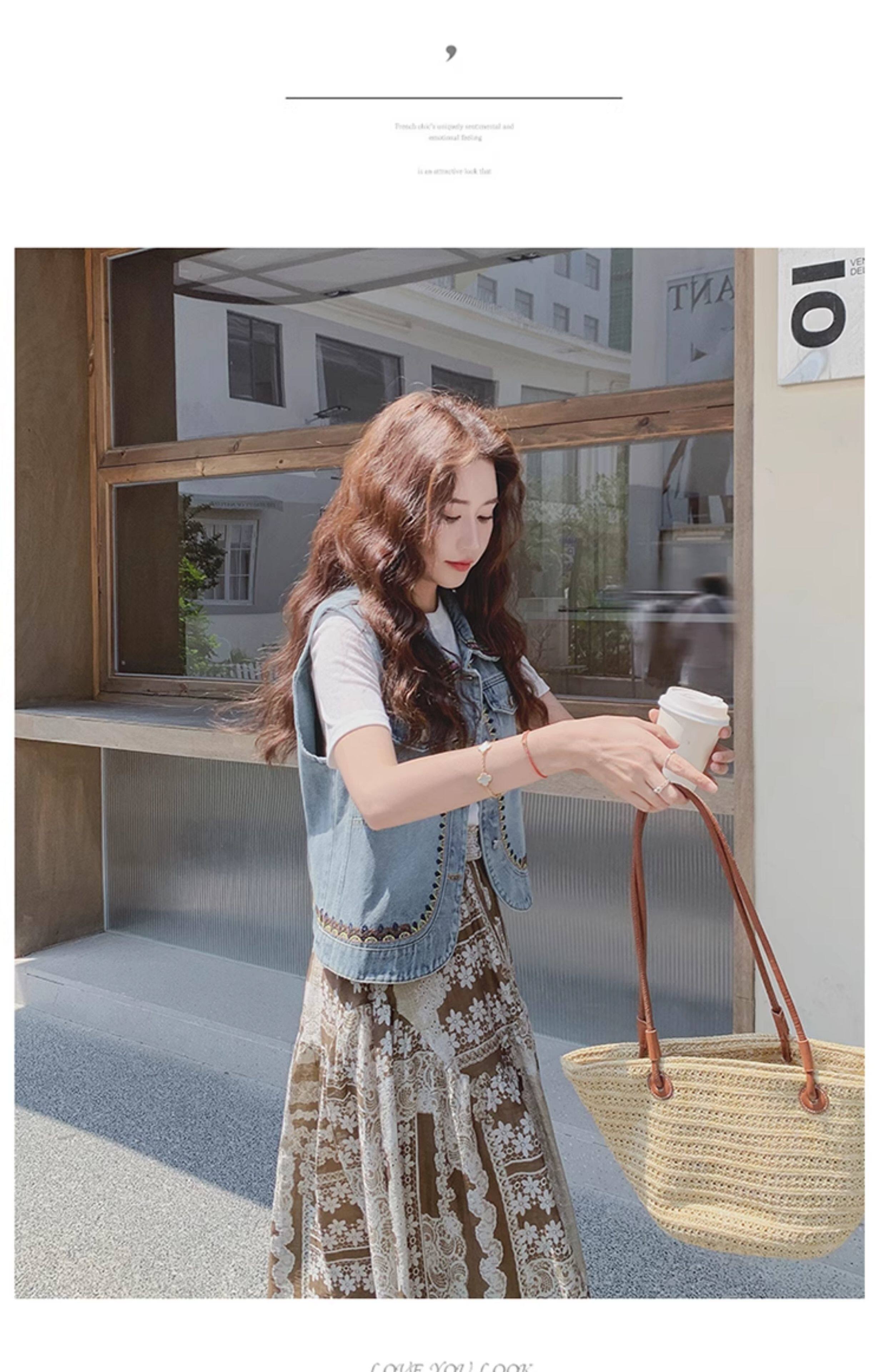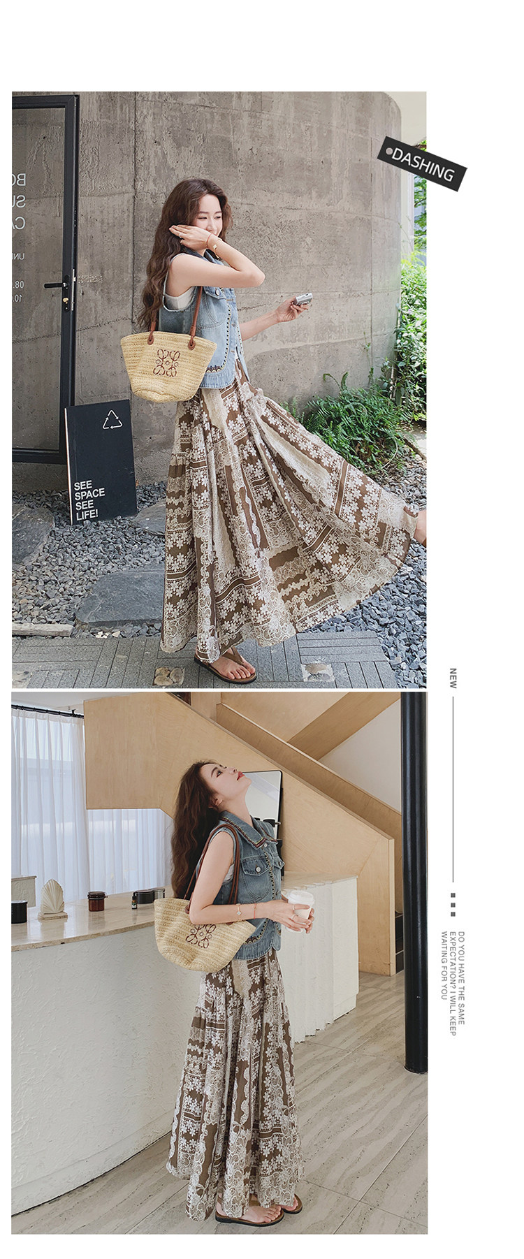 【商品名】2点セット!【ボトムス】夏 ボヘミアン×塩系スタイル 刺繍デニムベスト + プリントスカート 2点セットアップ【SHシリーズ】