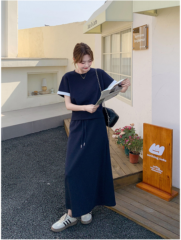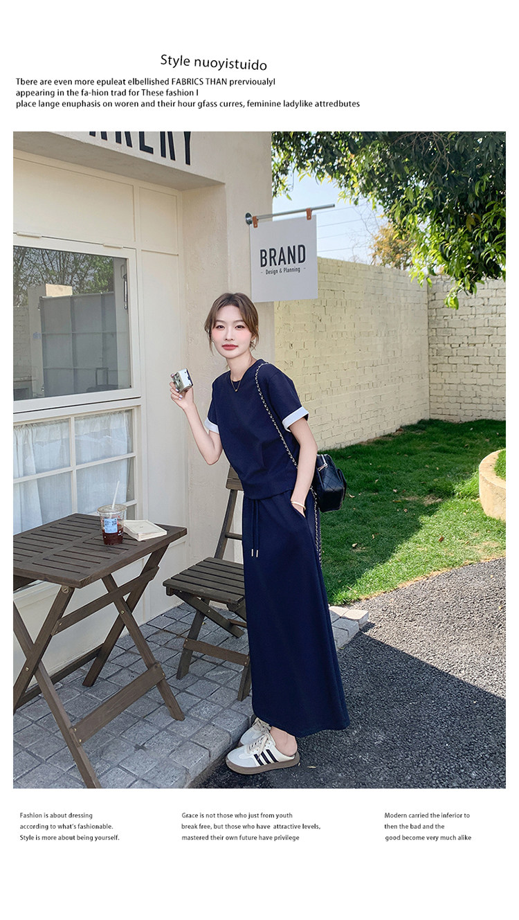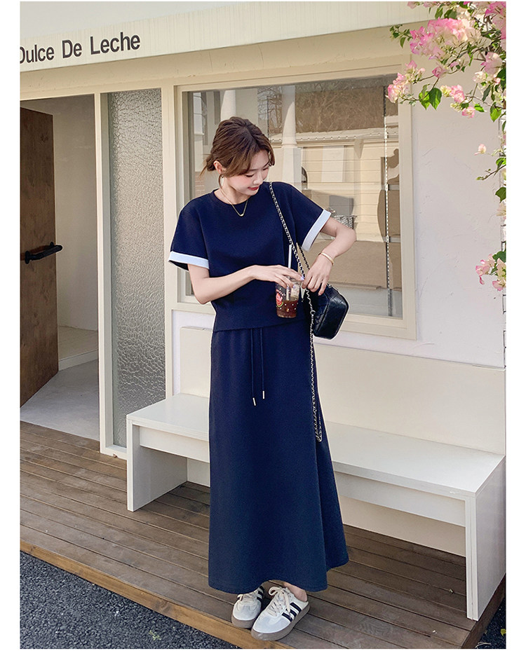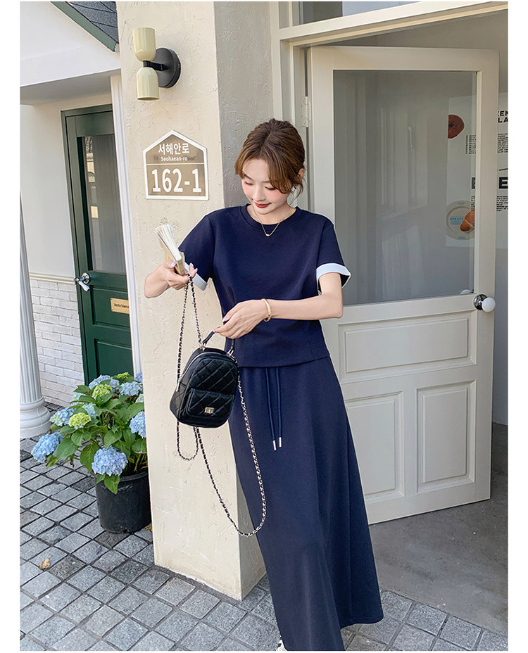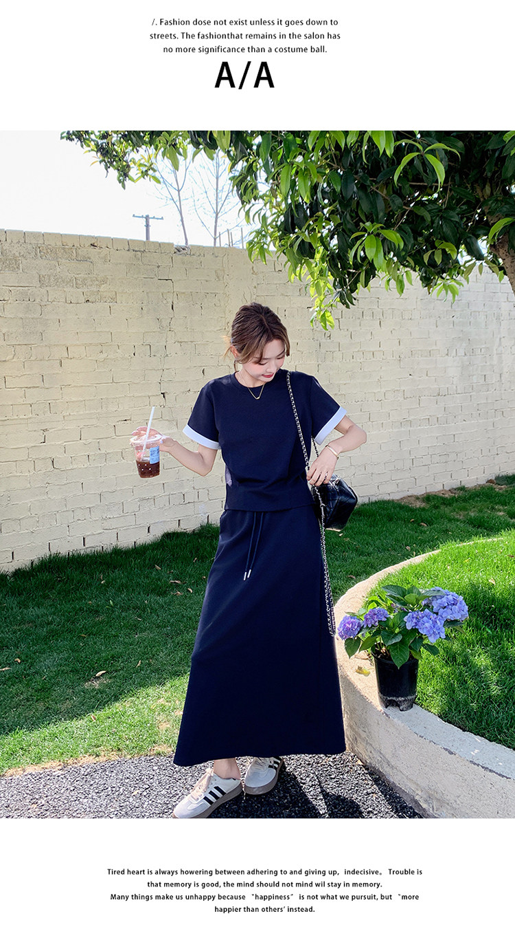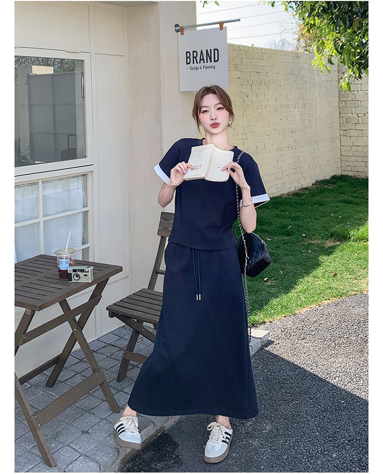 2点セット!【セットアップ】夏 体型カバー&若見えカジュアルセットアップ 半袖Tシャツ+スカート 上下セット【JZシリーズ】