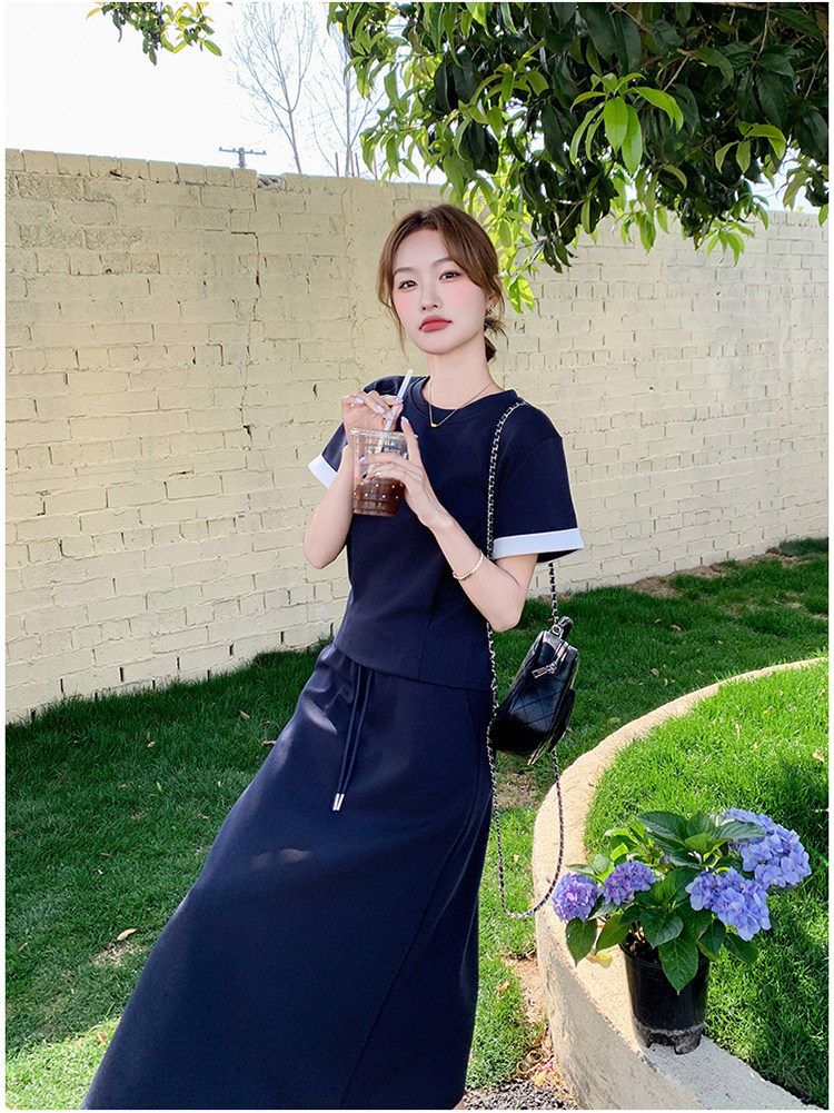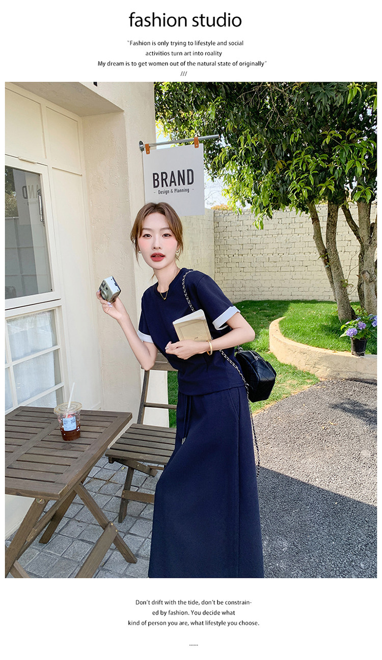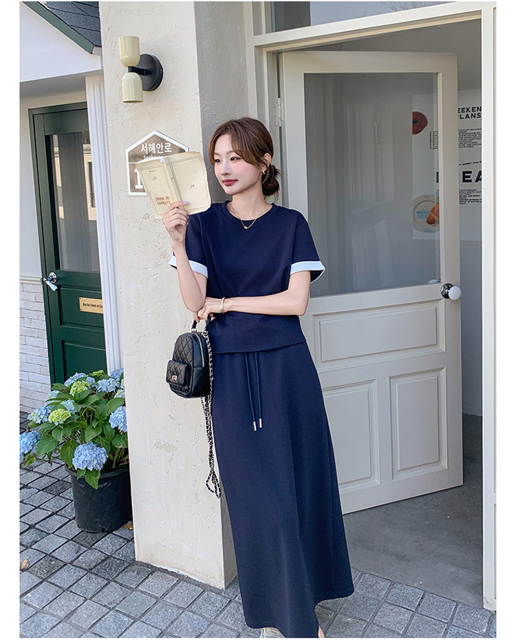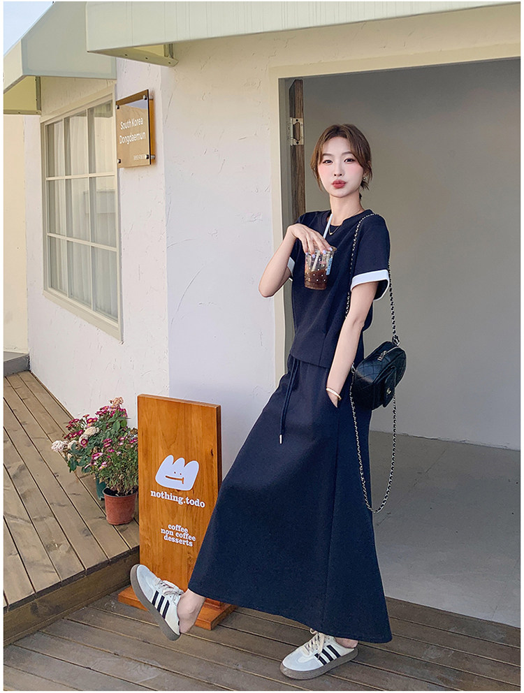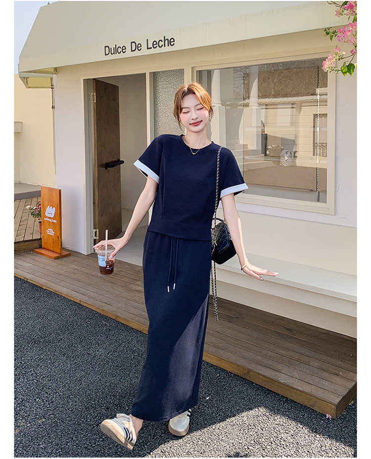 2点セット!【セットアップ】夏 体型カバー&若見えカジュアルセットアップ 半袖Tシャツ+スカート 上下セット【JZシリーズ】
