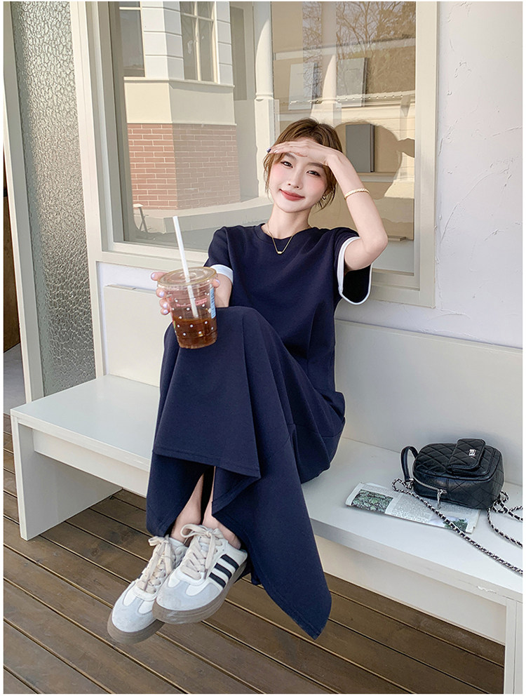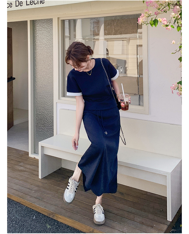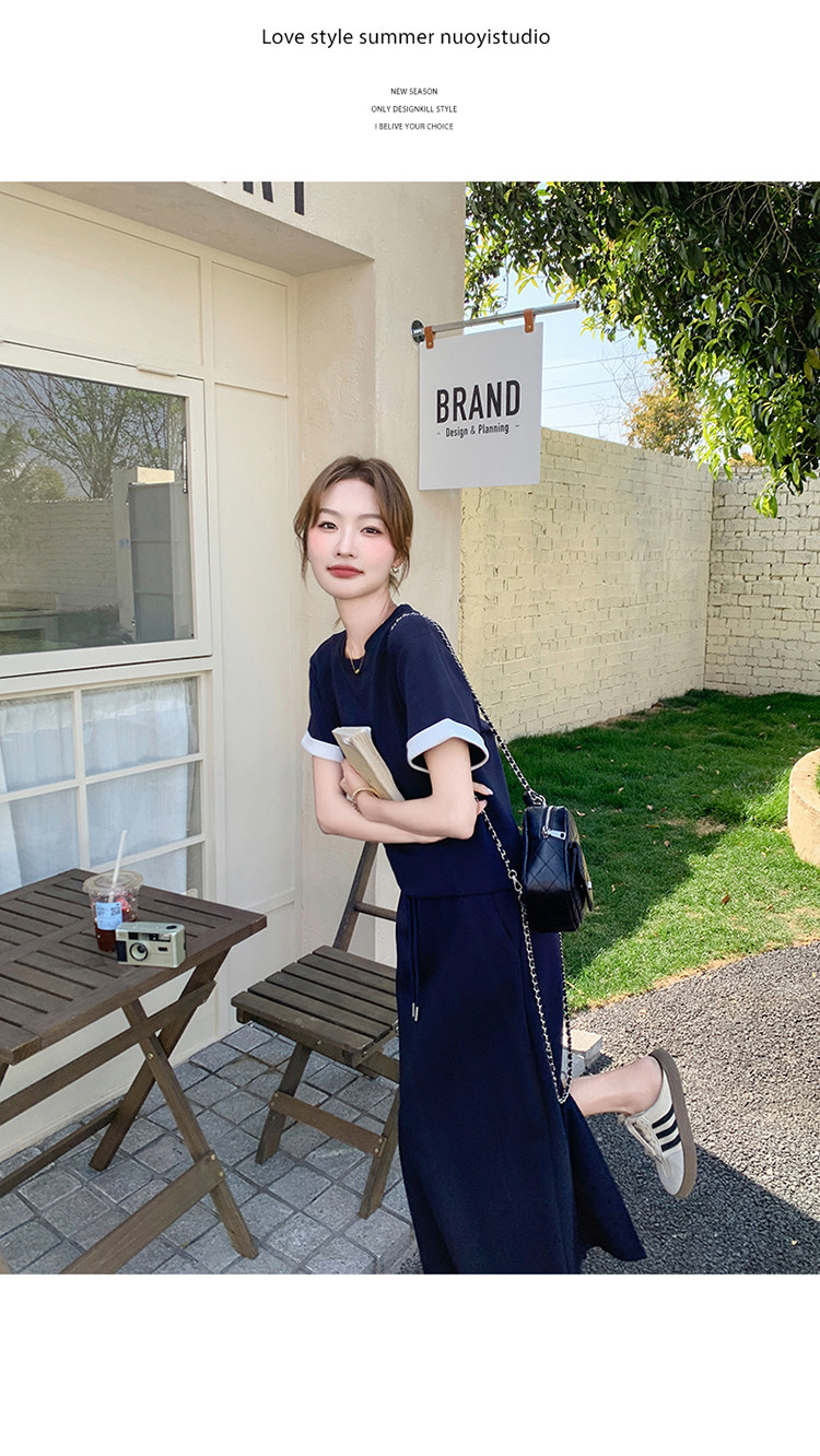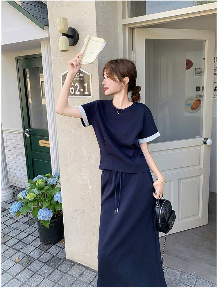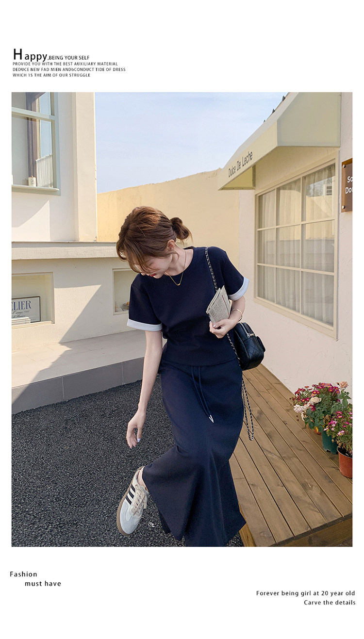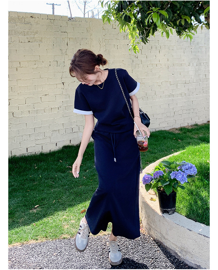 2点セット!【セットアップ】夏 体型カバー&若見えカジュアルセットアップ 半袖Tシャツ+スカート 上下セット【JZシリーズ】