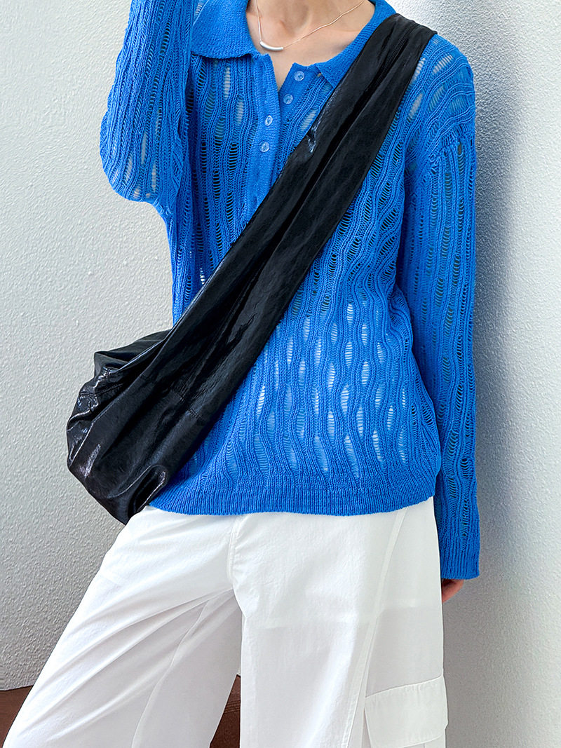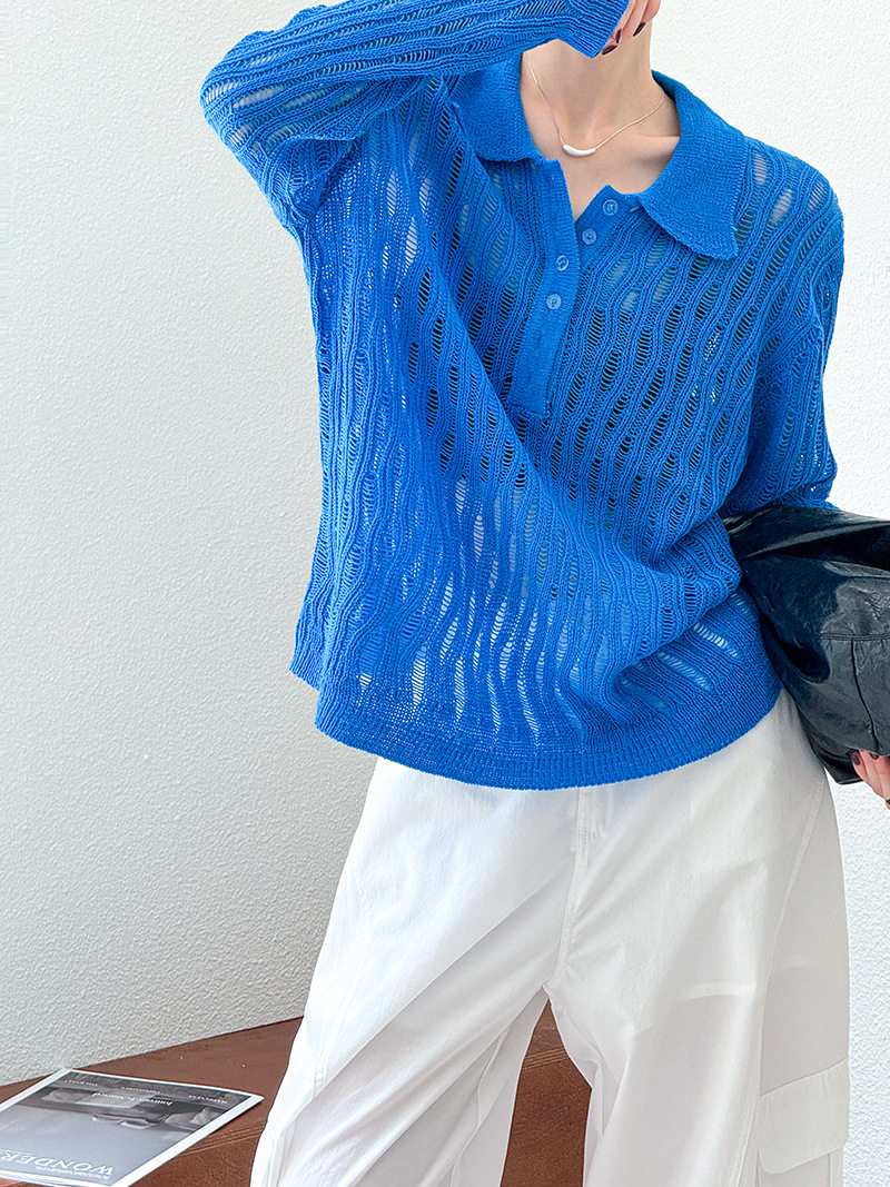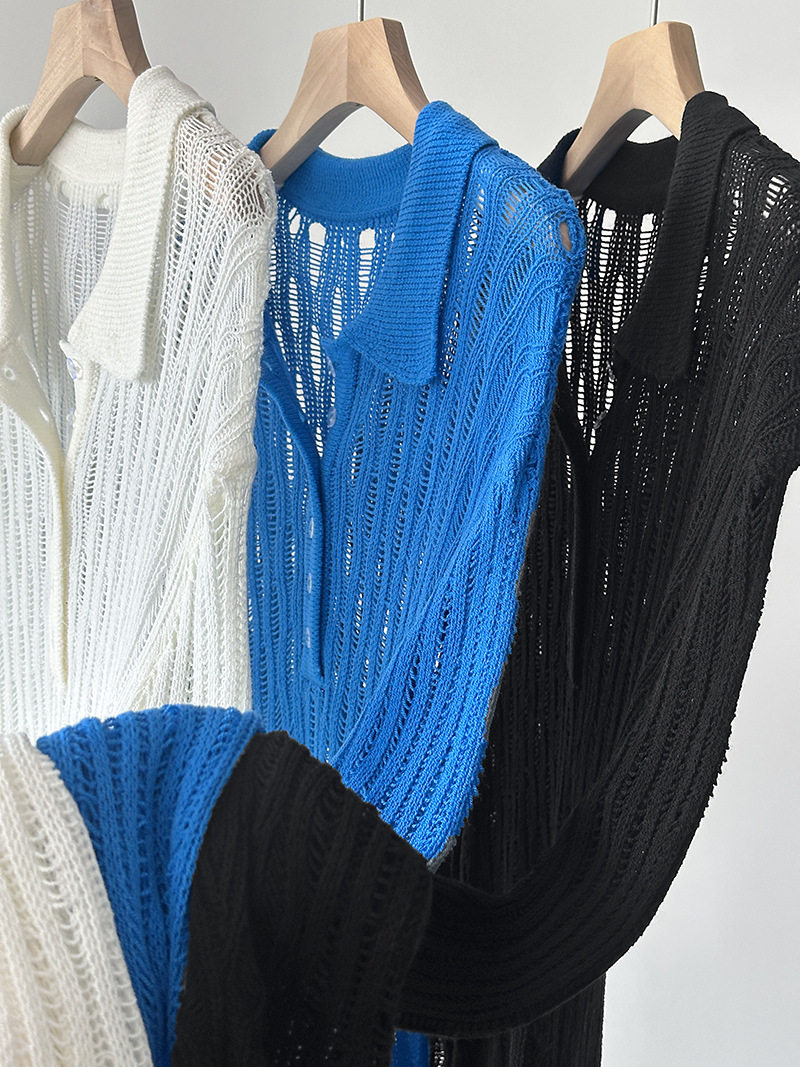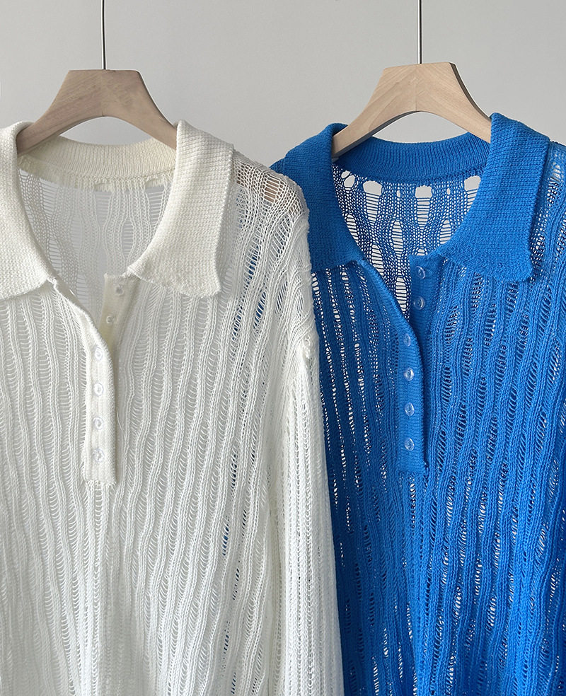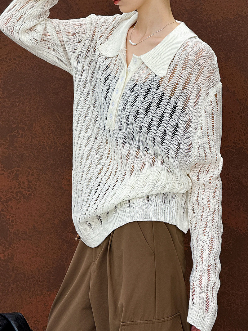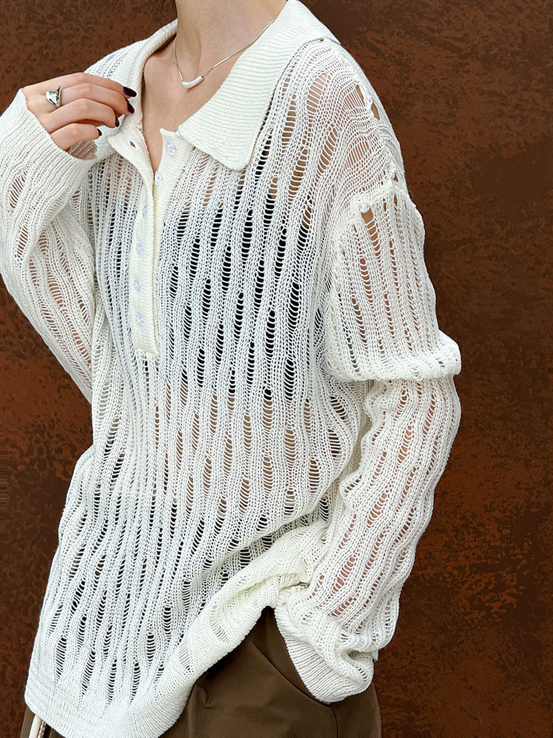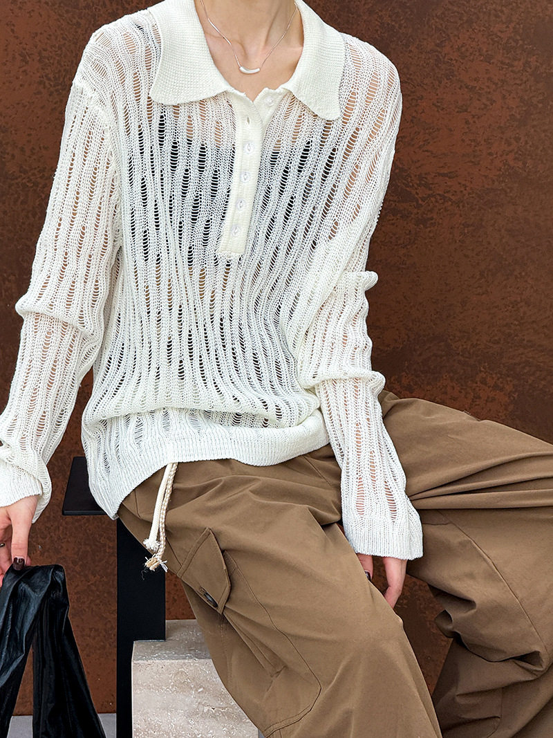 【トップス】秋先取り 大人可愛い透かし編みニットTシャツ 薄手 ゆったり【JZシリーズ】