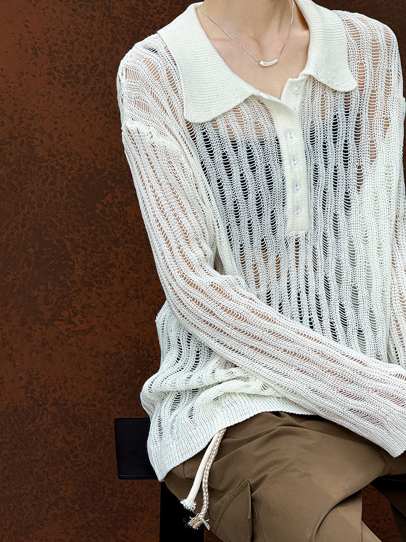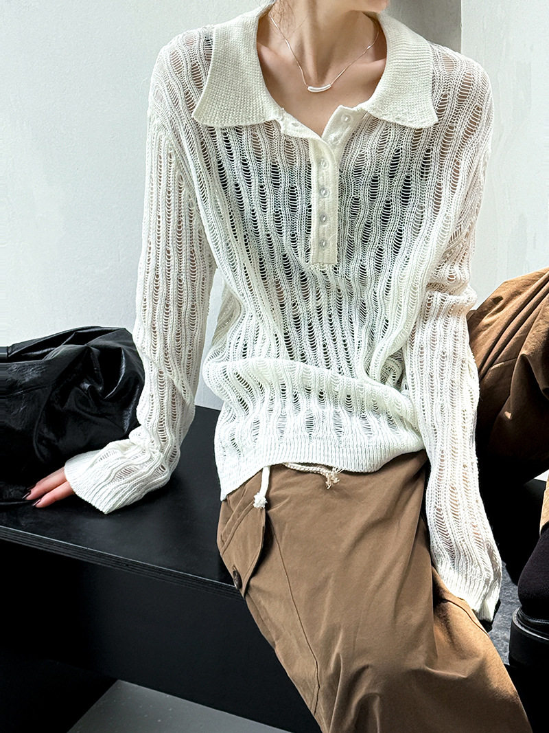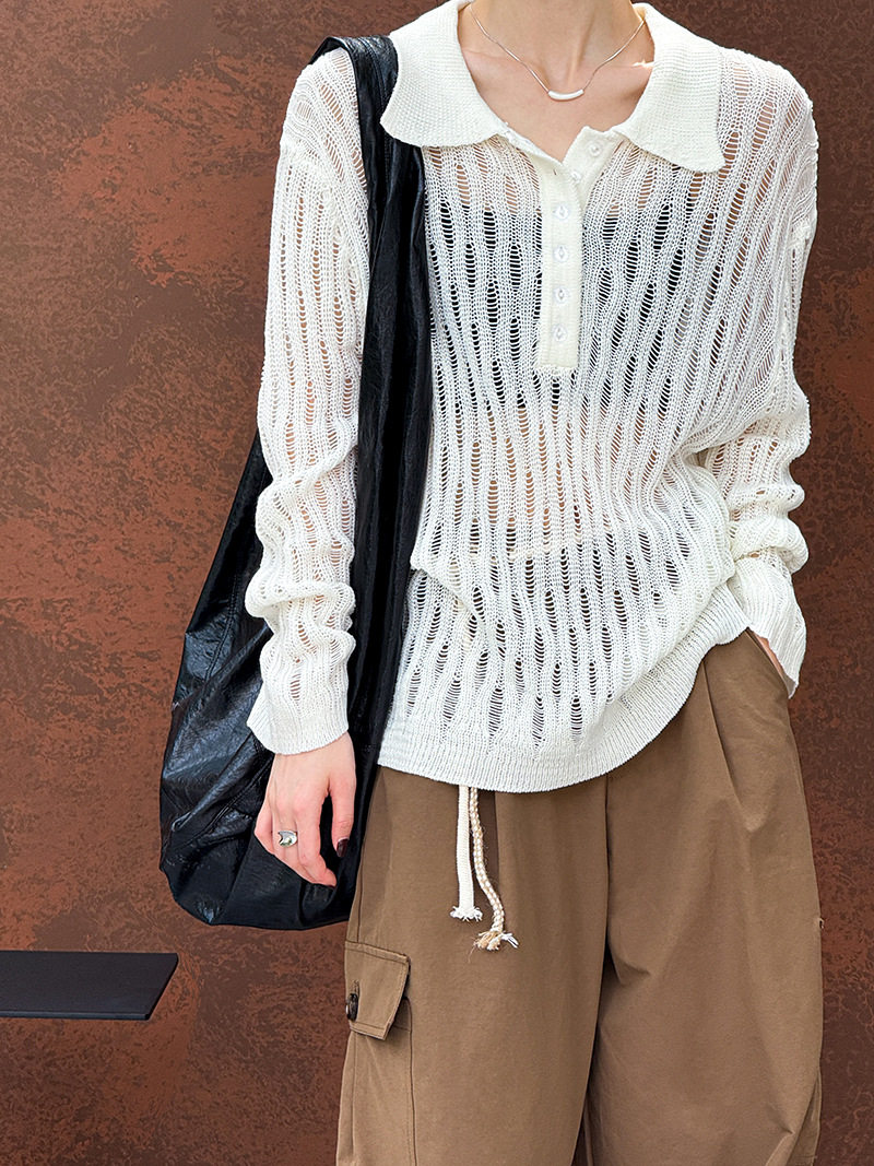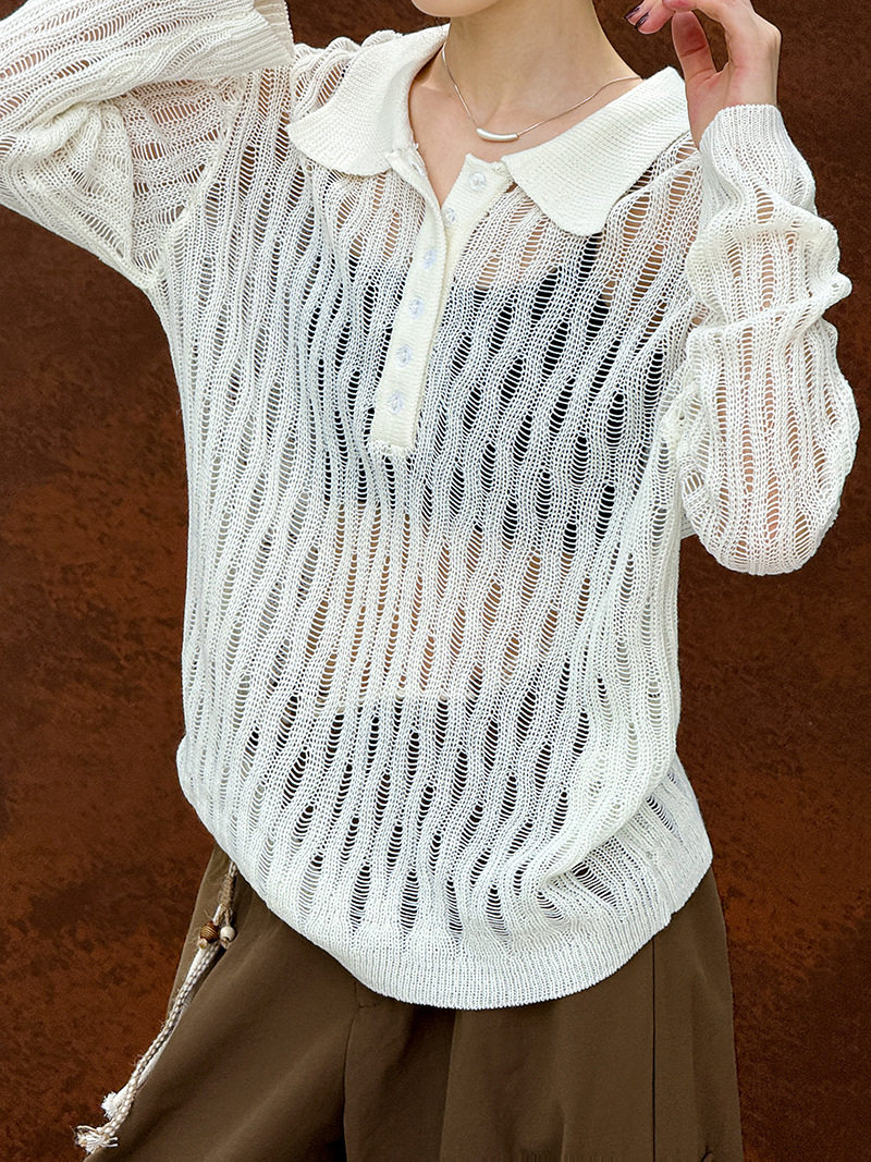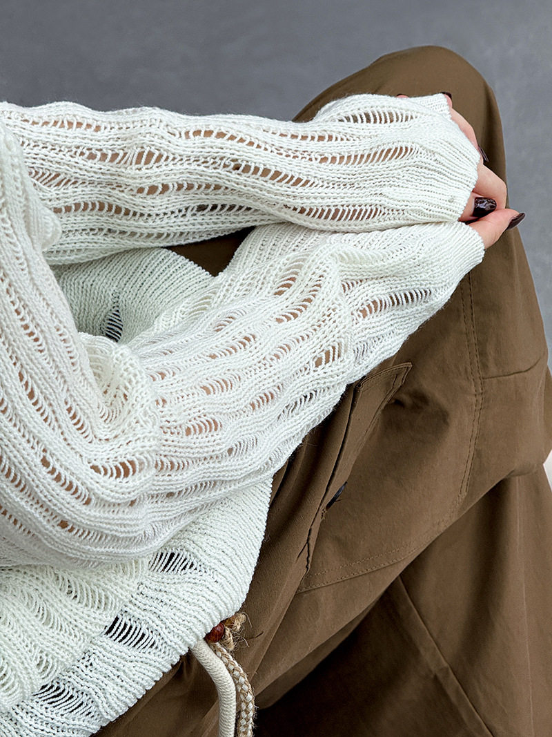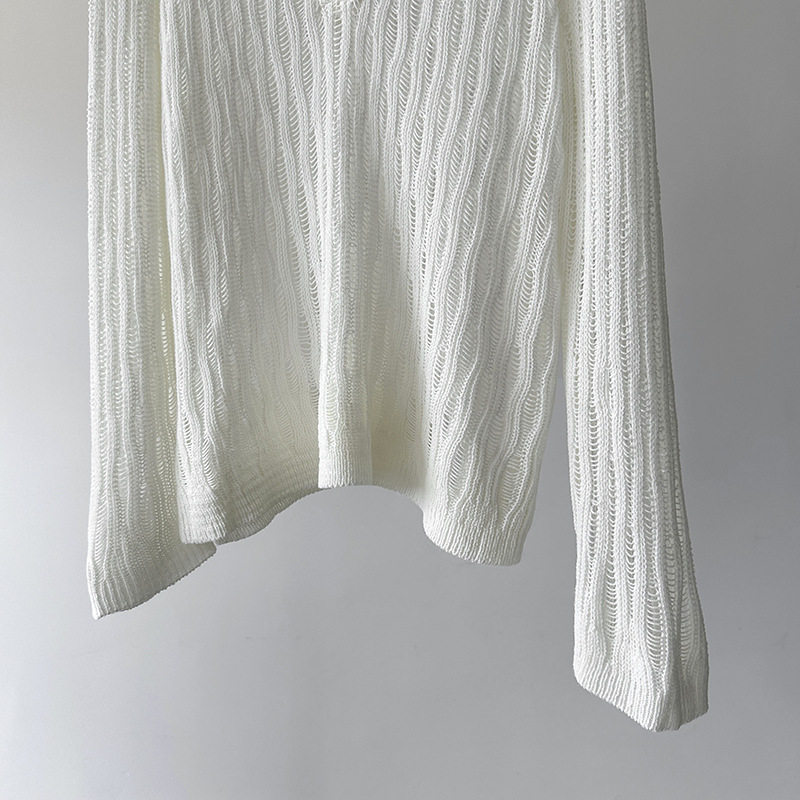 【商品名】【トップス】秋先取り 大人可愛い透かし編みニットTシャツ 薄手 ゆったり【JZシリーズ】