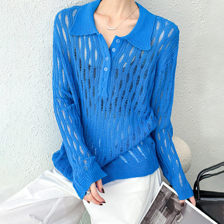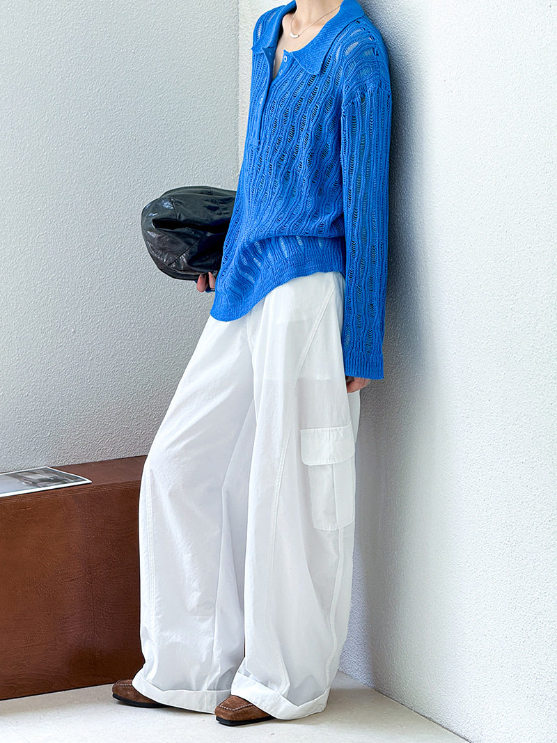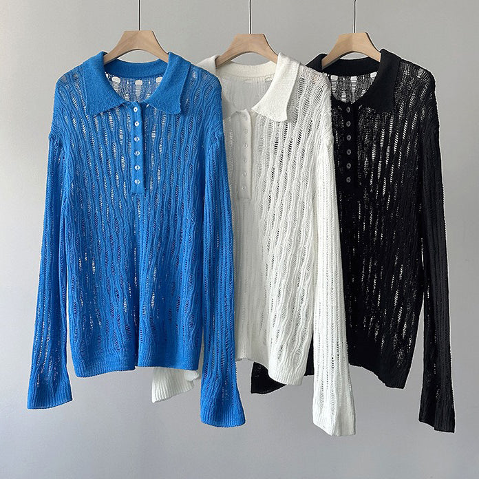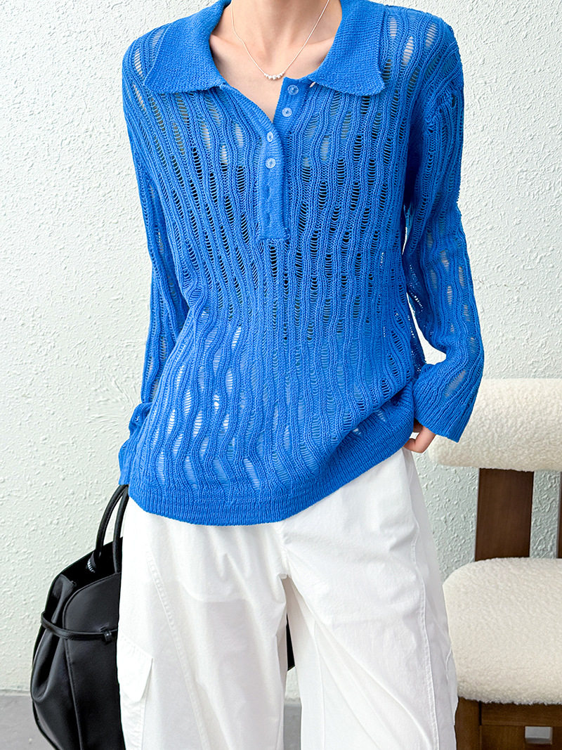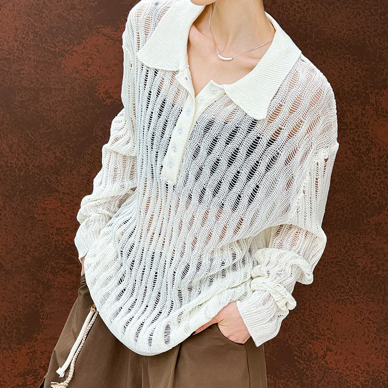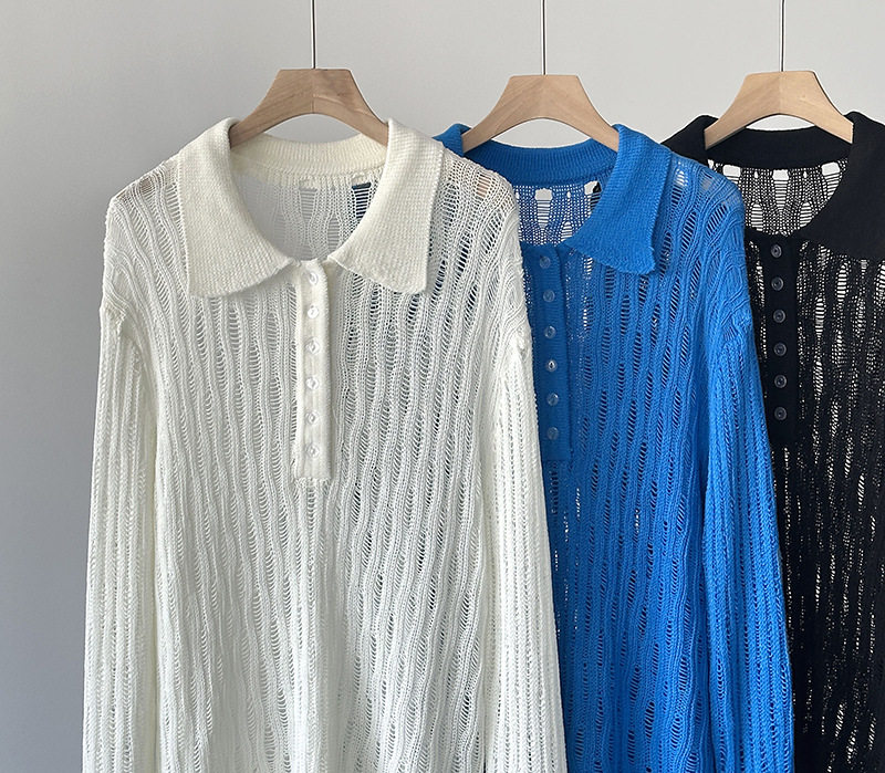 【商品名】【トップス】秋先取り 大人可愛い透かし編みニットTシャツ 薄手 ゆったり【JZシリーズ】