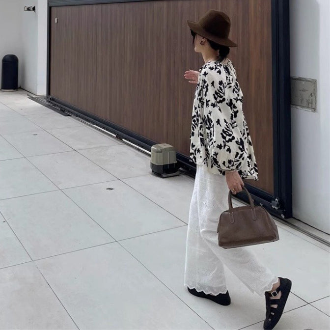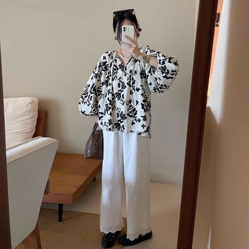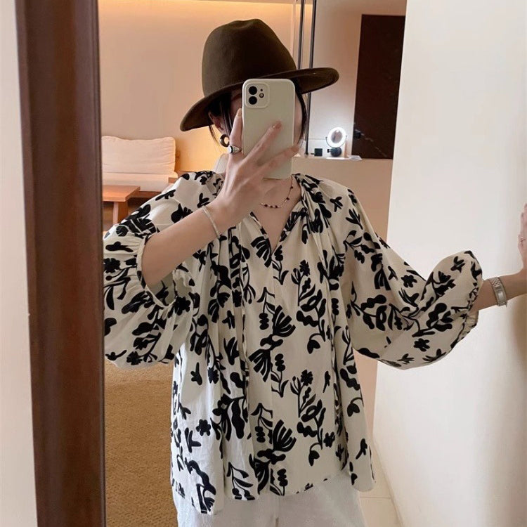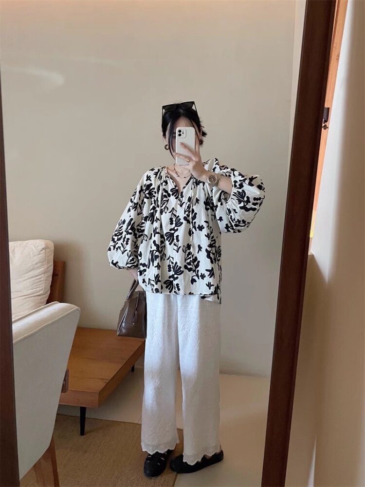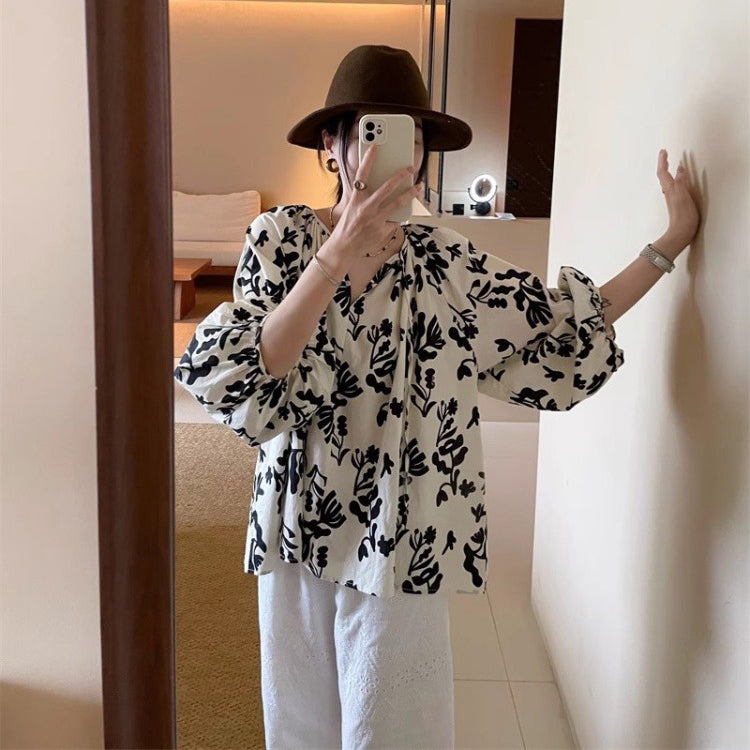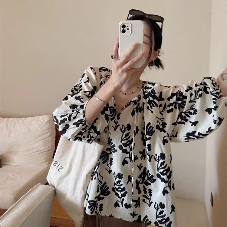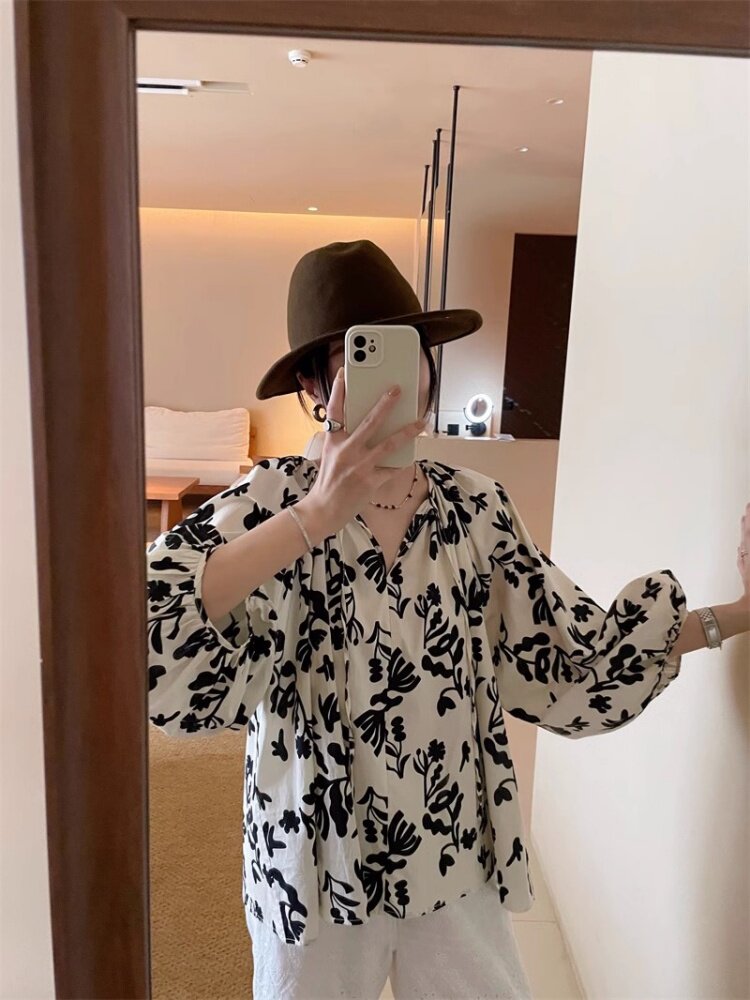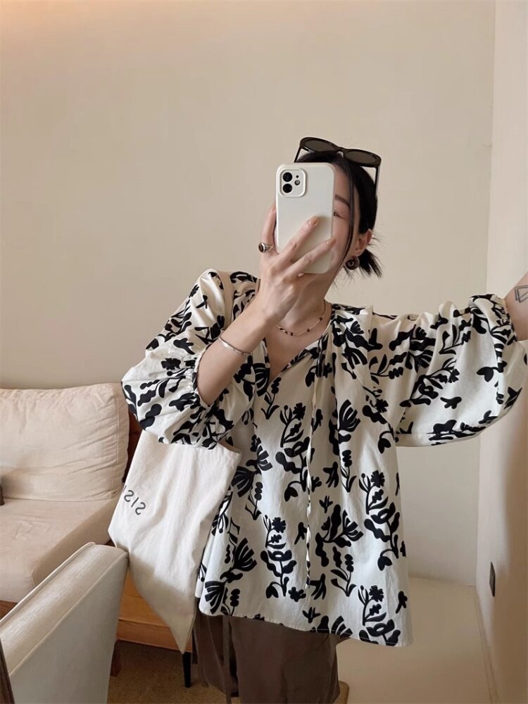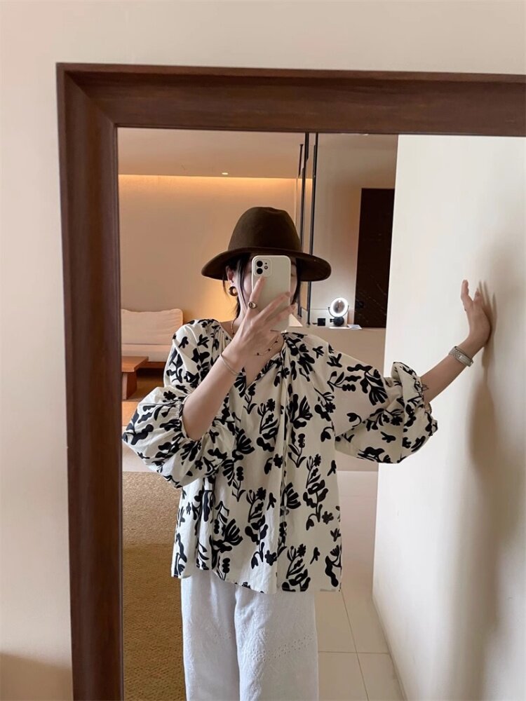 【トップス】フレンチ風パフスリーブ ゆるかわ花柄長袖ブラウス レディース【SHシリーズ】