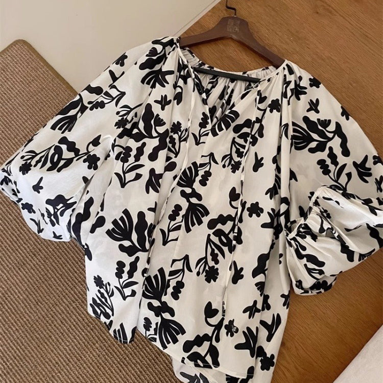 【商品名】【トップス】フレンチ風パフスリーブ ゆるかわ花柄長袖ブラウス レディース【SHシリーズ】