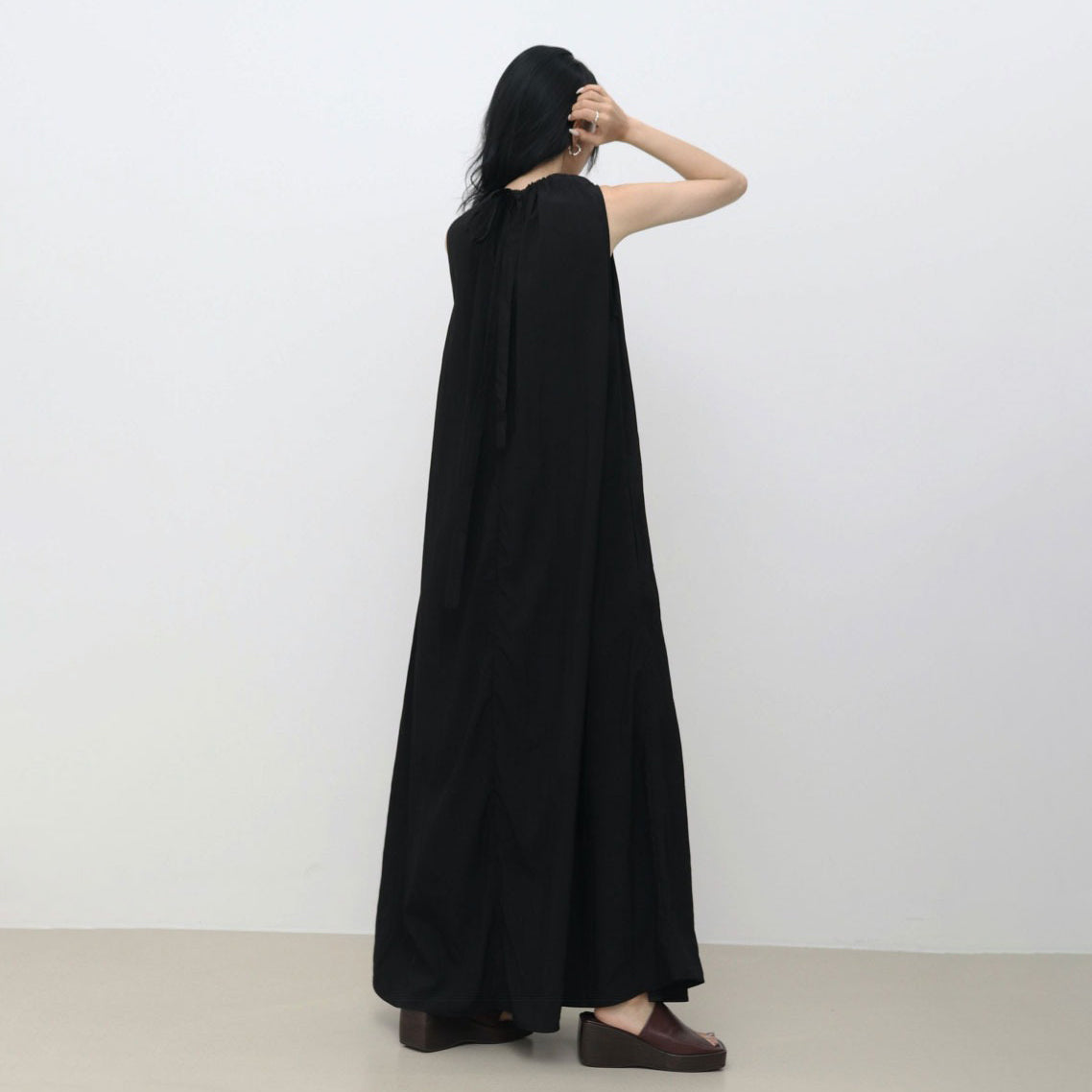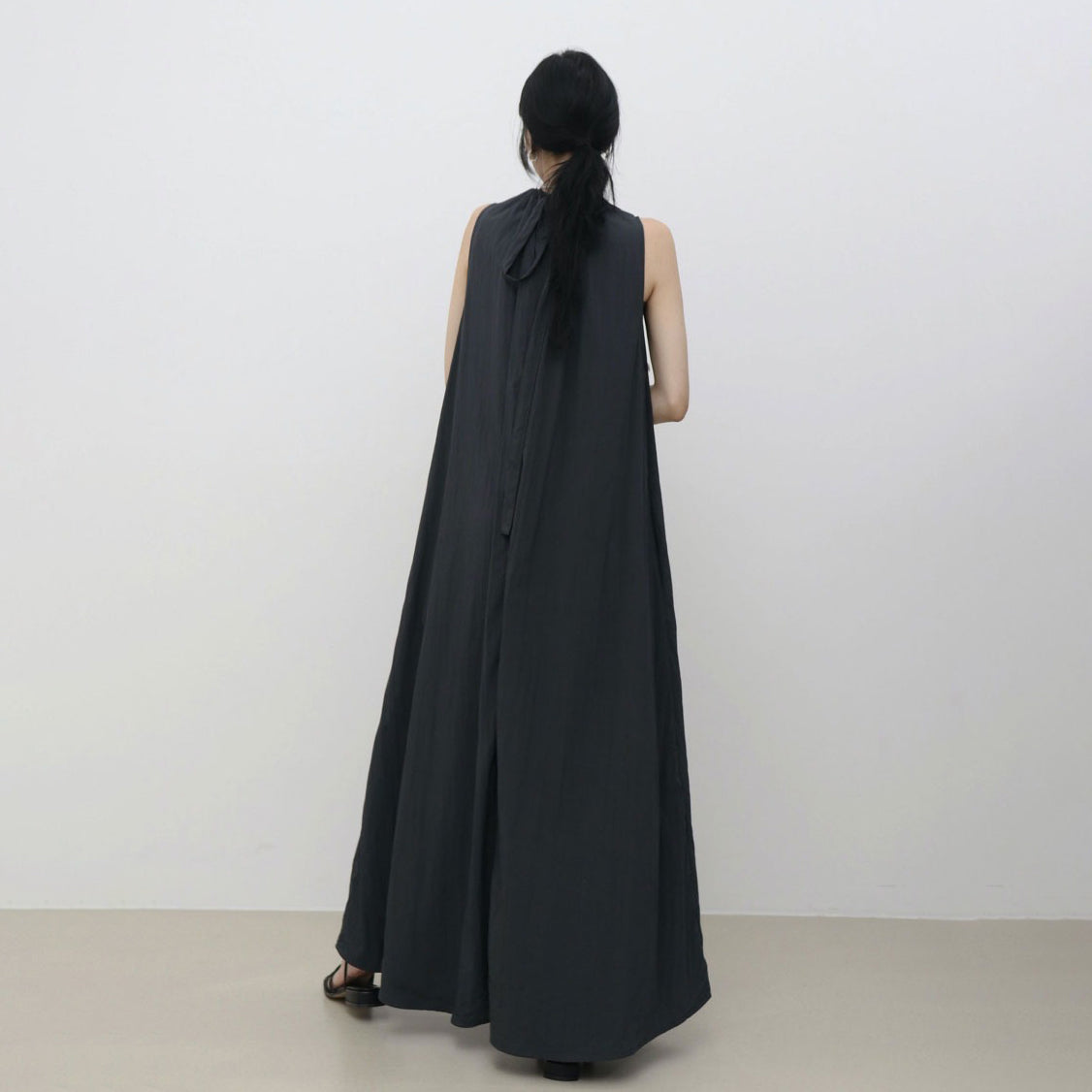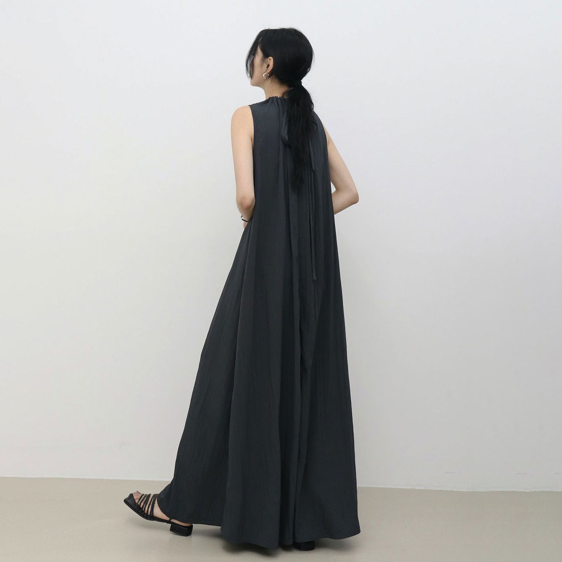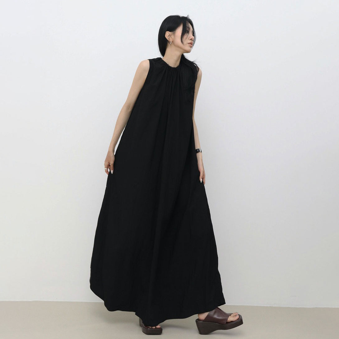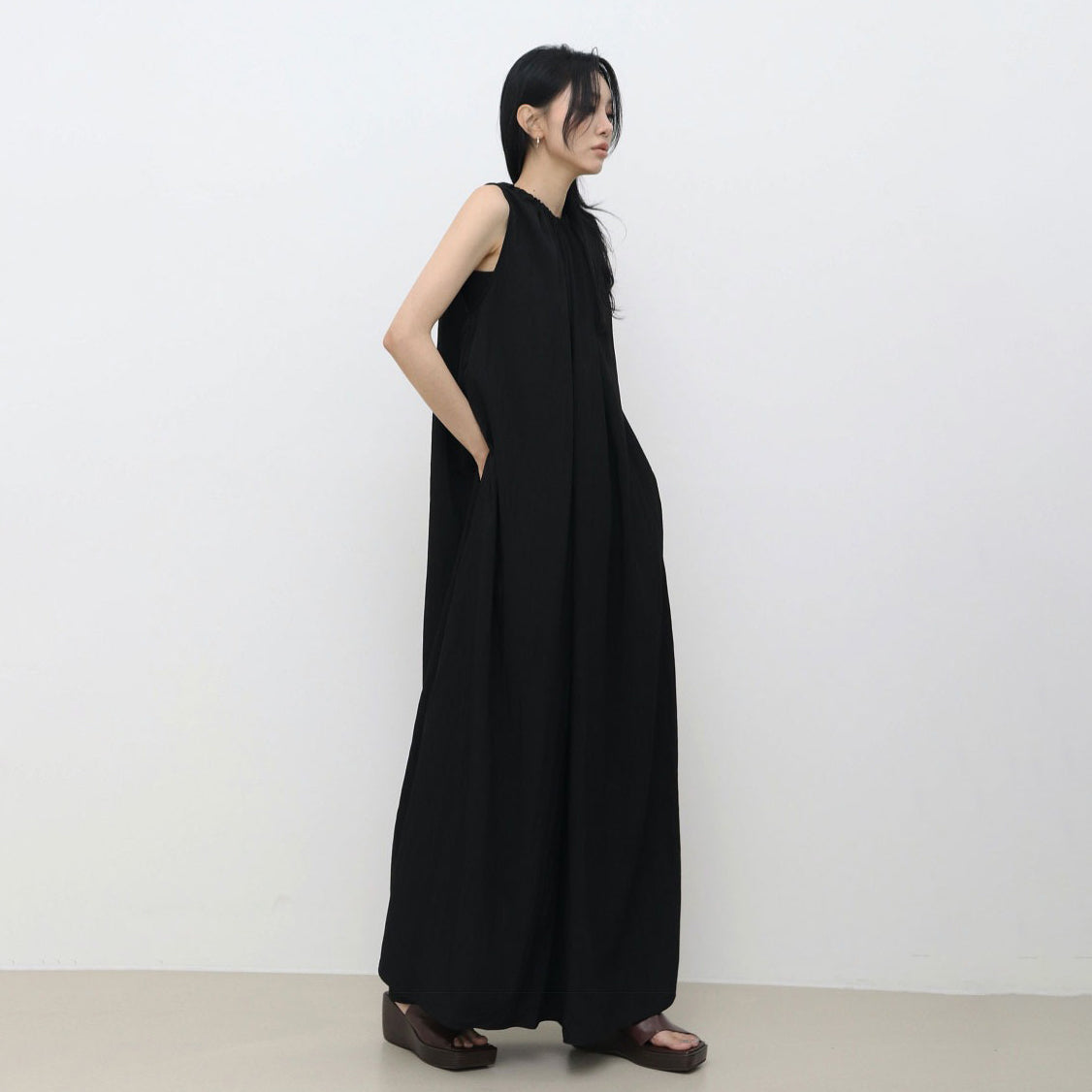 【ワンピース】韓国chicミニマルノースリーブワンピース|クルーネック 大人シンプルロングドレス【JZシリーズ】