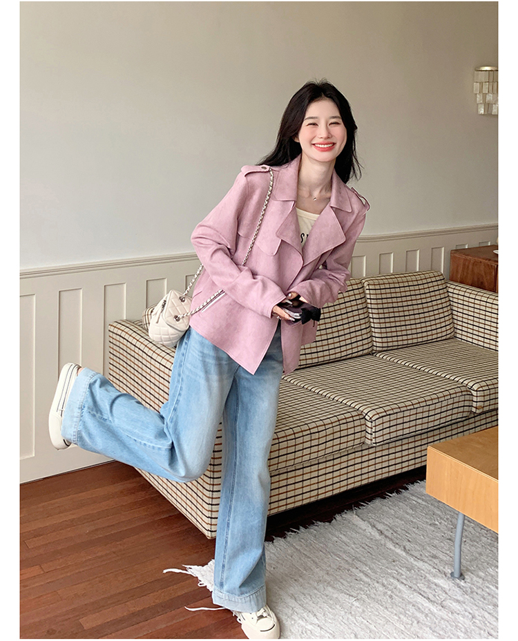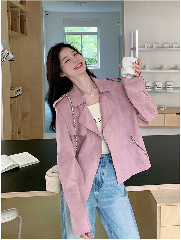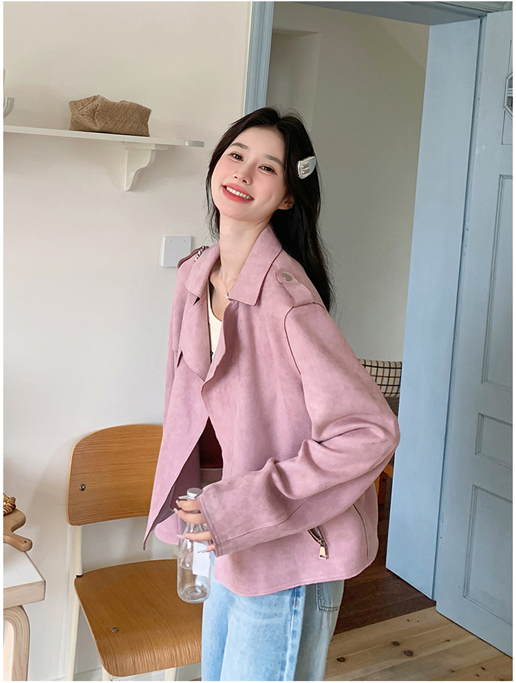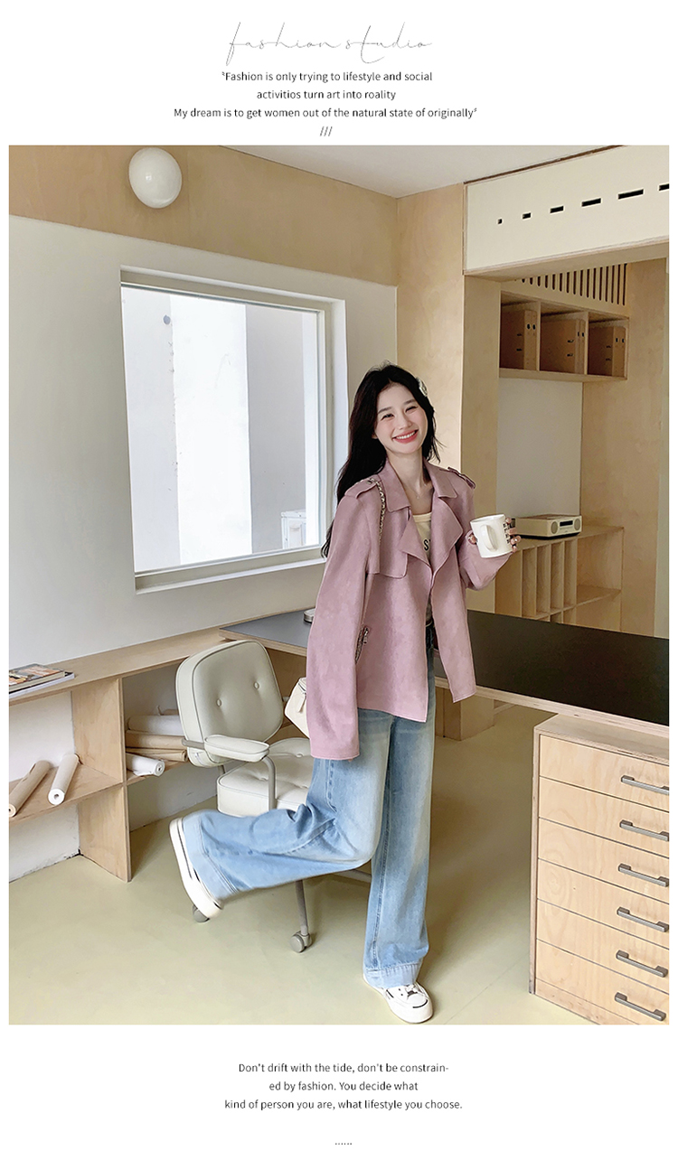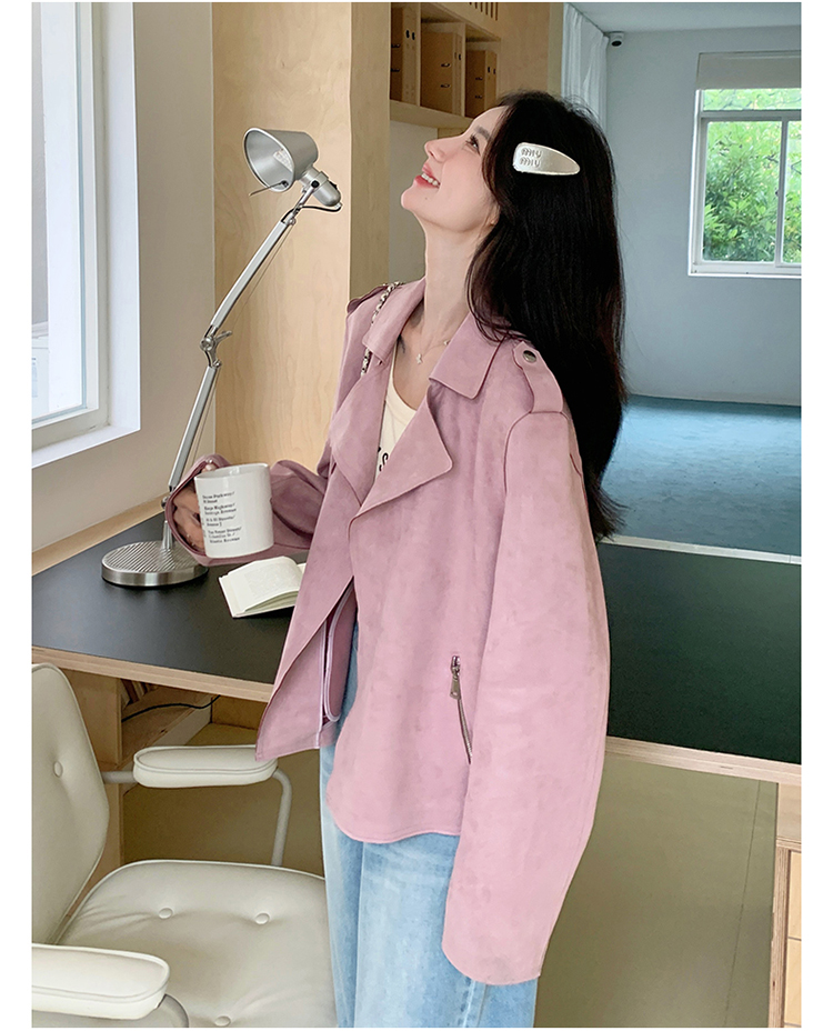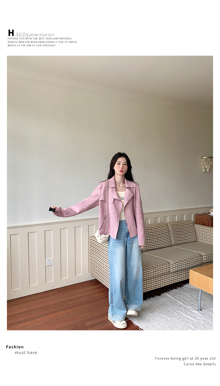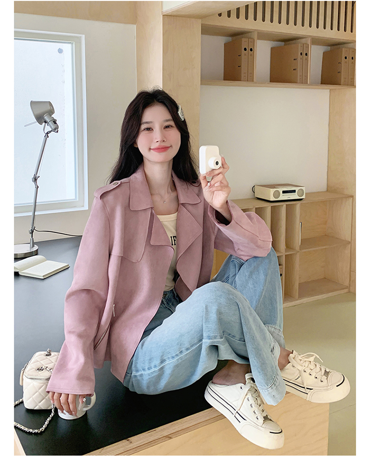 【アウター】可愛い 甘め若見えフェミニン スエード調ショートジャケット デザイン性 カジュアル 細見えアウター【JZシリーズ】