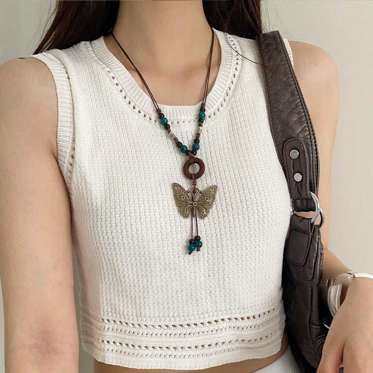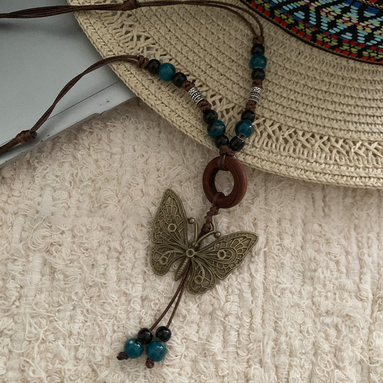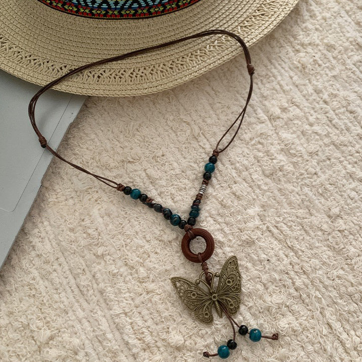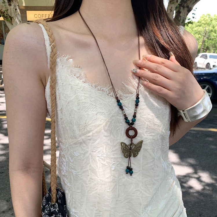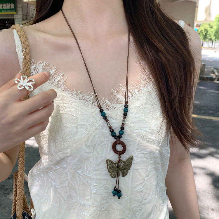 【🎁 B2G1|先行スタート!】【グッズ】レトロ 蝶モチーフネックレス レディース ロング丈 ニットチェーン 高級感 ボヘミアンスタイル ハングネックアクセサリー