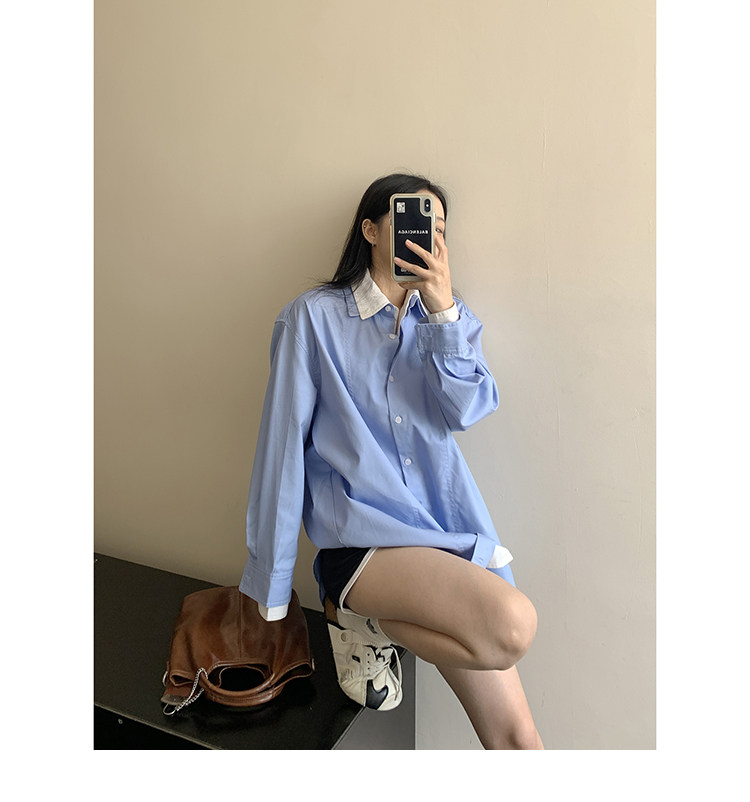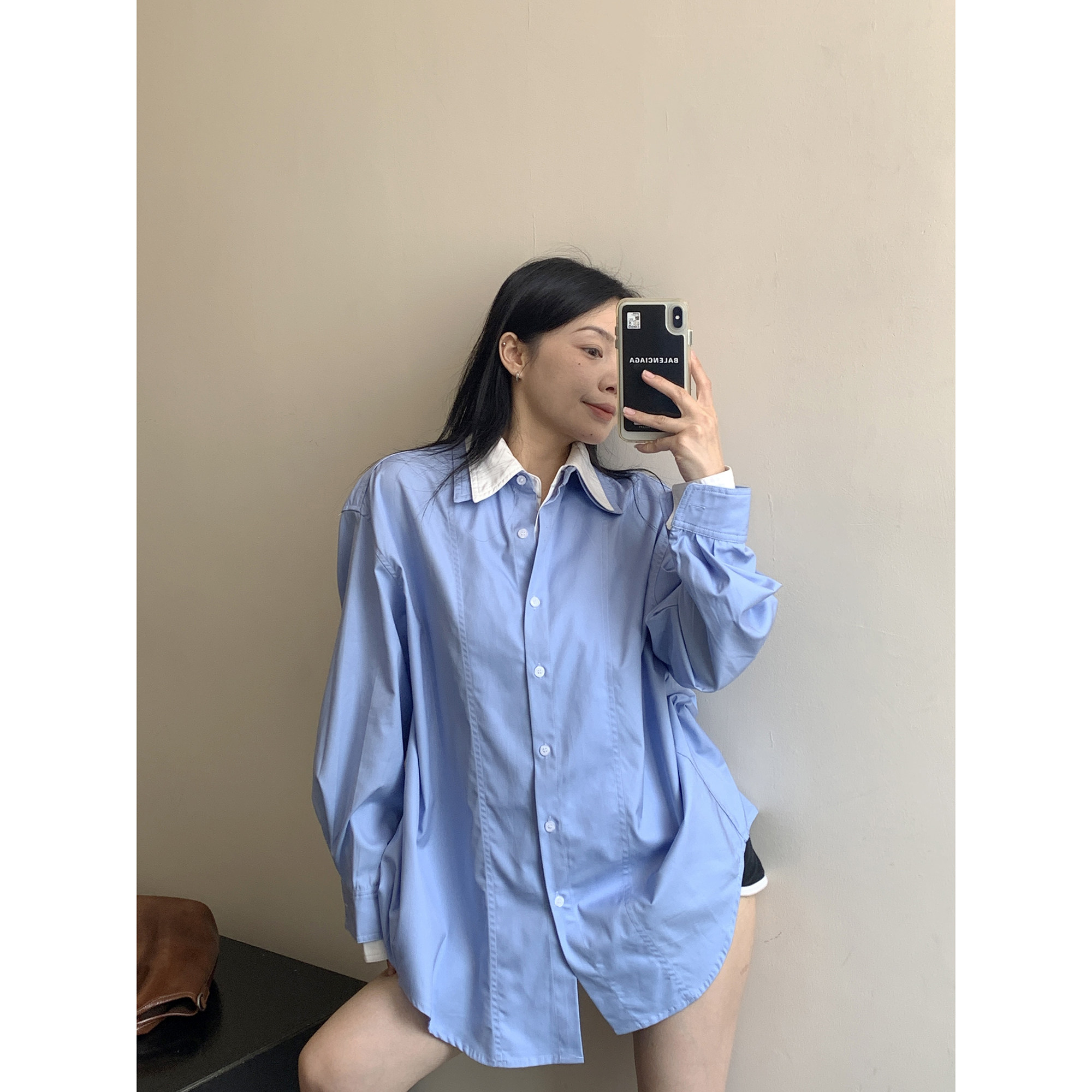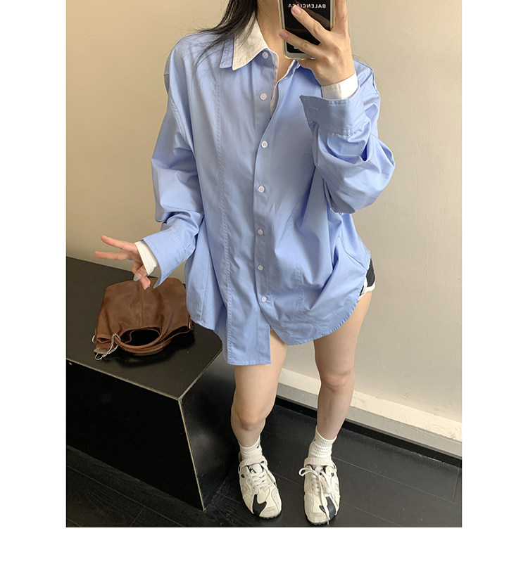 【商品名】【トップス】 春 秋 冬 リラックス感 フェイクレイヤード 長袖 シャツ 【FCシリーズ】