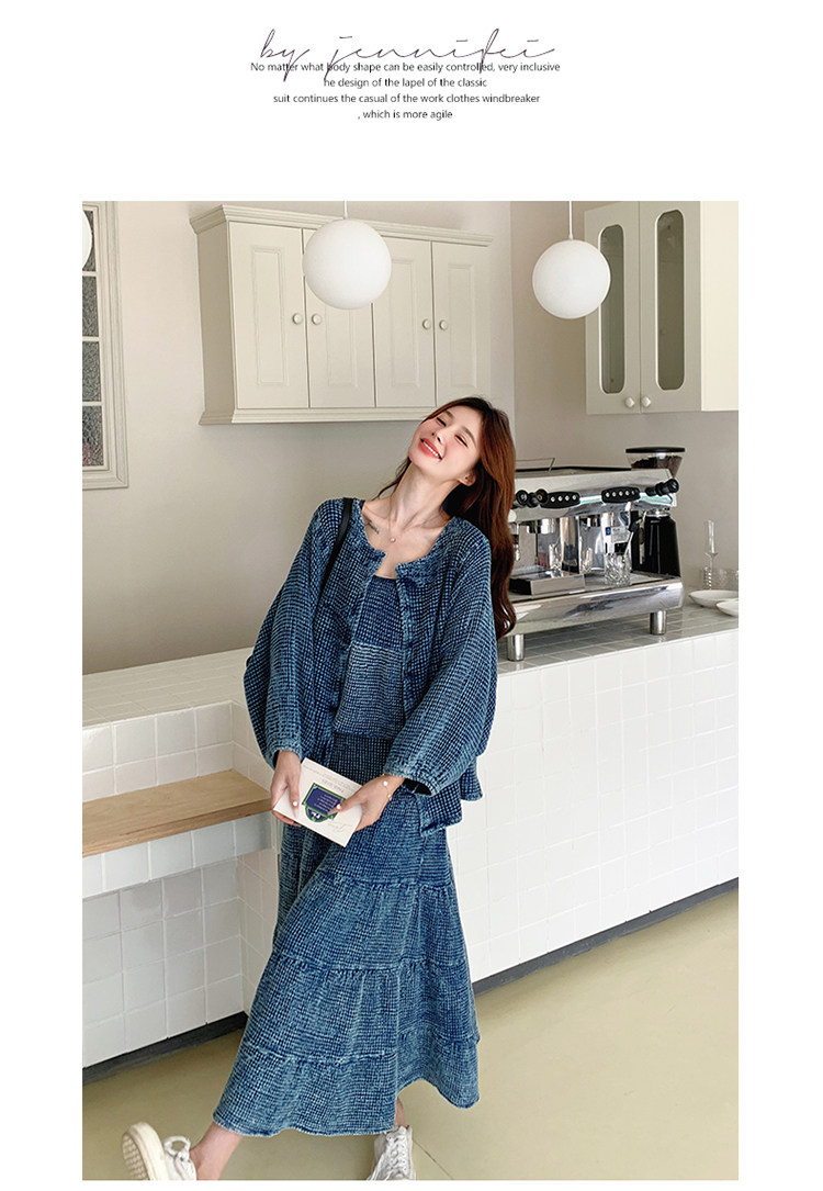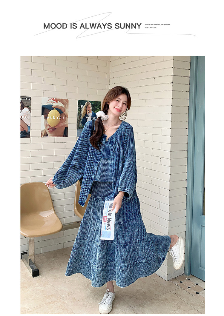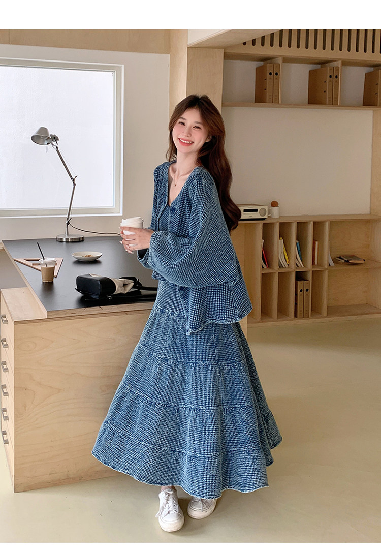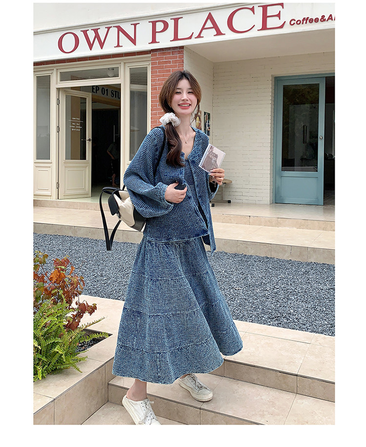 3点セット!【セットアップ】チェック柄デニムジャケット 3点上下セット レディース 春秋 大人可愛い 個性的 おしゃれスタイル【JZシリーズ】