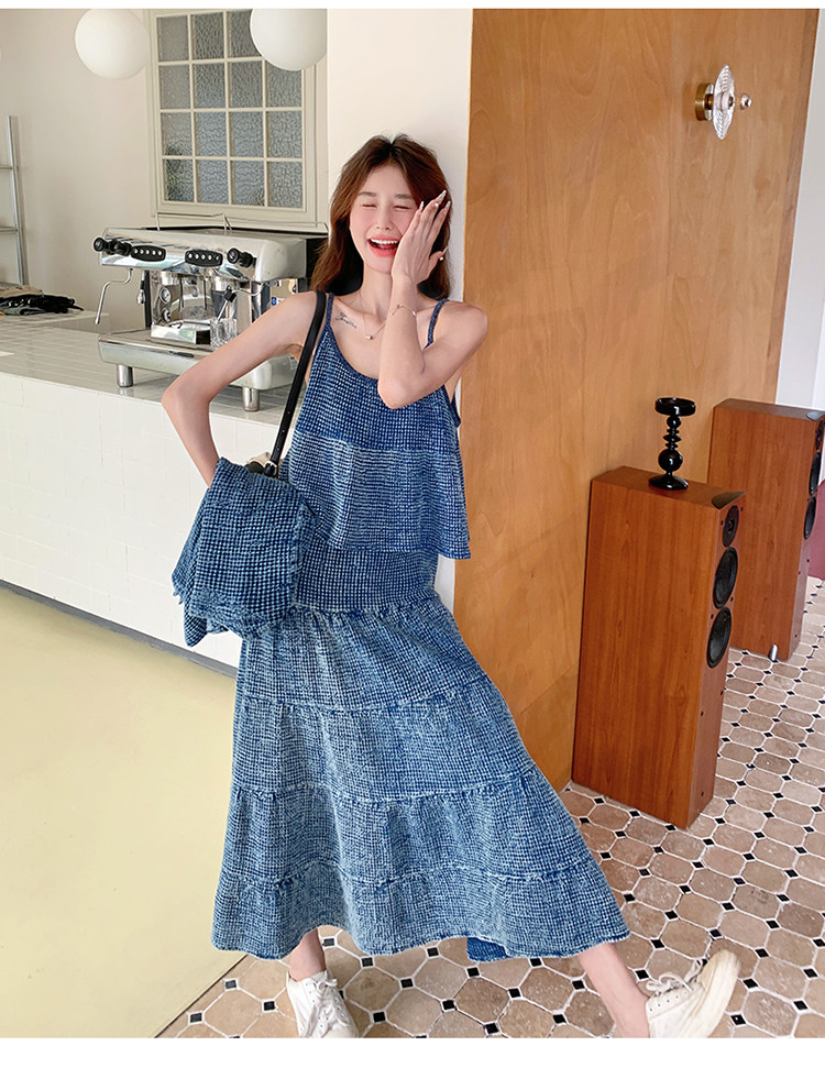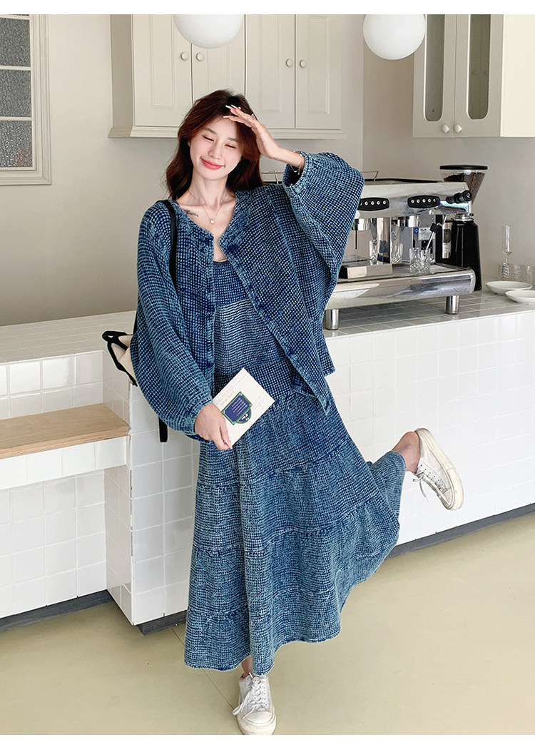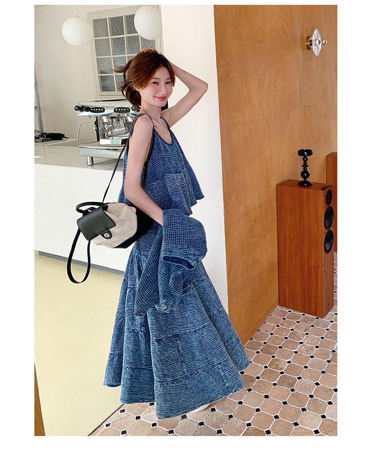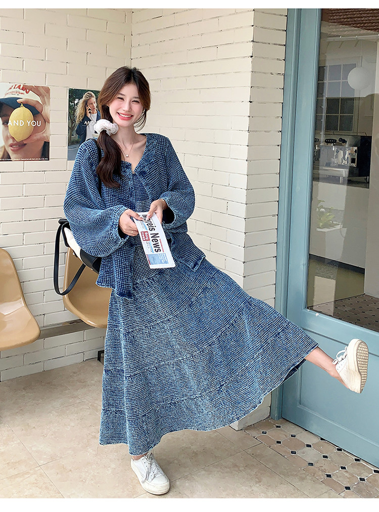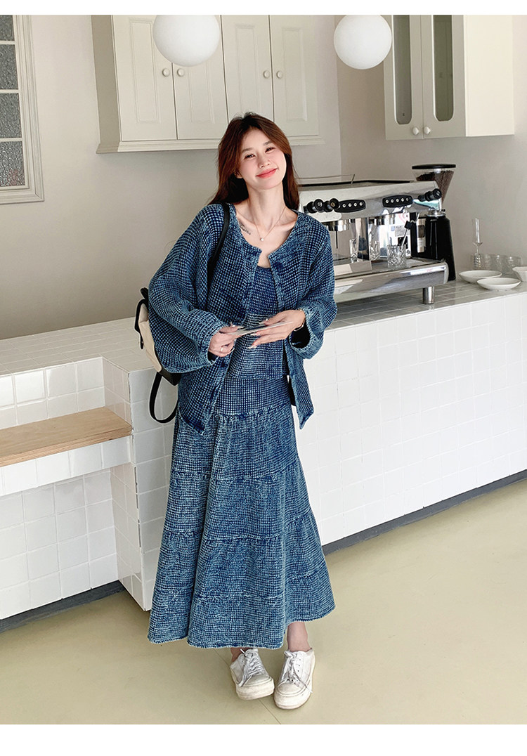 3点セット!【セットアップ】チェック柄デニムジャケット 3点上下セット レディース 春秋 大人可愛い 個性的 おしゃれスタイル【JZシリーズ】