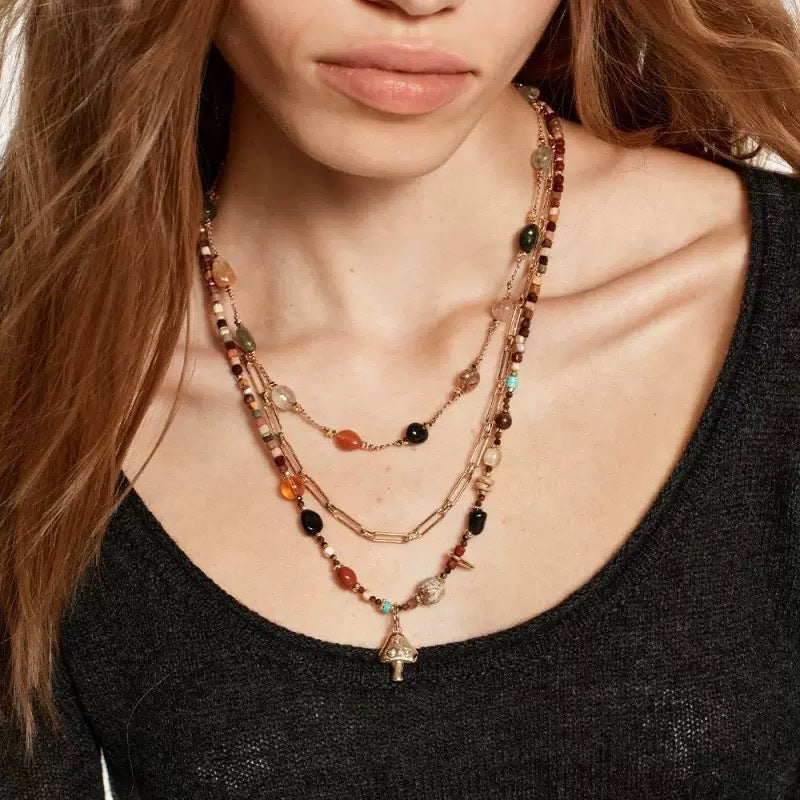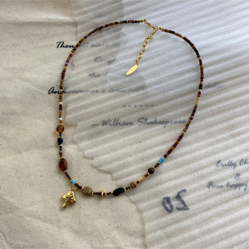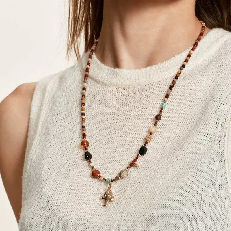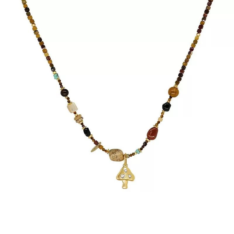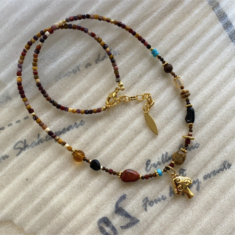 【🎁 B2G1|先行スタート!】【グッズ】キノコ カラービーズ ネックレス 個性派デザイン 重ね付け ヴィンテージ風 ニット チョーカ