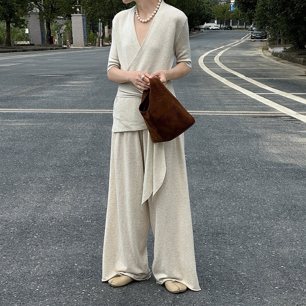【ボトムス】ウール ゆったり細見えニットワイドパンツ レディース リラックス感たっぷり ロングパンツ【JZシリーズ】