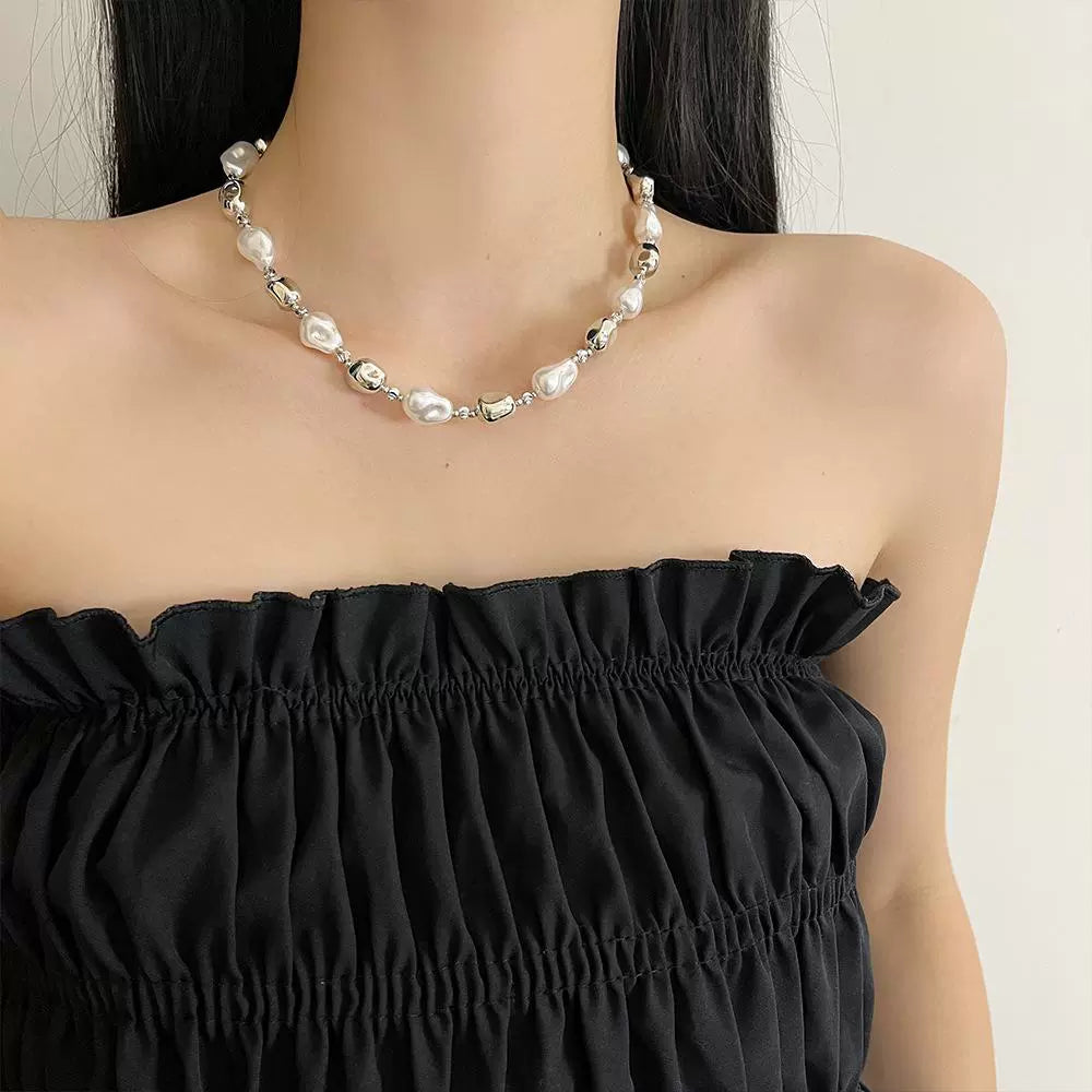 【商品名】【グッズ】复古不規則バロックパールネックレス レディース 高級感 シンプル 気質 チョーカー トレンド