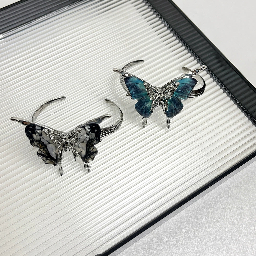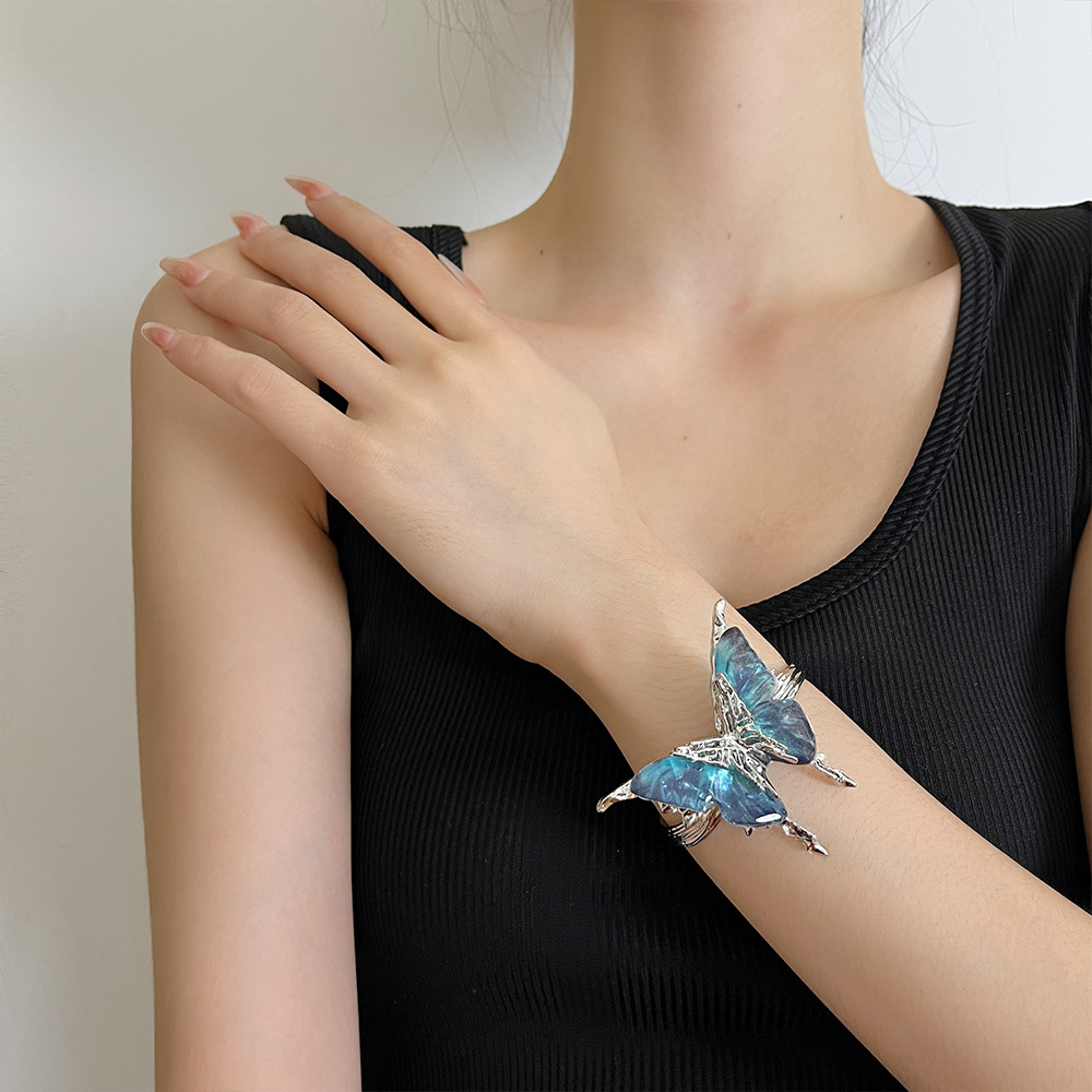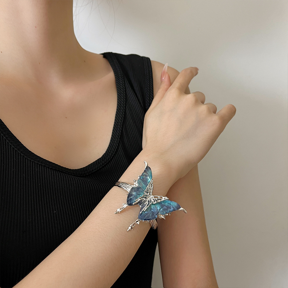 【🎁 B2G1|先行スタート!】【グッズ】立体ブルーグラデーション バタフライ バングル レディース オープンタイプ 高級感 おしゃれ