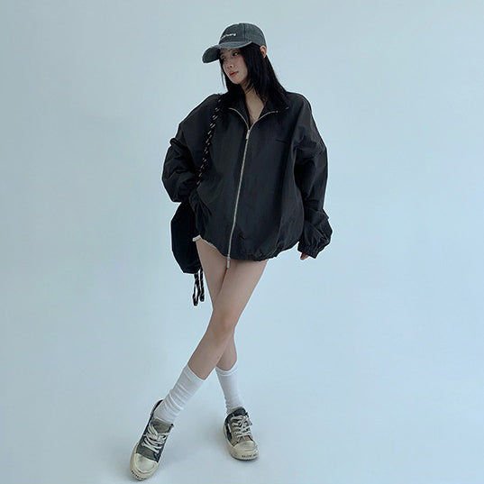 【アウター】薄手 リラックス感 ショート丈 ワイドシルエット スタンドカラー ジャケット レディース【FCシリーズ】