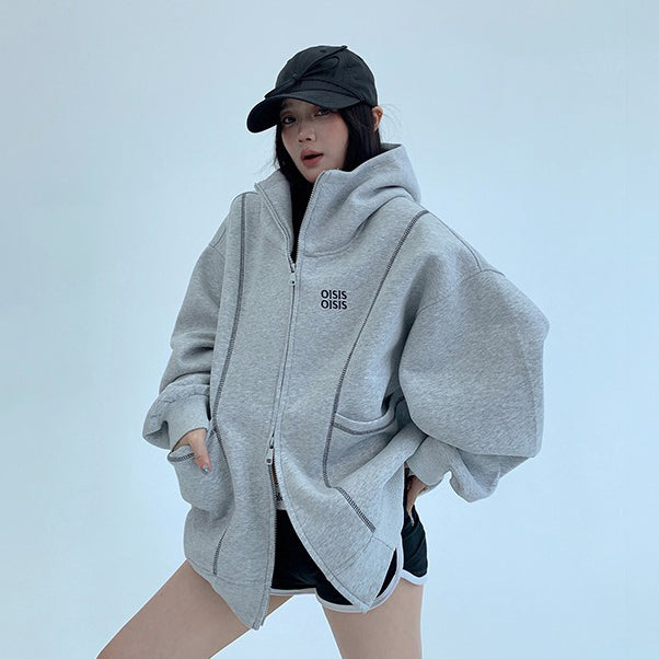 【トップス】ジップデザイン 春 秋 冬 フード付き パーカー 【FCシリーズ】
