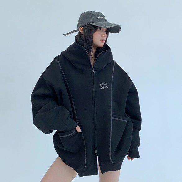 【トップス】💖カップルでも着られる!ワイドフーディ 裏起毛 重工パッチ&刺繍 レディース 冬新作【FCシリーズ】