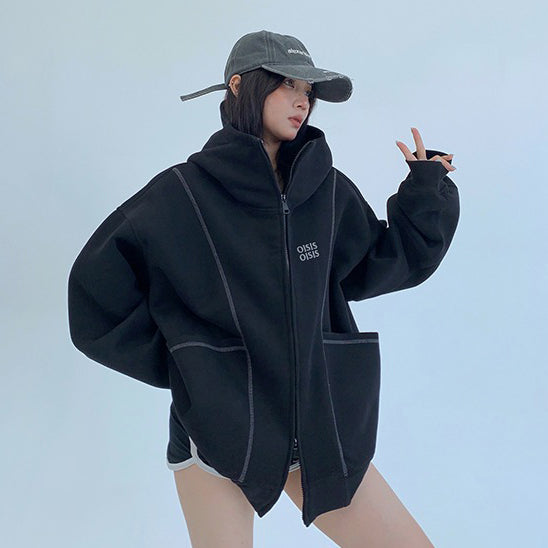 【トップス】裏起毛 春 秋 冬 切り替え ルーズ フード付きパーカー 【FCシリーズ】