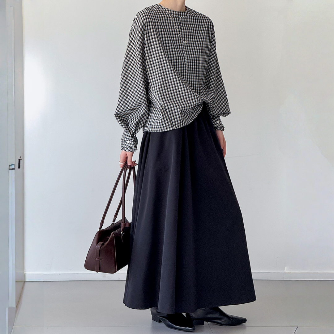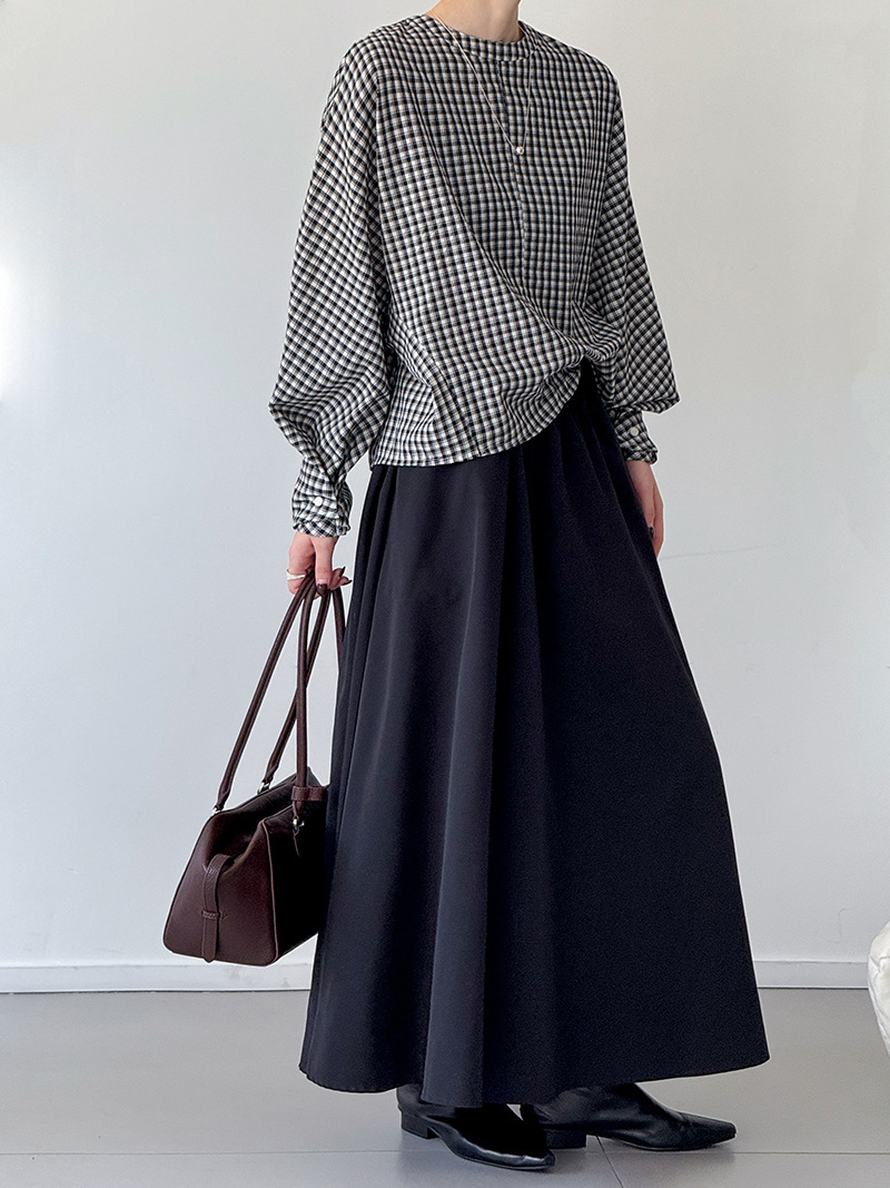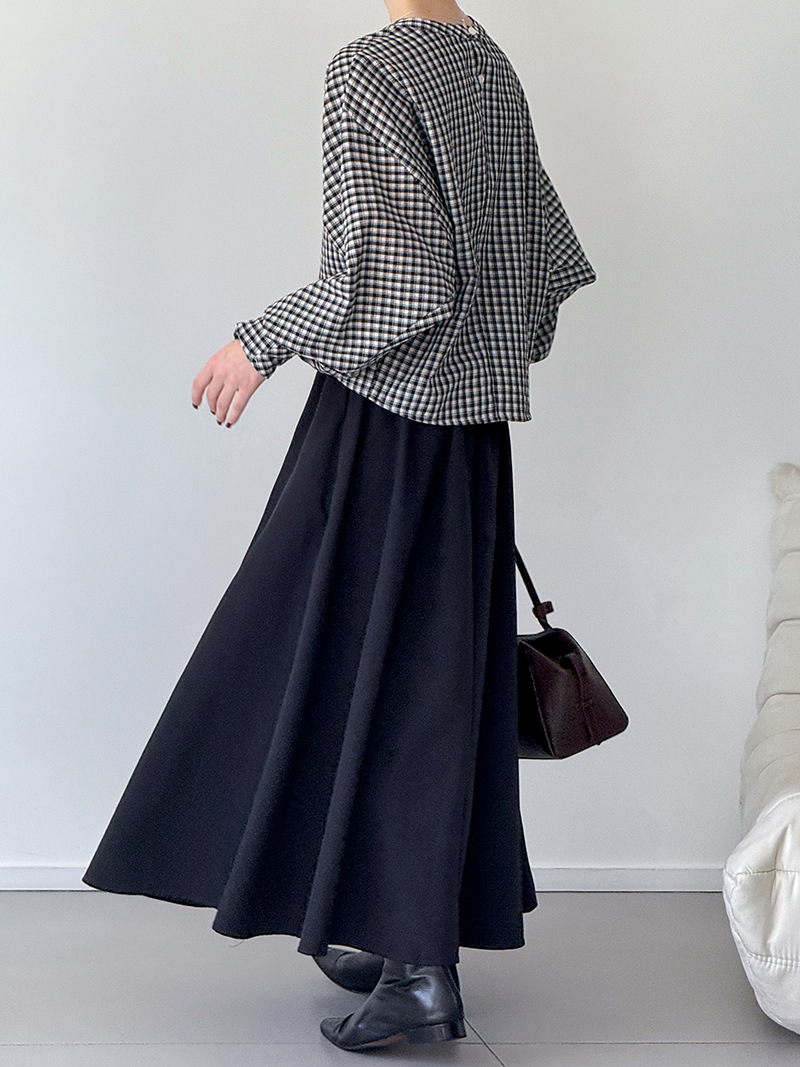 【ワンピース】起毛素材 チェック柄 レトロ クルーネック 長袖 ワンピース 【JZシリーズ】