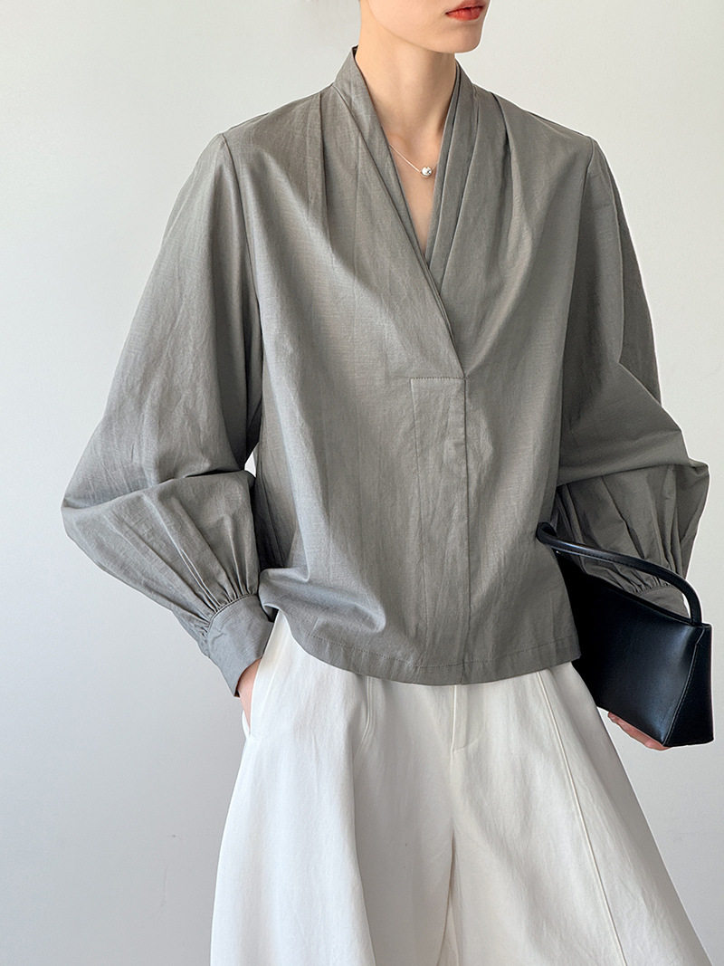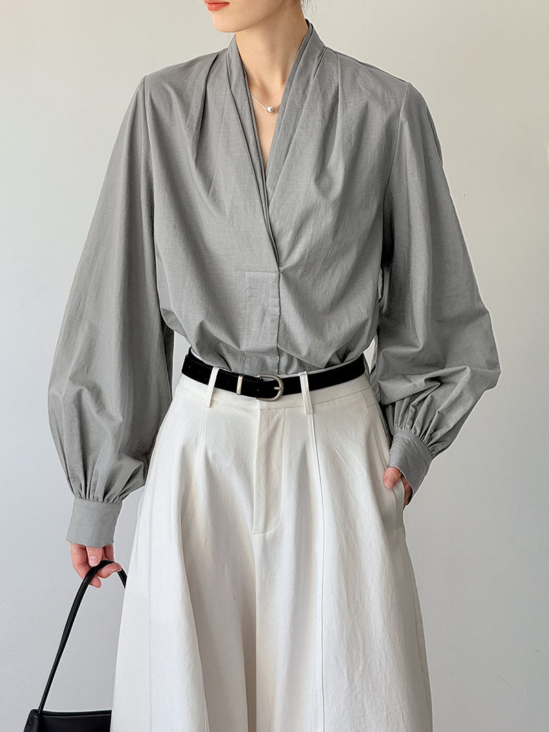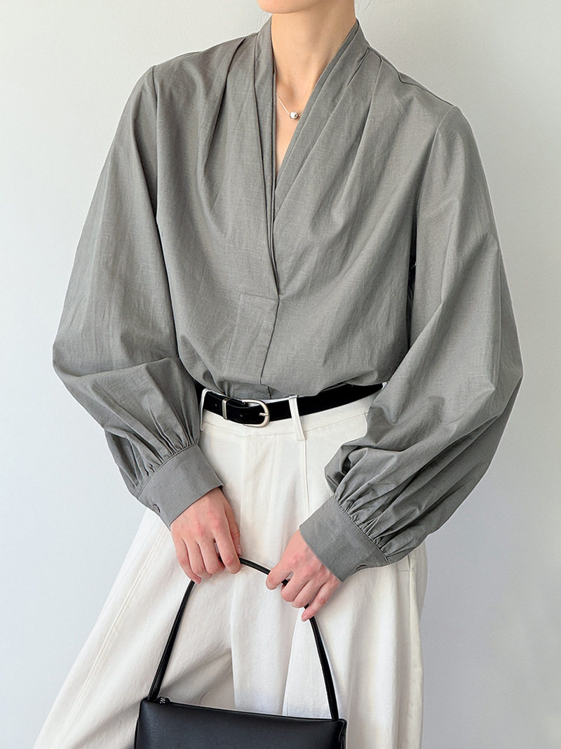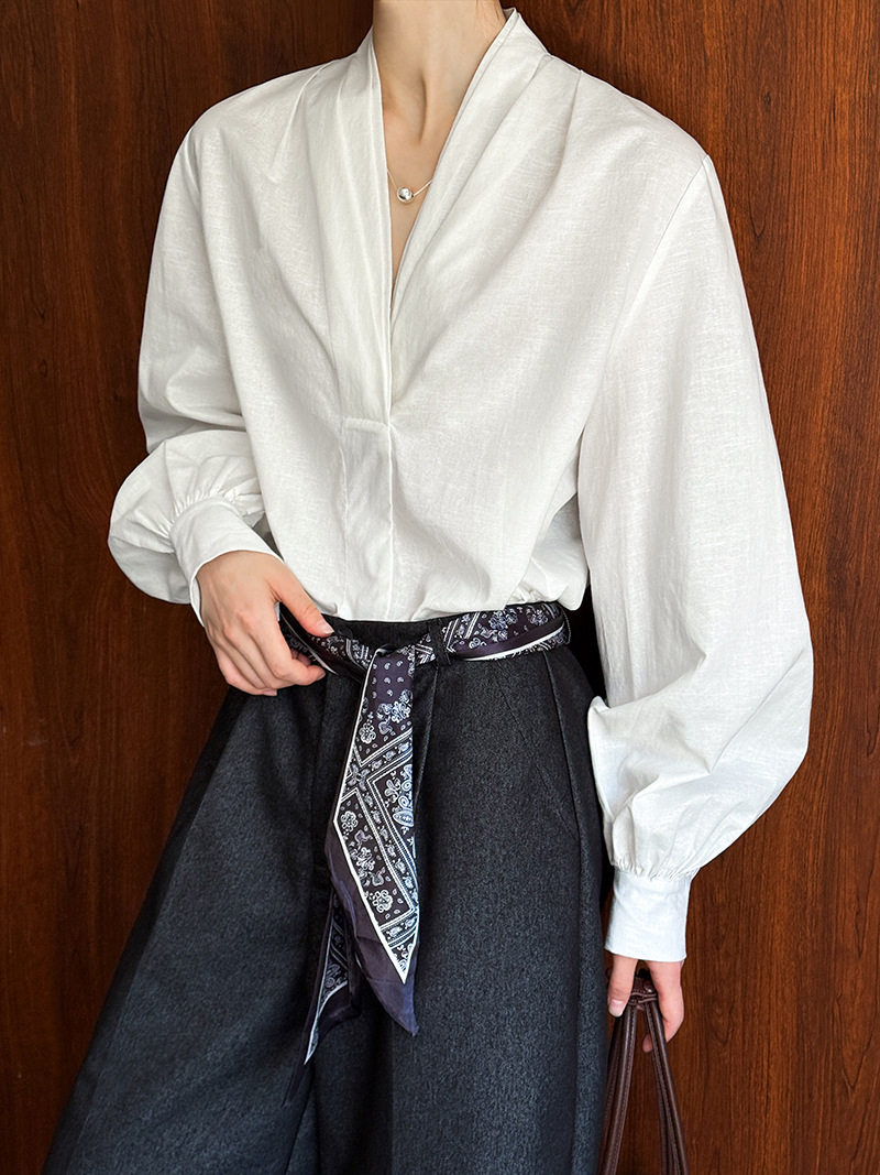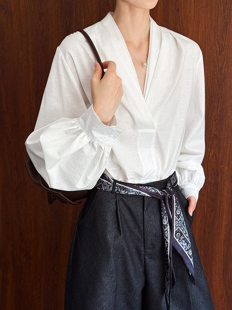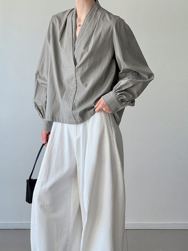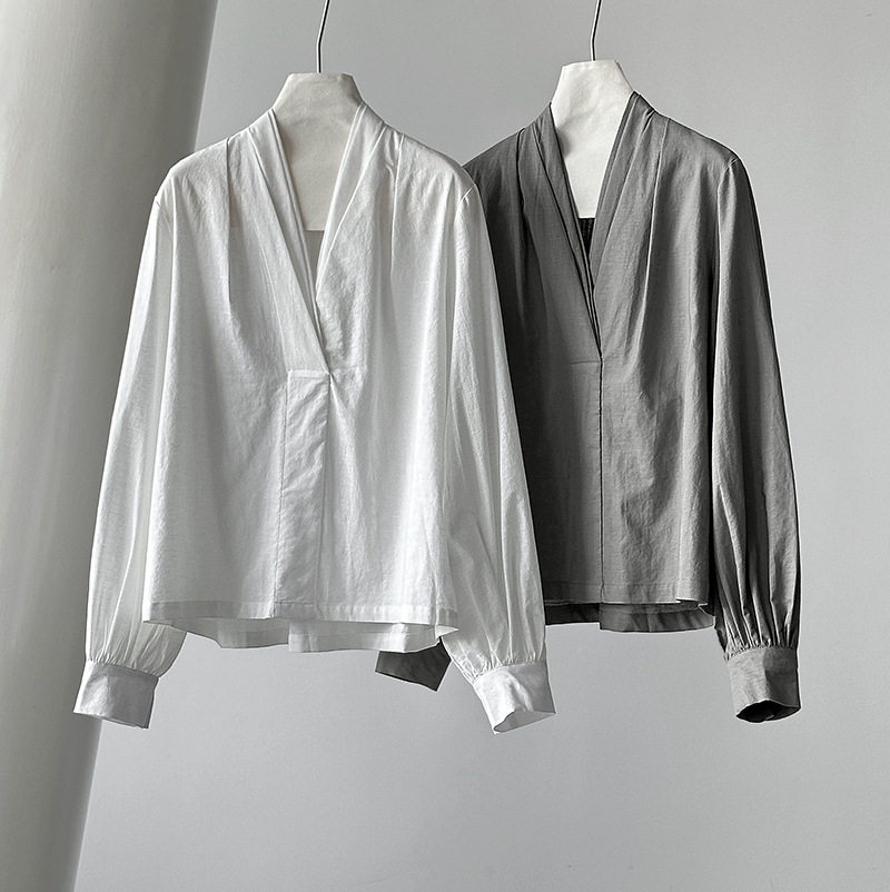 【トップス】初秋新作 デザインシャツ レディース ゆったり 小Vネック シンプル おしゃれ 細見え【JZシリーズ】