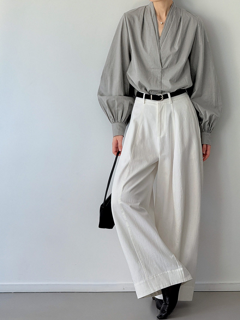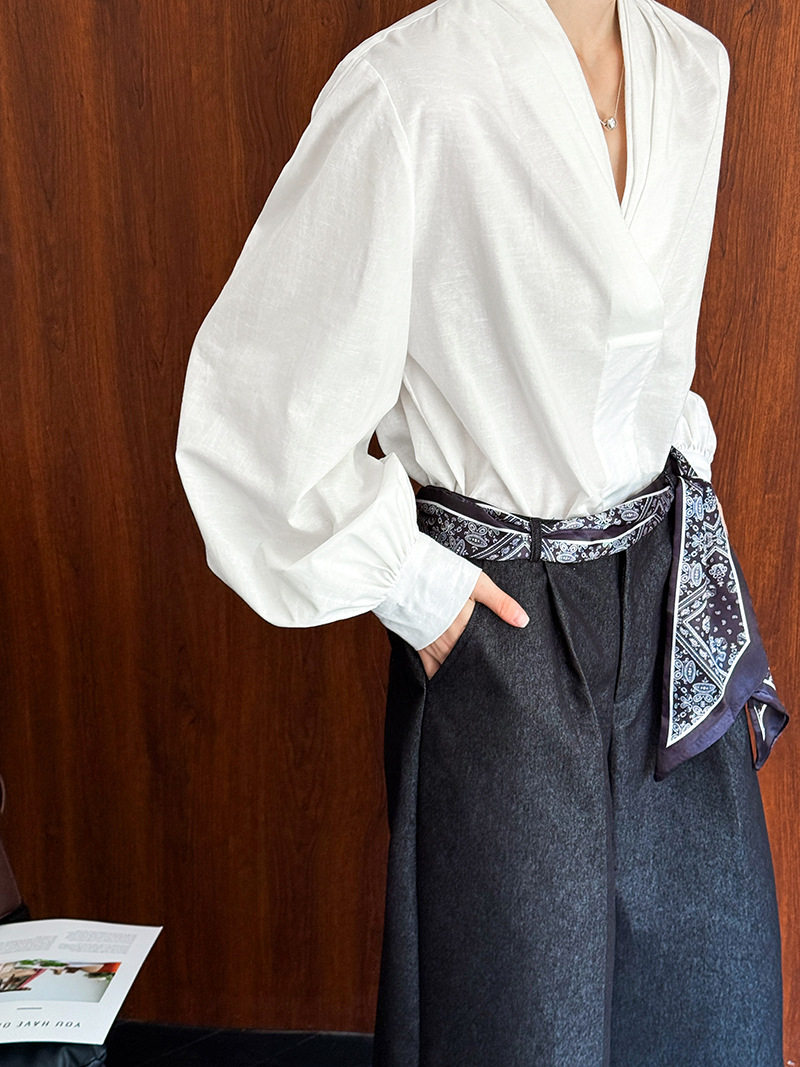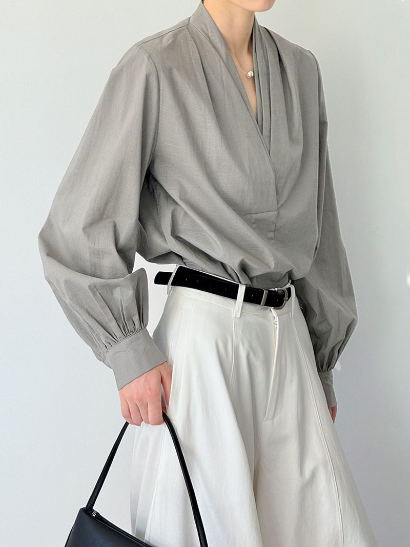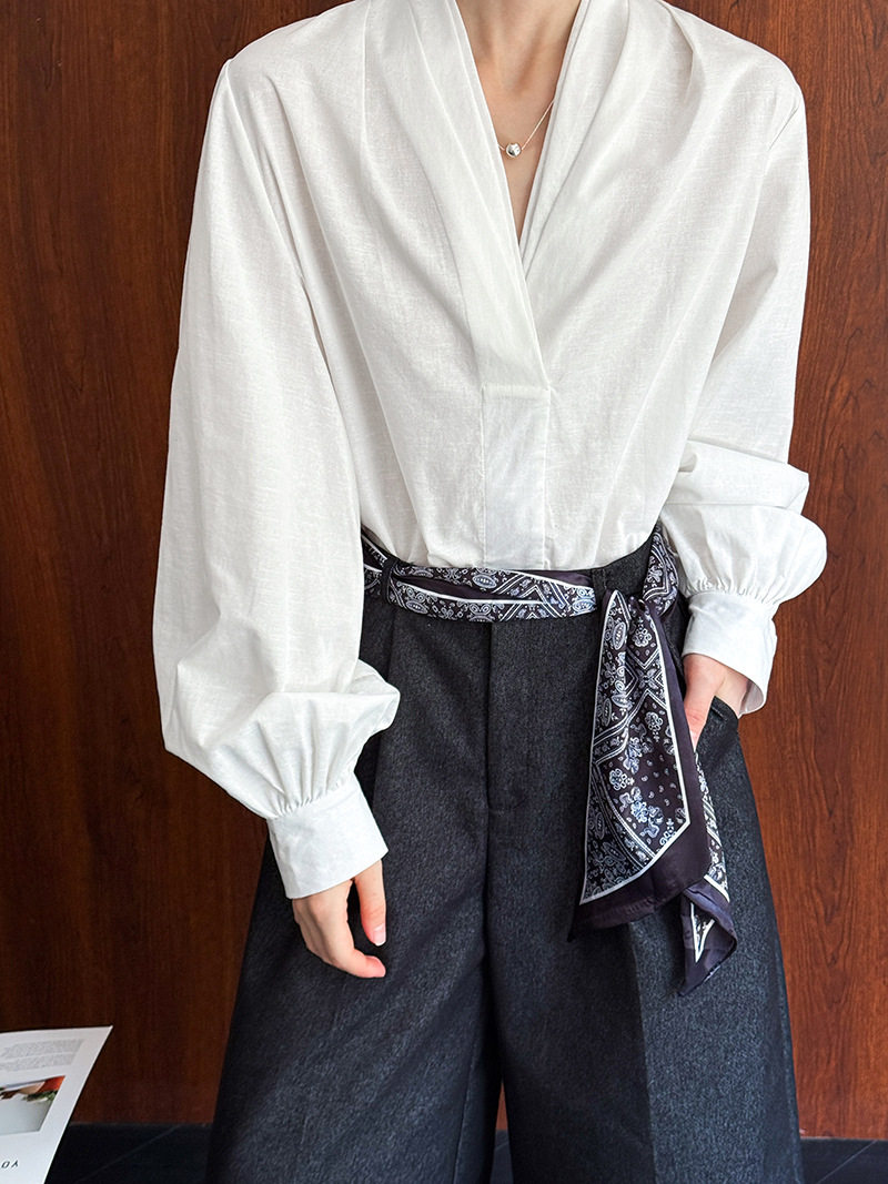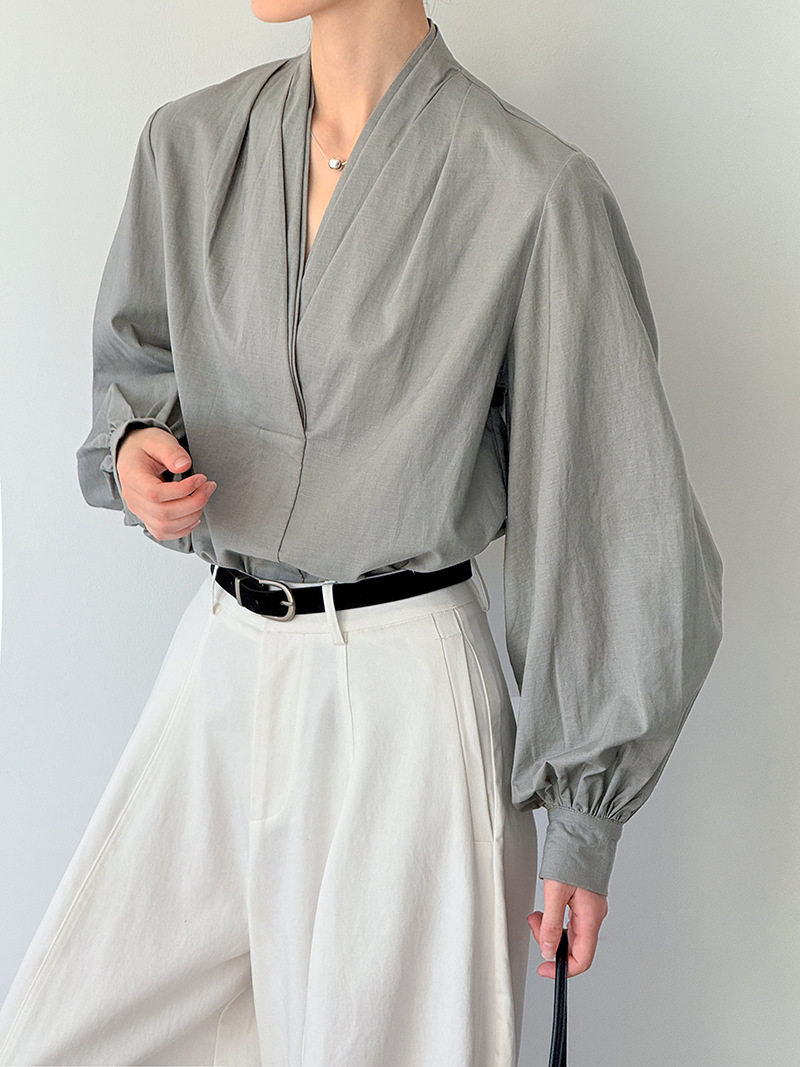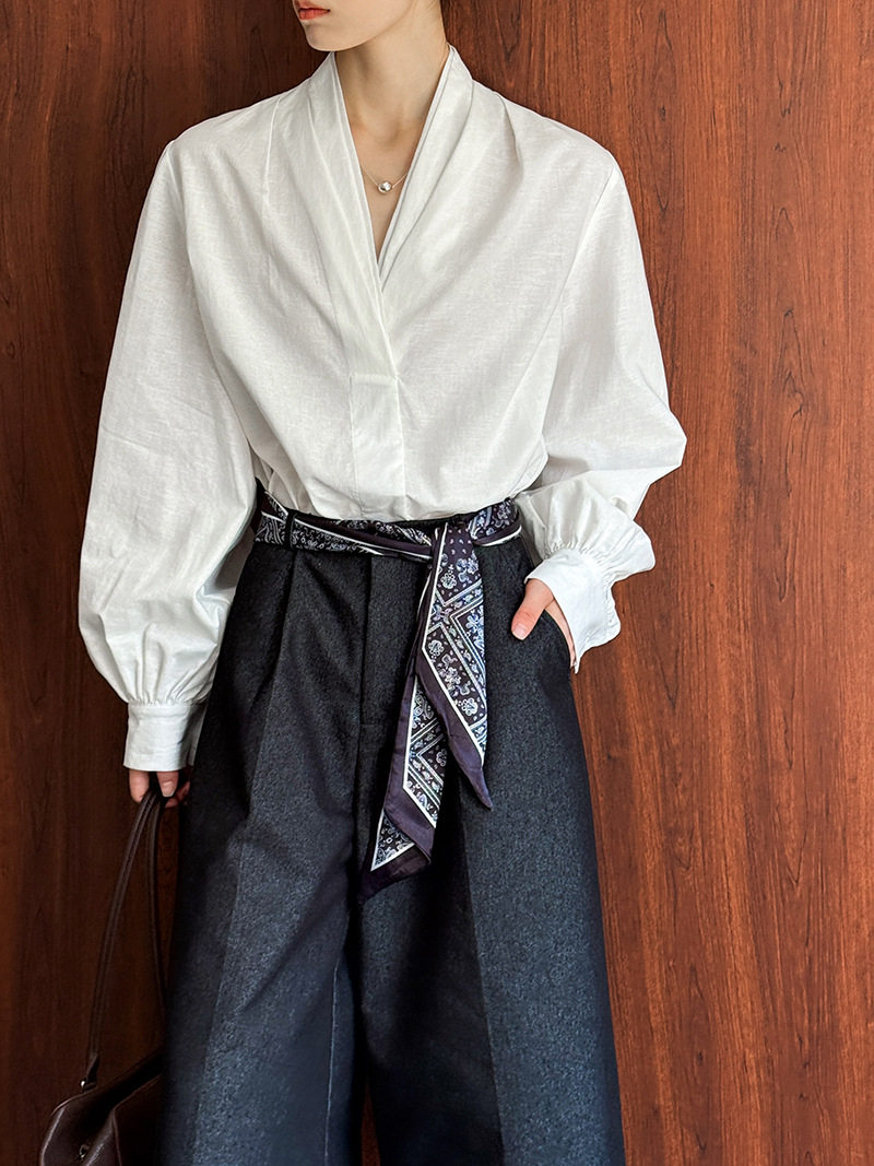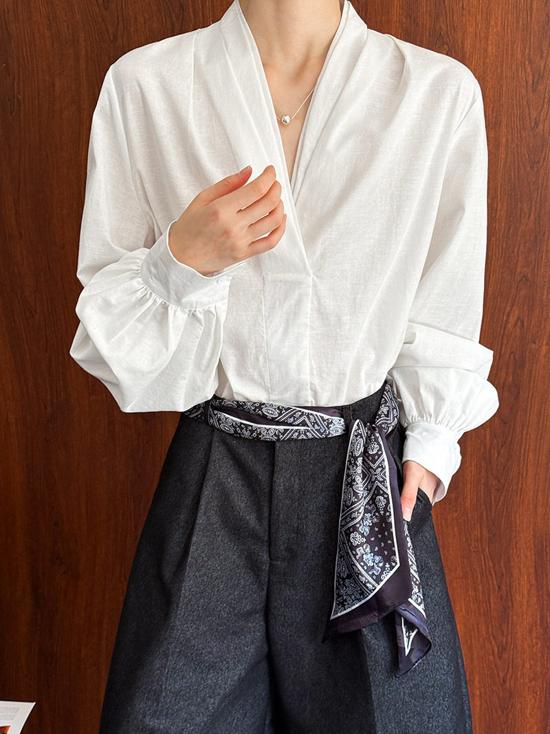【トップス】初秋新作 デザインシャツ レディース ゆったり 小Vネック シンプル おしゃれ 細見え【JZシリーズ】