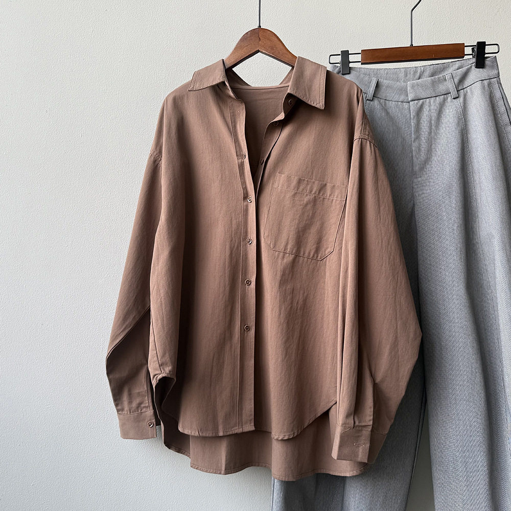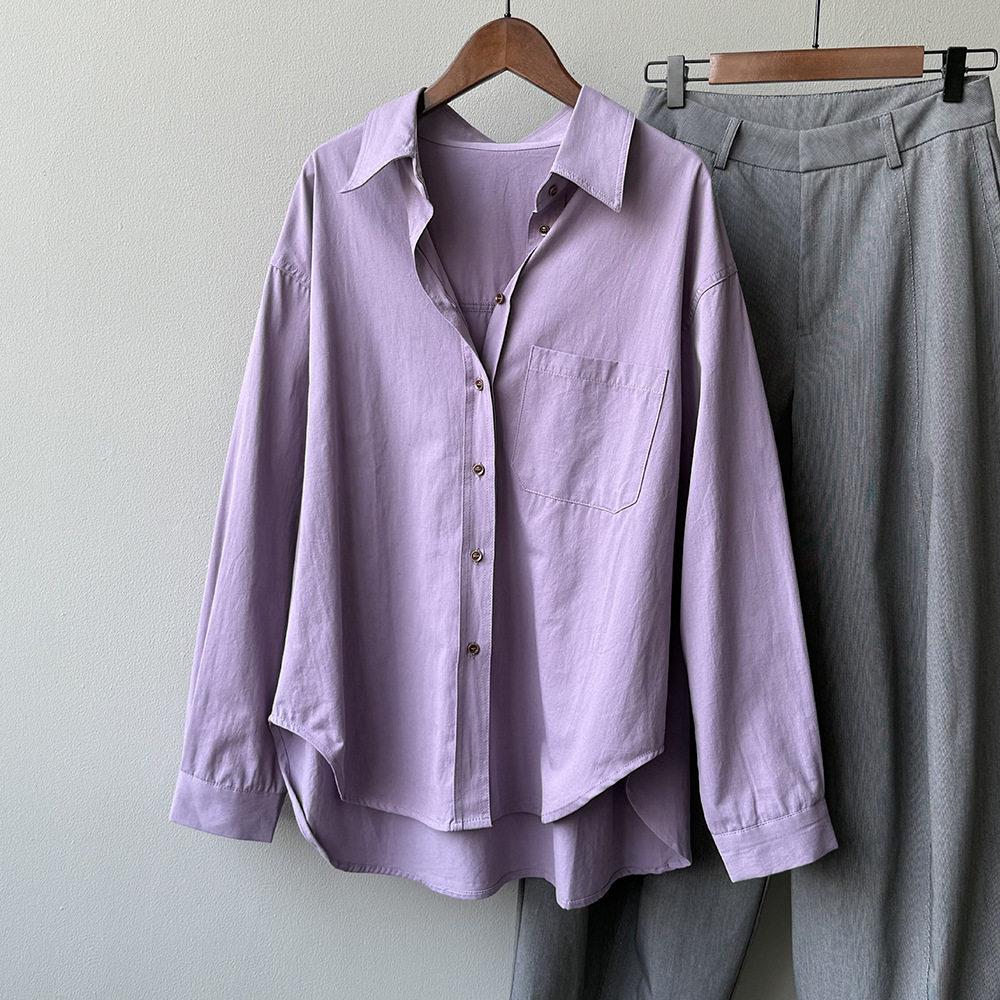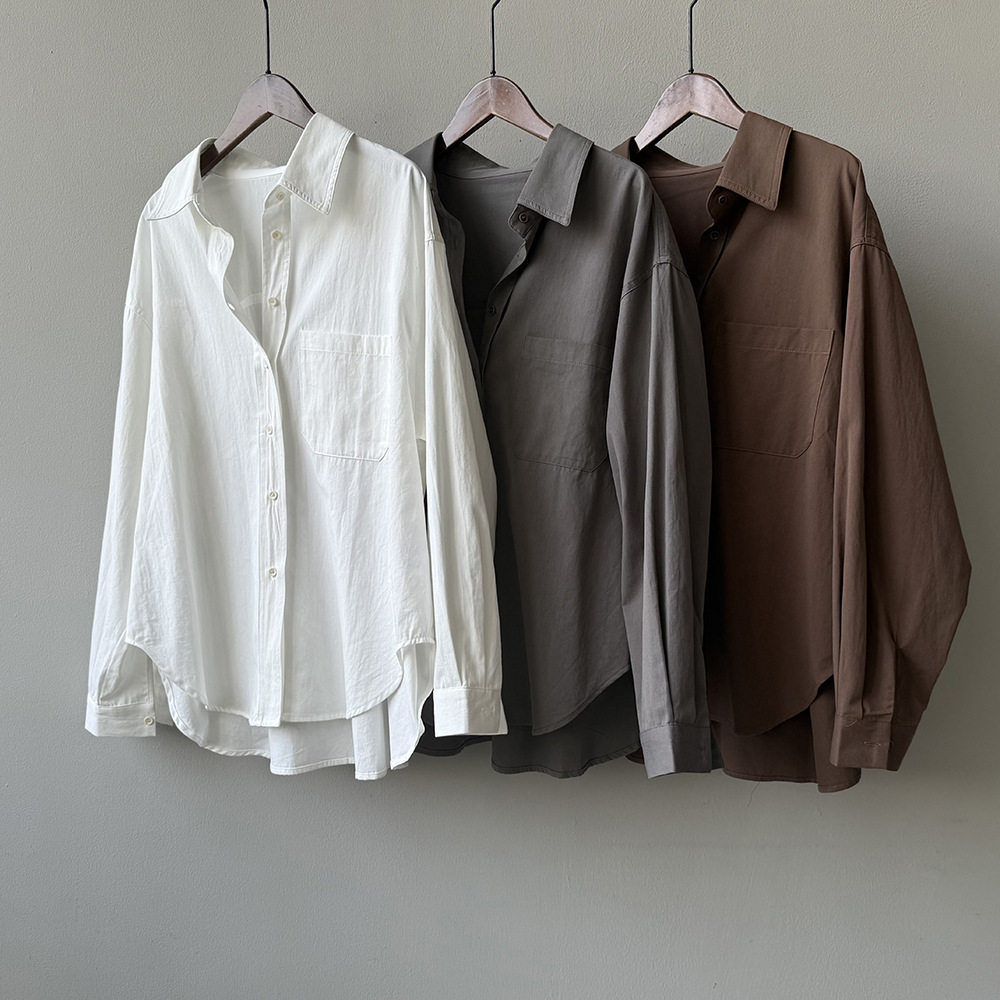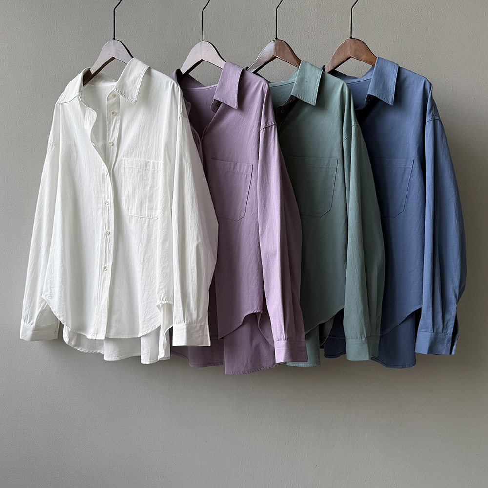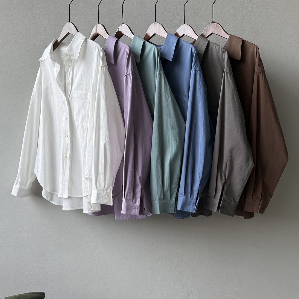 6カラー【トップス】ドーパミンコットン シャツ レディース 秋新作 韓国風 ゆったり シンプル レイヤードに最適【JZシリーズ】