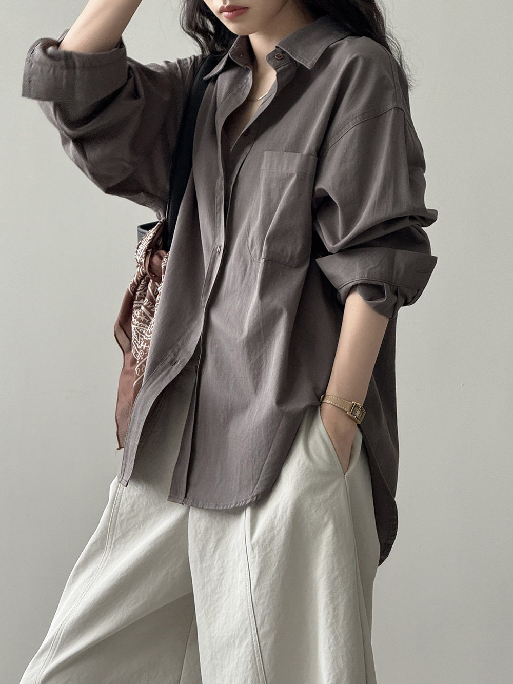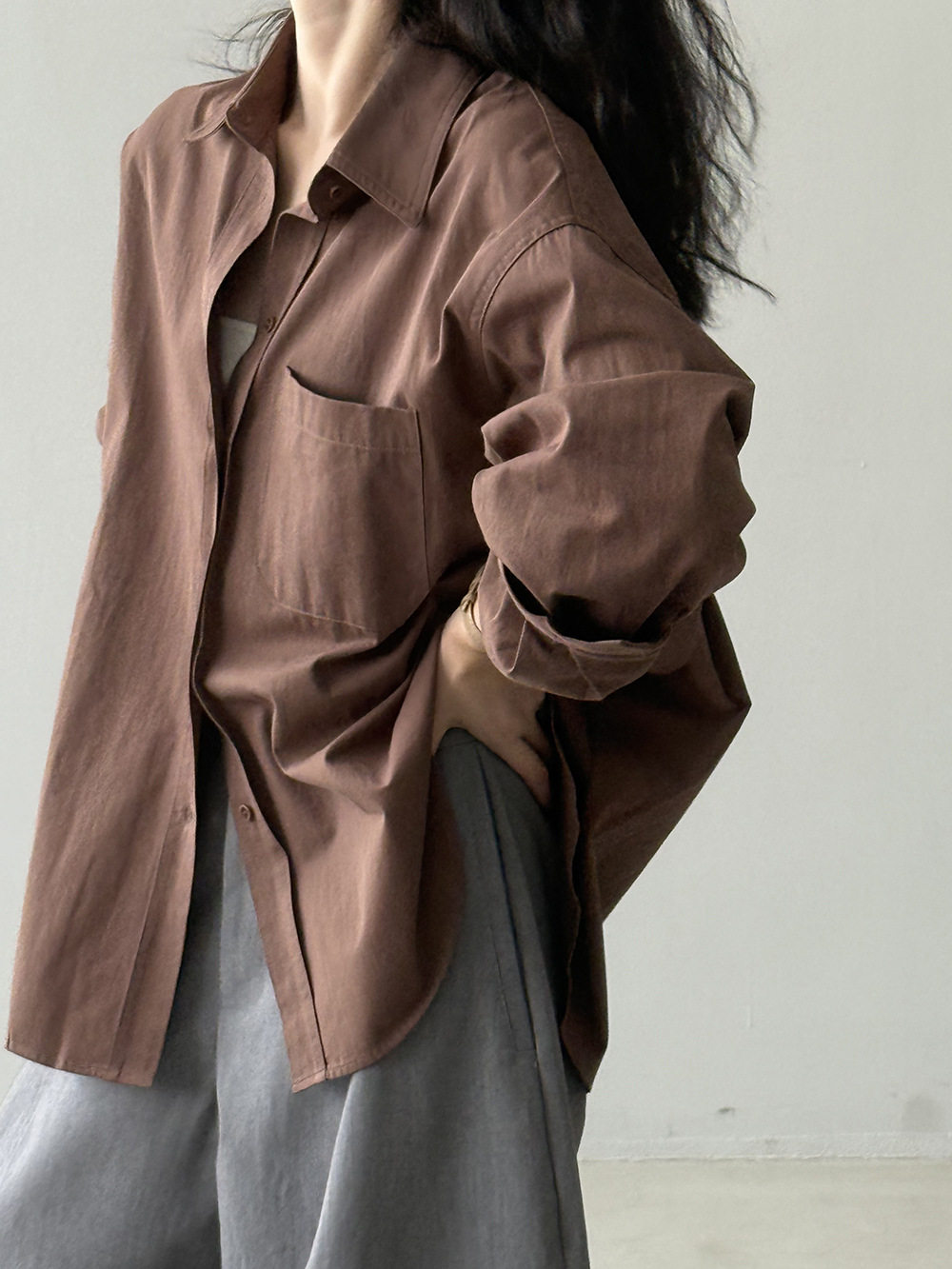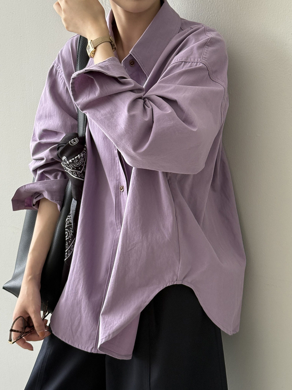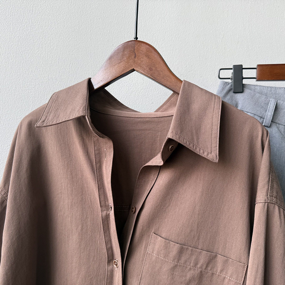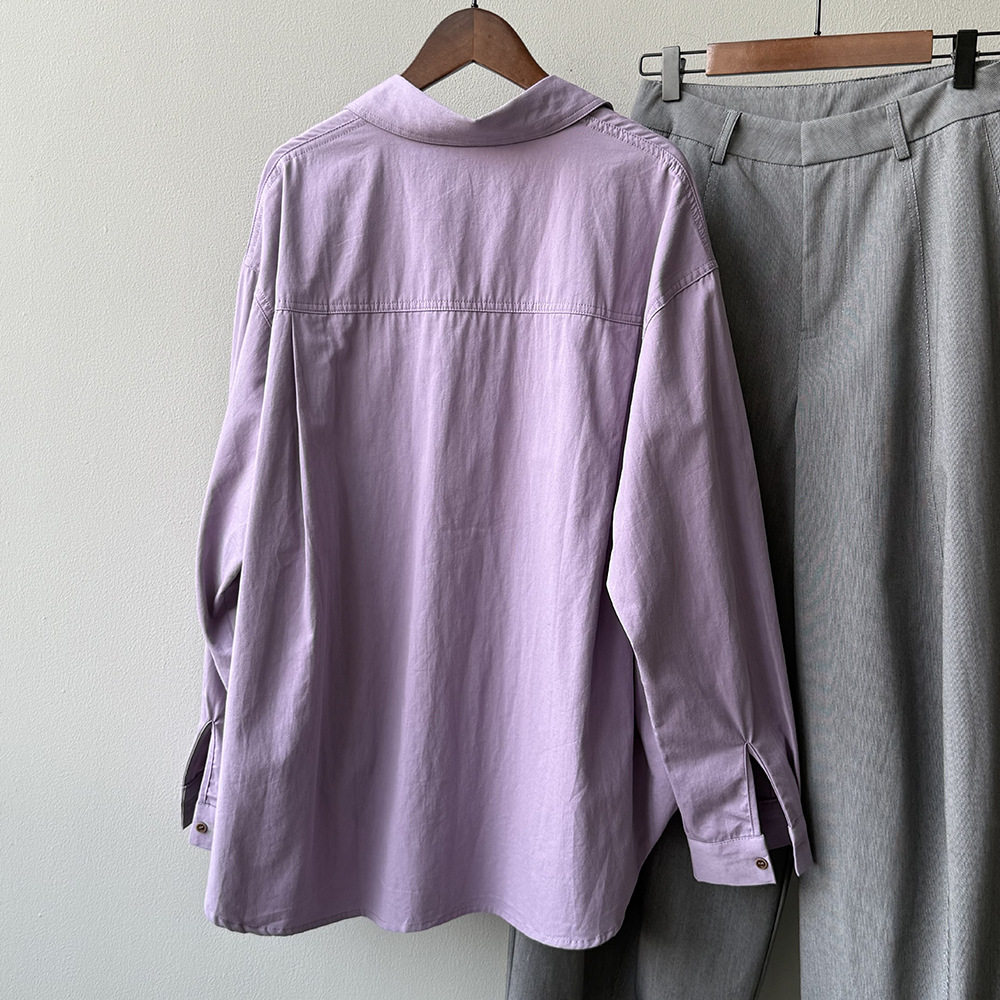 6カラー【トップス】ドーパミンコットン シャツ レディース 秋新作 韓国風 ゆったり シンプル レイヤードに最適【JZシリーズ】