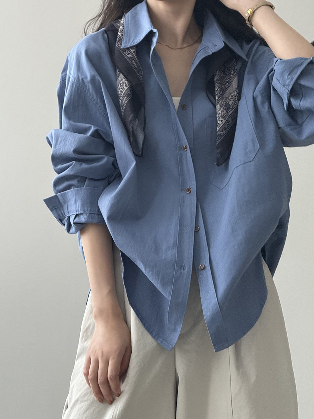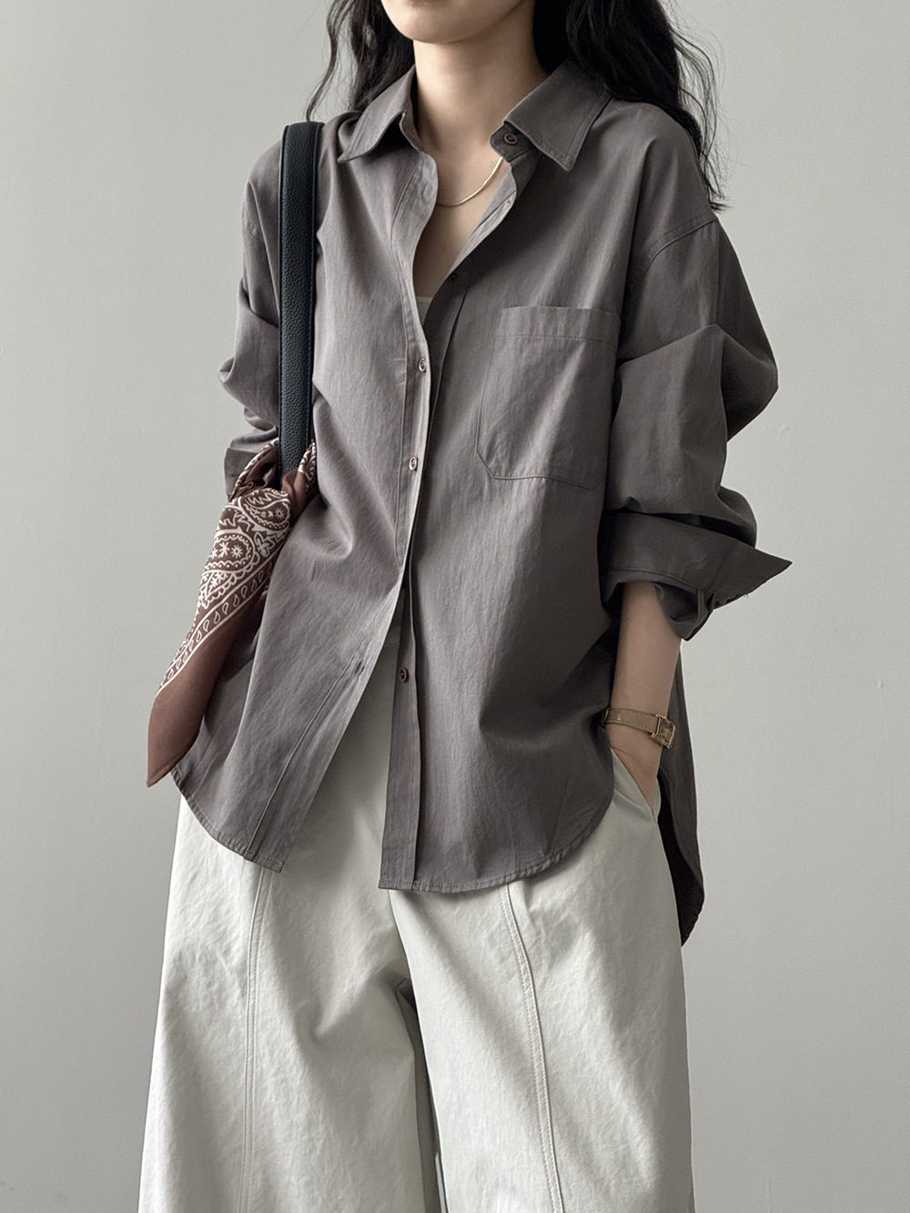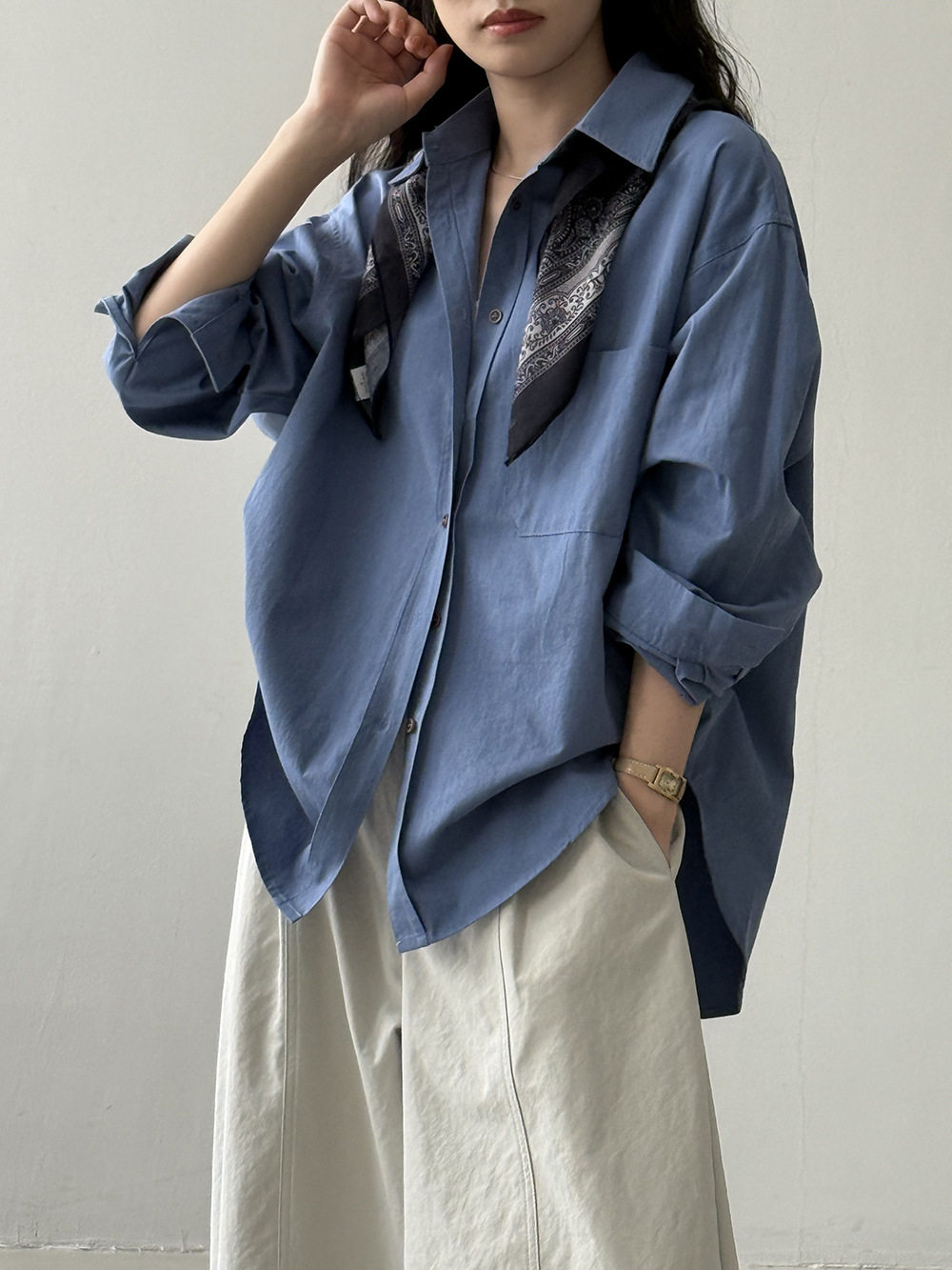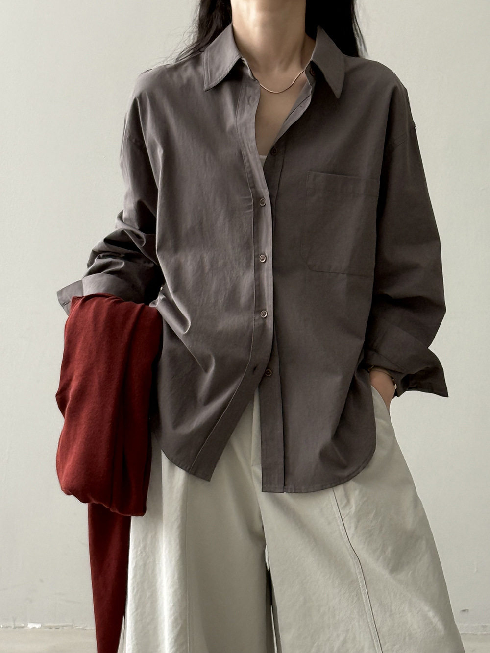 6カラー【トップス】ドーパミンコットン シャツ レディース 秋新作 韓国風 ゆったり シンプル レイヤードに最適【JZシリーズ】