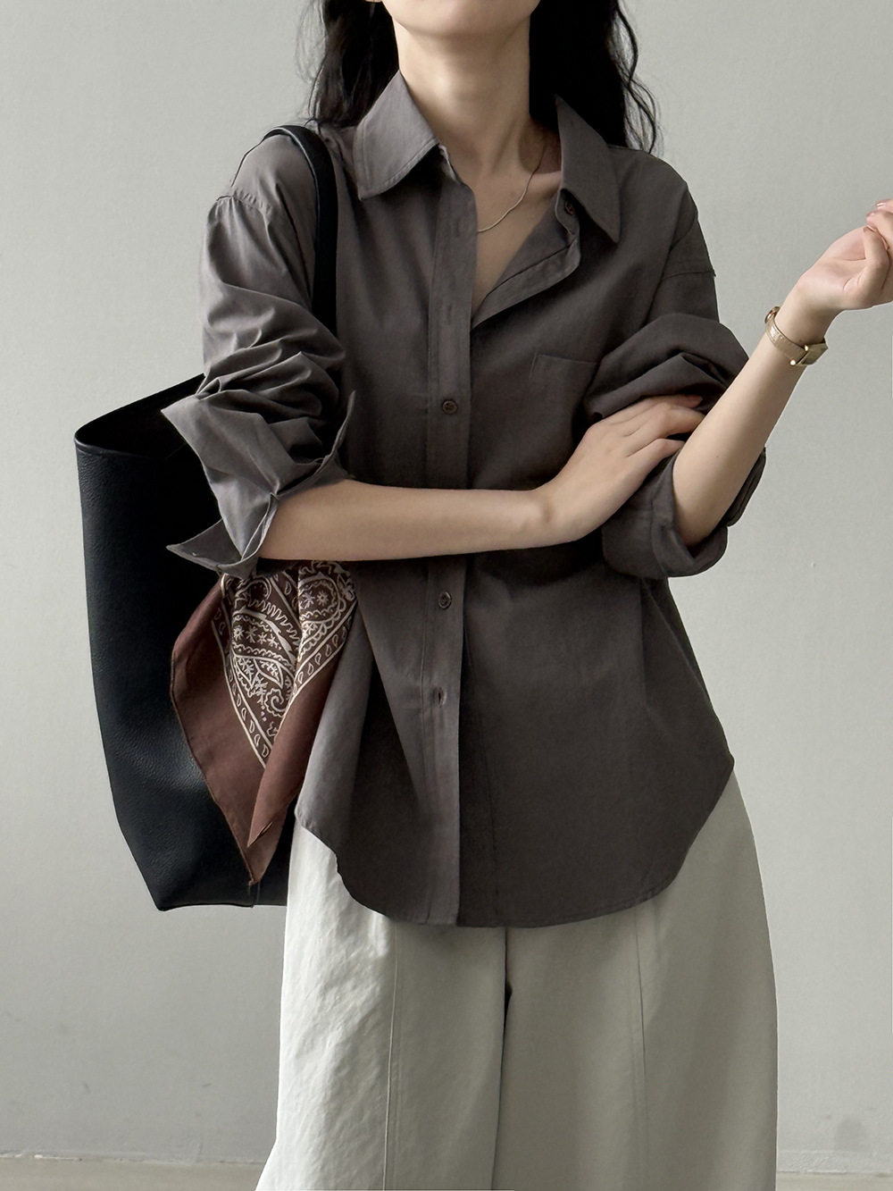 【商品名】【トップス】ドーパミンコットン シャツ レディース 秋新作 韓国風 ゆったり シンプル レイヤードに最適【JZシリーズ】