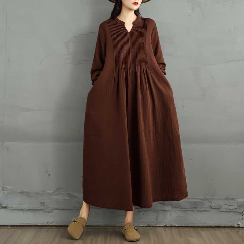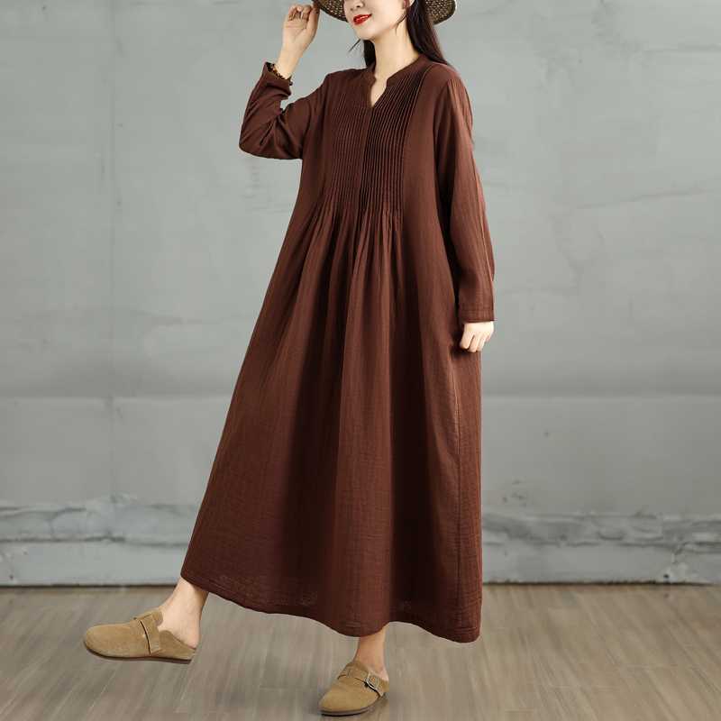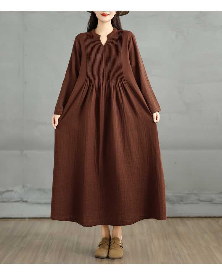【ワンピース】春 秋 冬 二重ガーゼ レトロ風 フレア 長袖 ワンピース 【SHシリーズ】