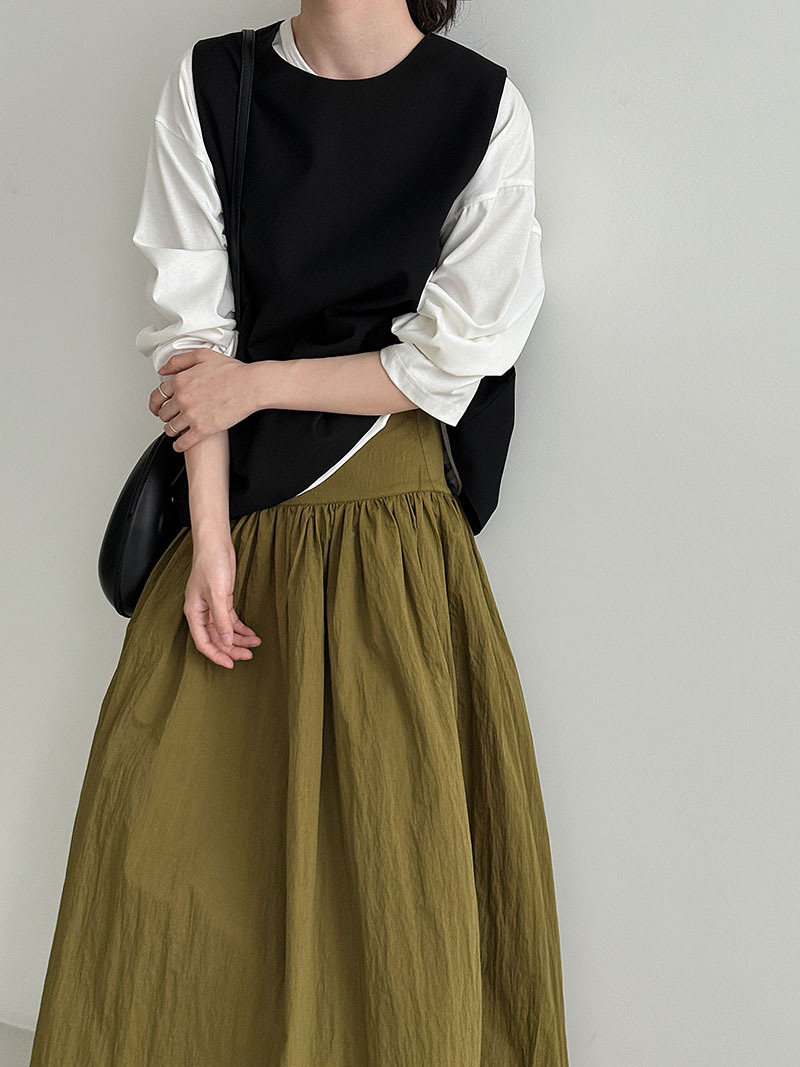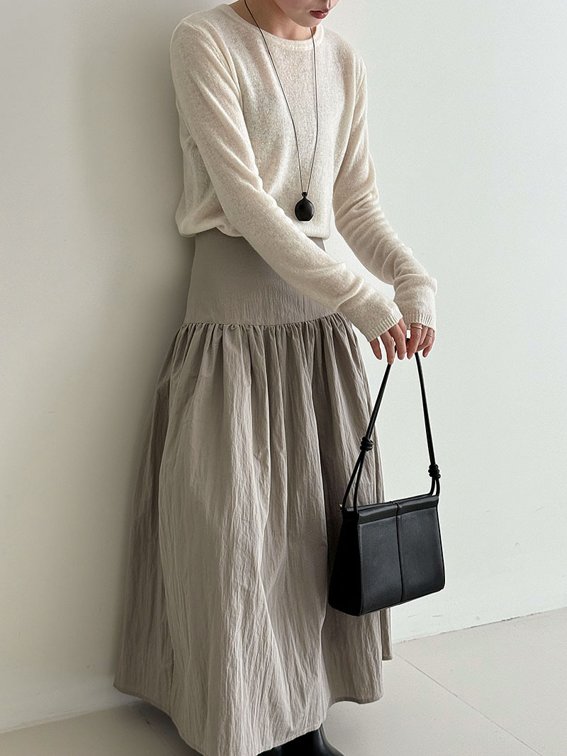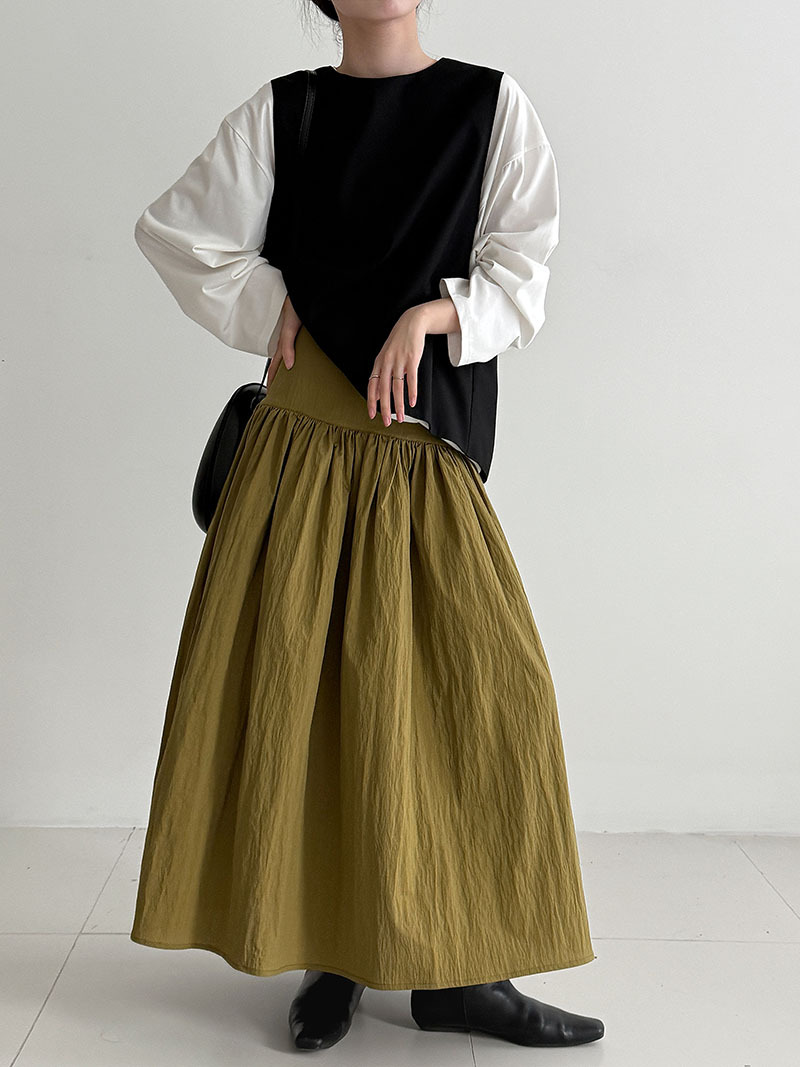 【ワンピース】ドローストリング付き ゆったりとした 春 秋 冬 切り替え 長袖 ワンピース 【AHシリーズ】