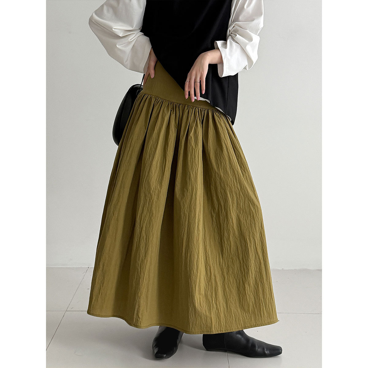【ワンピース】細見え 日系 Vネック 無地 長袖ワンピース 切替デザイン ゆったり 気質ロング【JZシリーズ】【AHシリーズ】