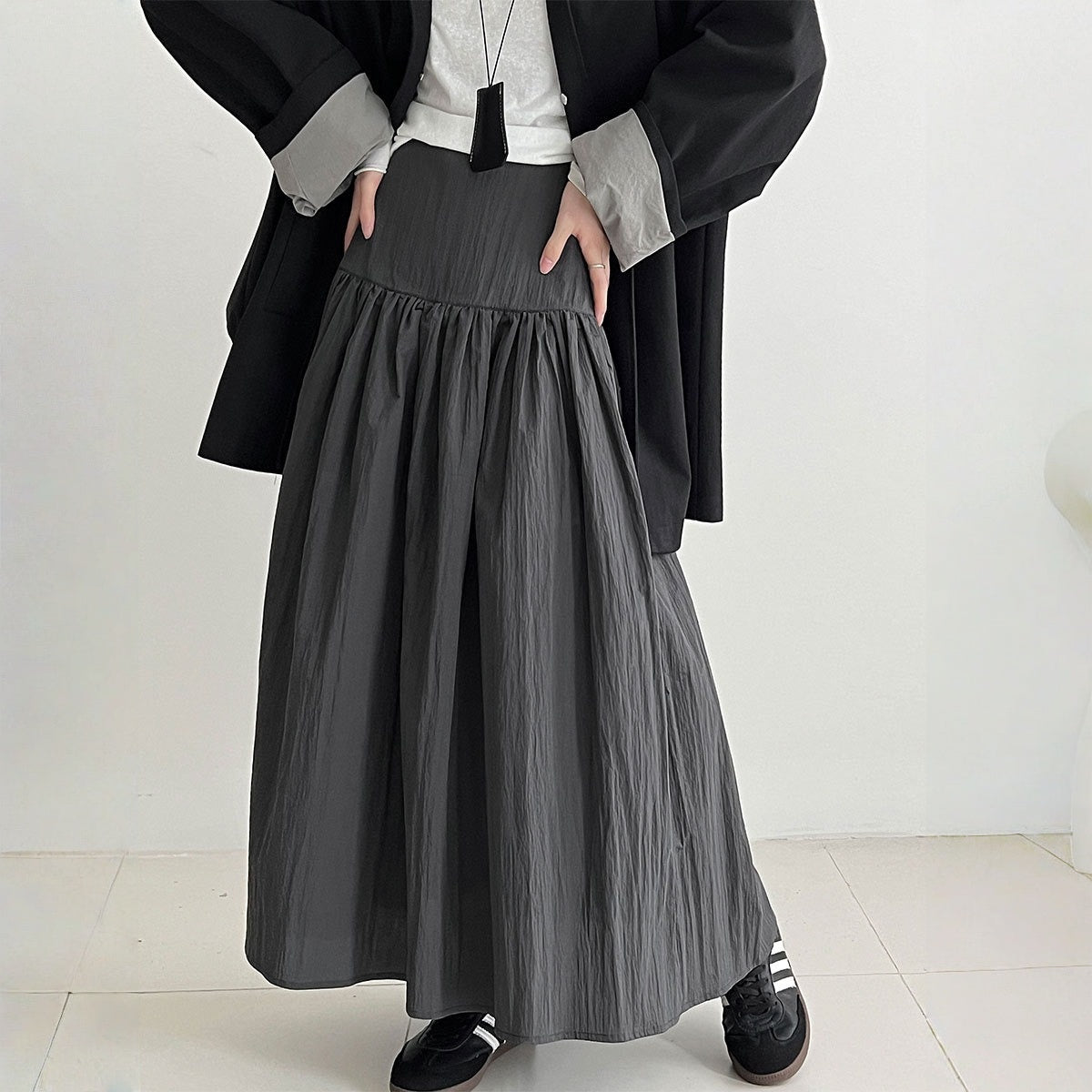 【ボトムス】落ち感 細見え ウール裏起毛 Aラインロング スカート 【JZシリーズ】