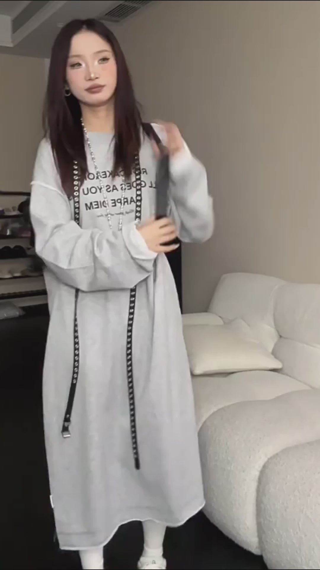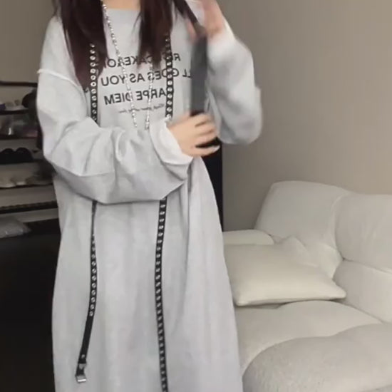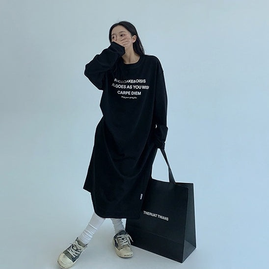 【商品名】【ワンピース】春 秋 冬 プリント アルファベット 長袖 パーカー ワンピース 【FCシリーズ】