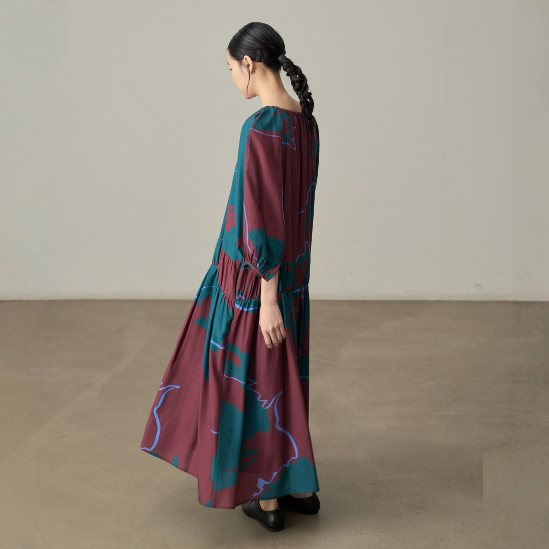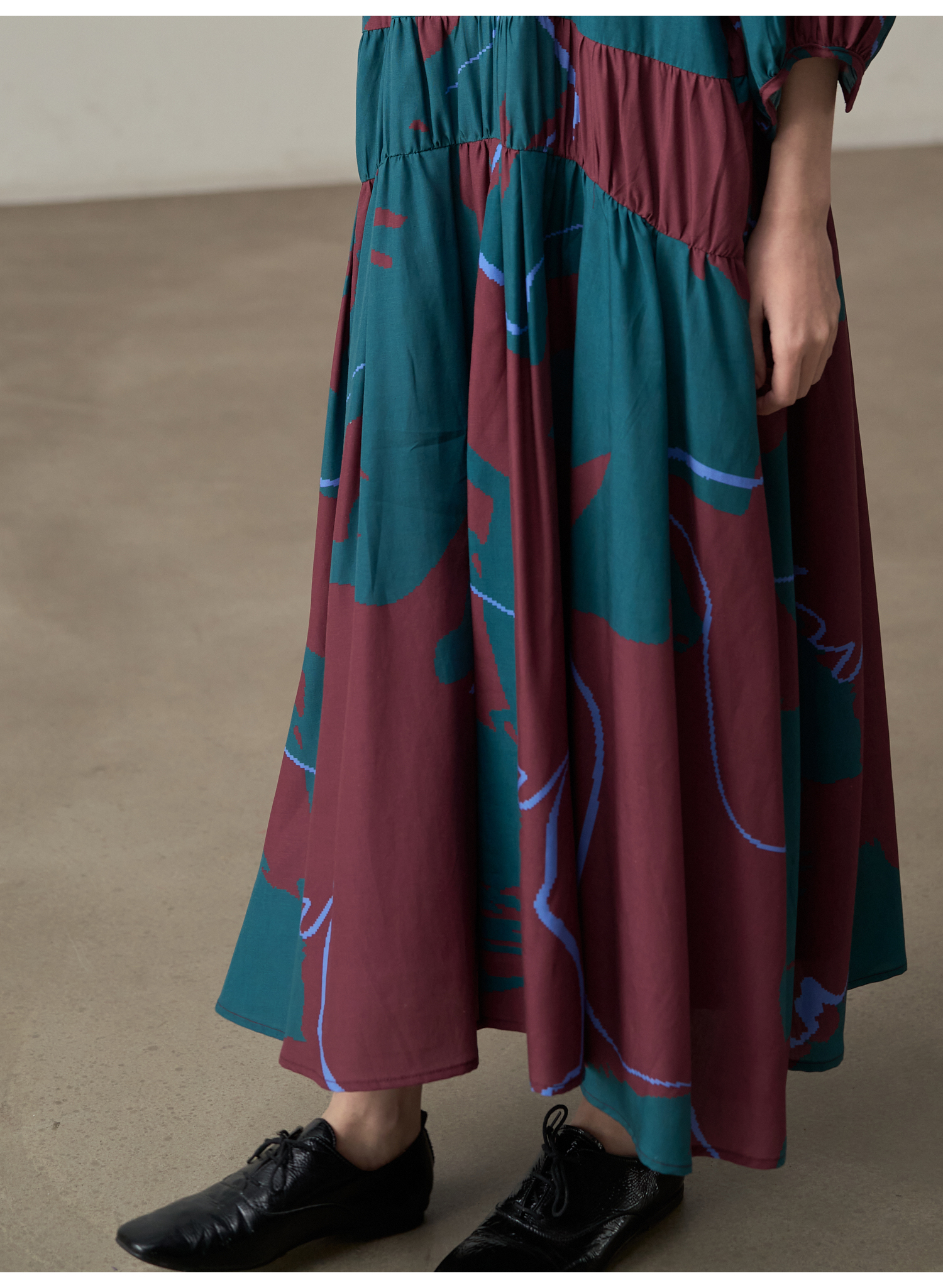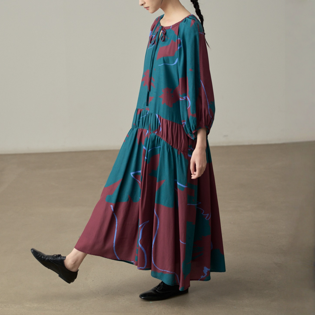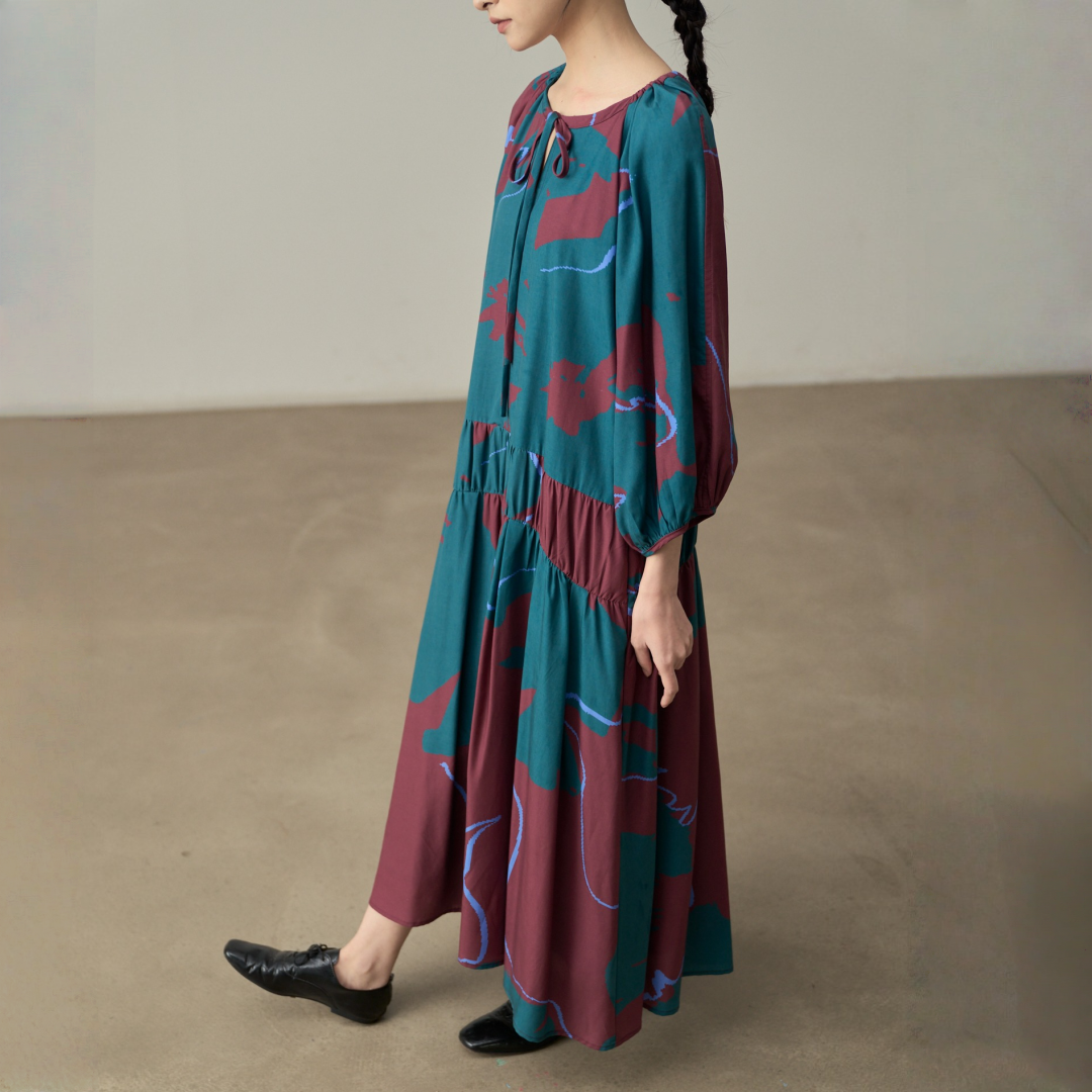【商品名】【ワンピース】春 秋 夏 レトロ ラウンドネック 花柄 長袖 ワンピース【SHシリーズ】