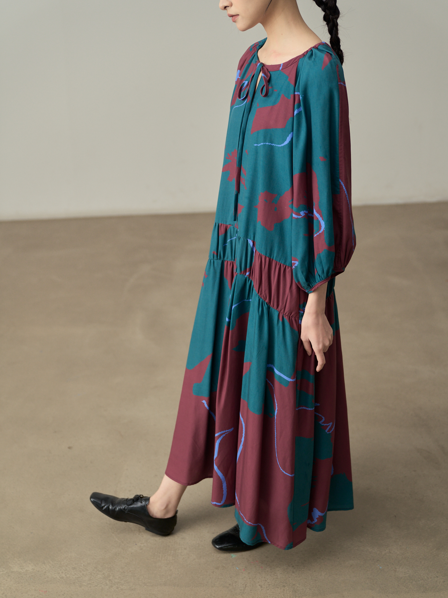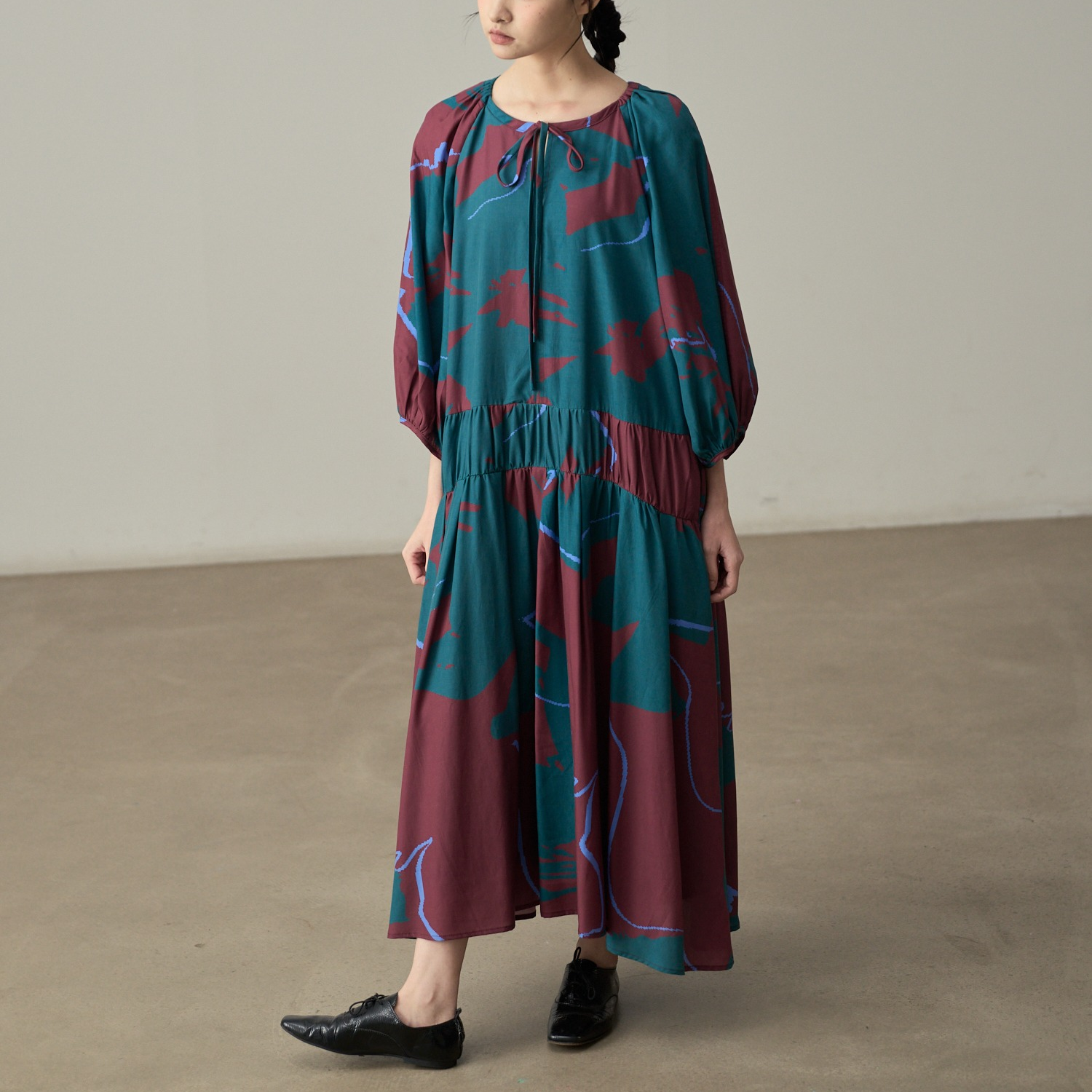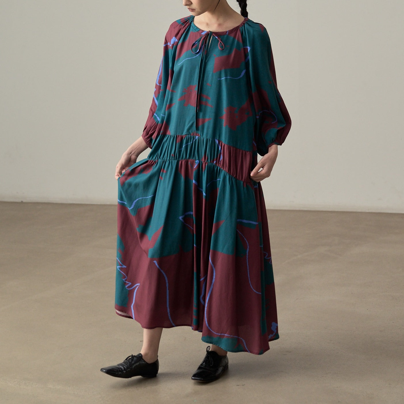 【商品名】【ワンピース】春 秋 夏 レトロ ラウンドネック 花柄 長袖 ワンピース【SHシリーズ】