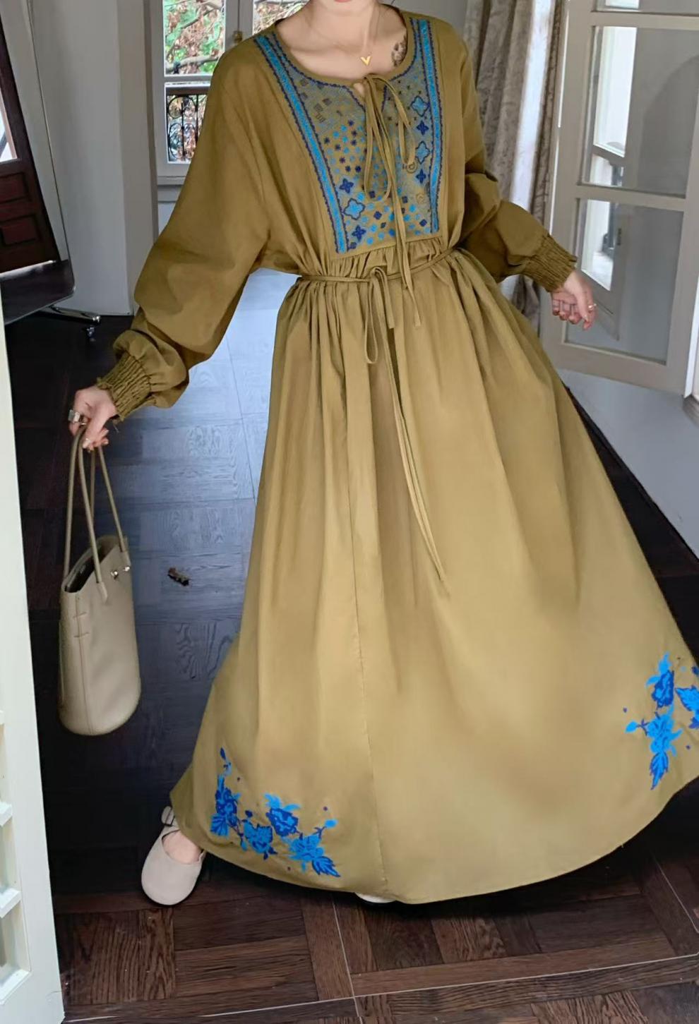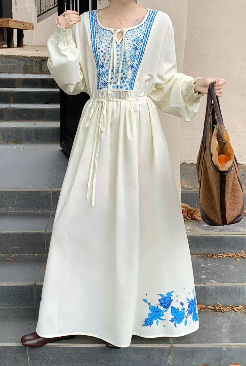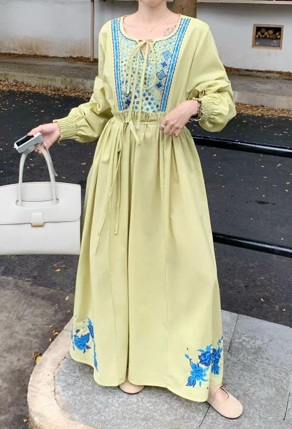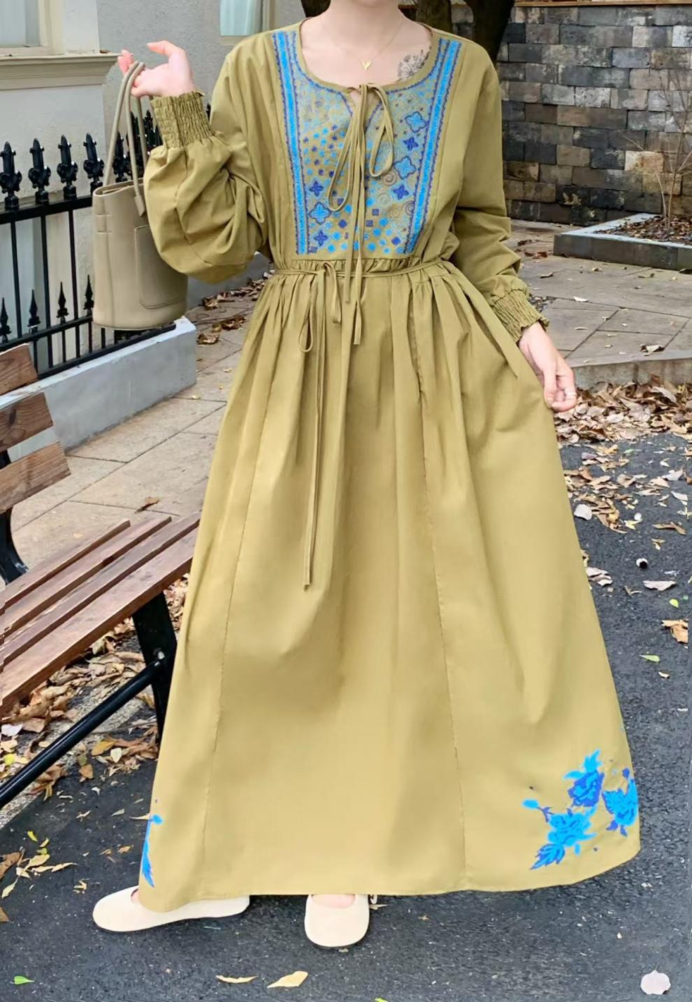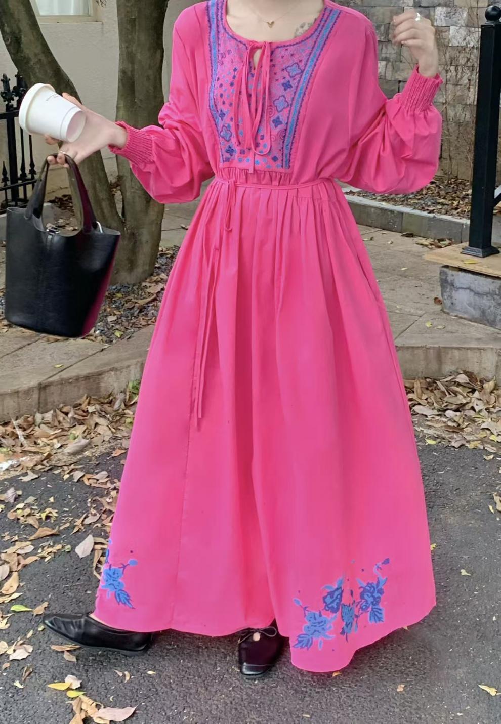 【ワンピース】春 秋 刺繍 ルーズ エレガント 花柄 長袖 ワンピース 【SHシリーズ】