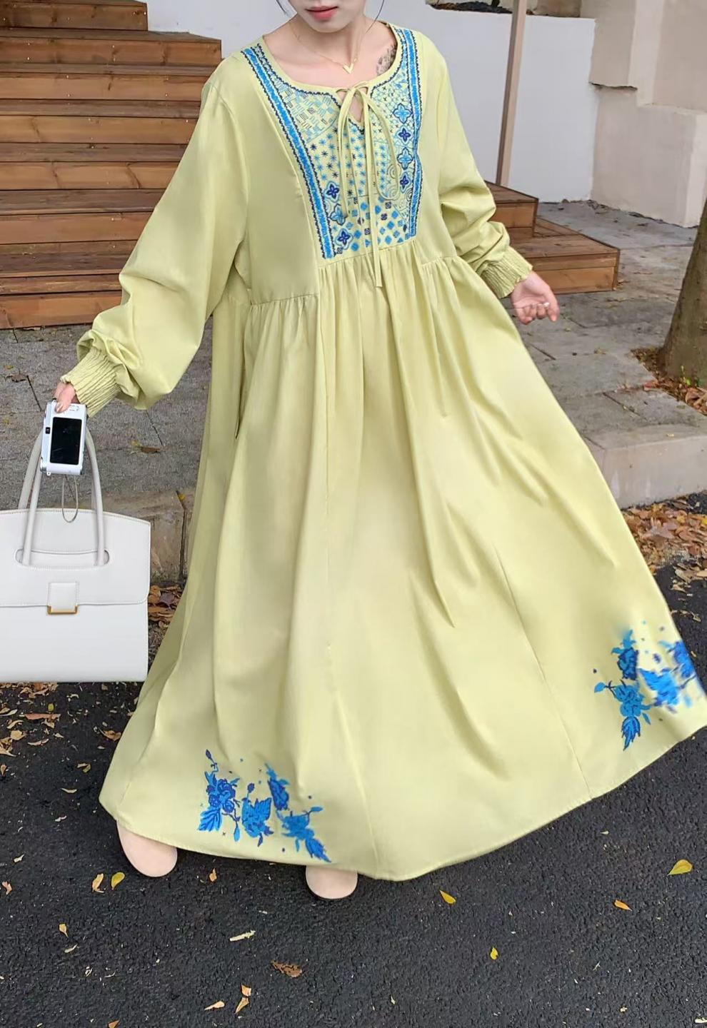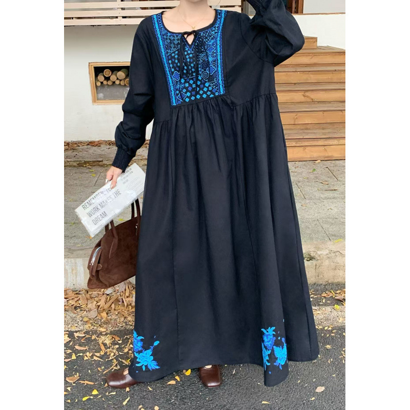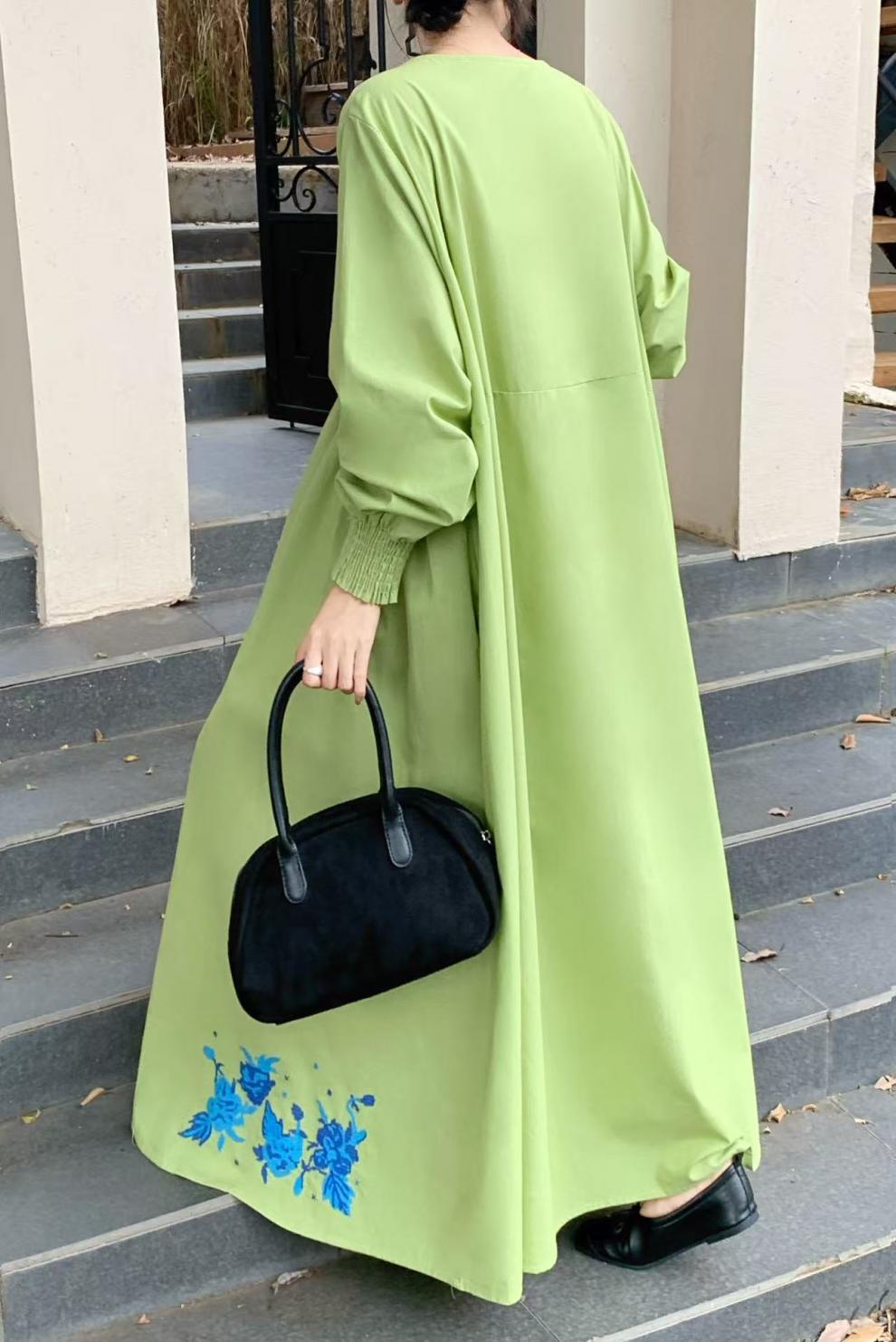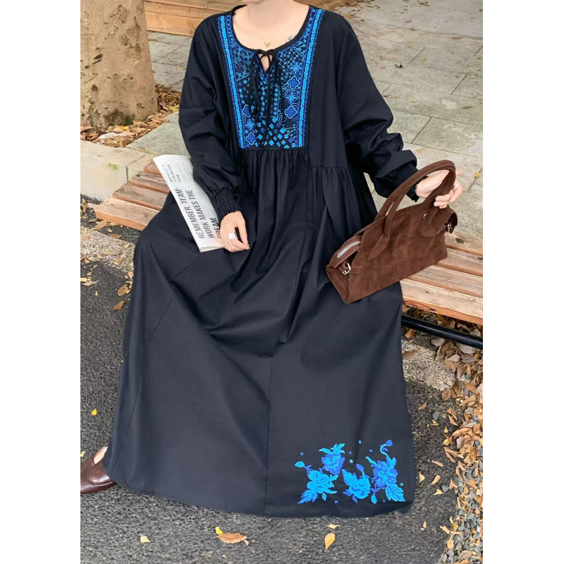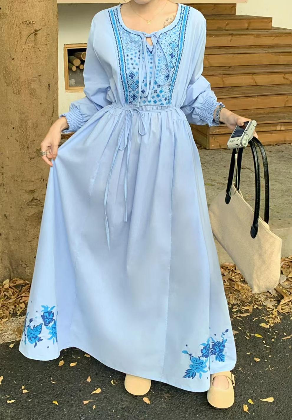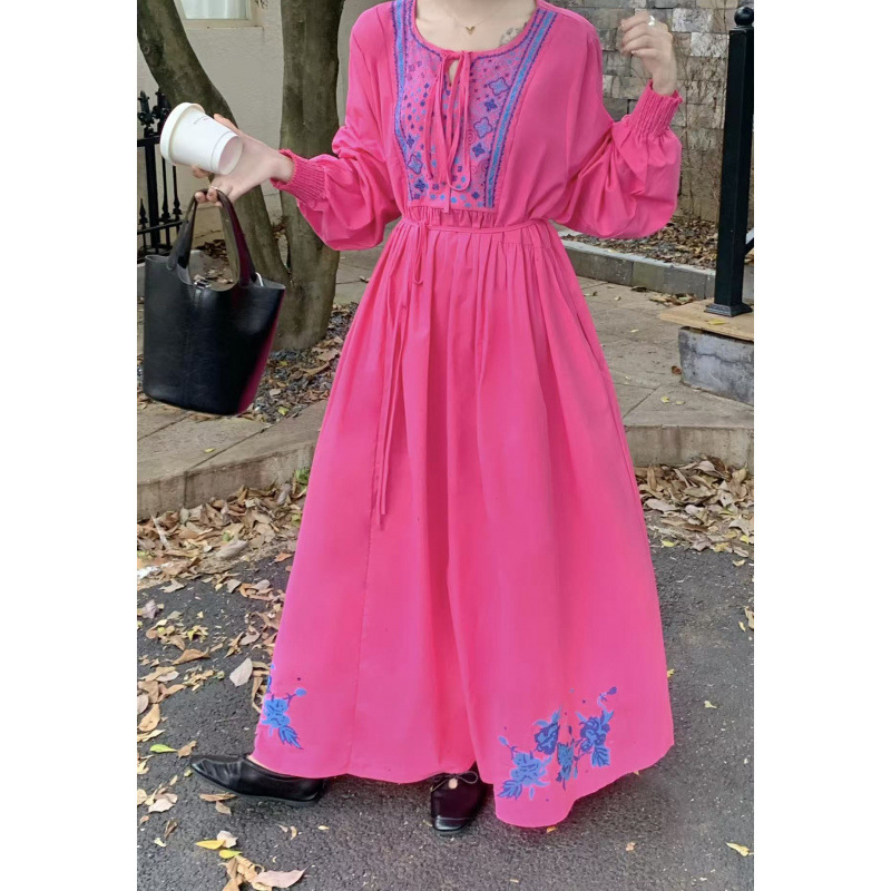【ワンピース】春 秋 刺繍 ルーズ エレガント 花柄 長袖 ワンピース 【SHシリーズ】