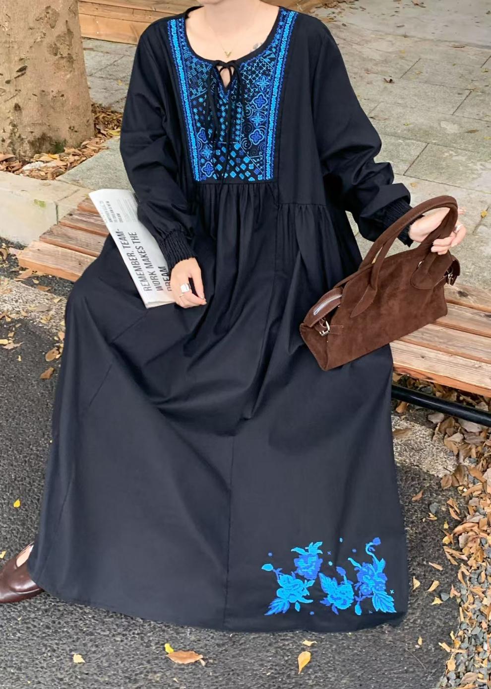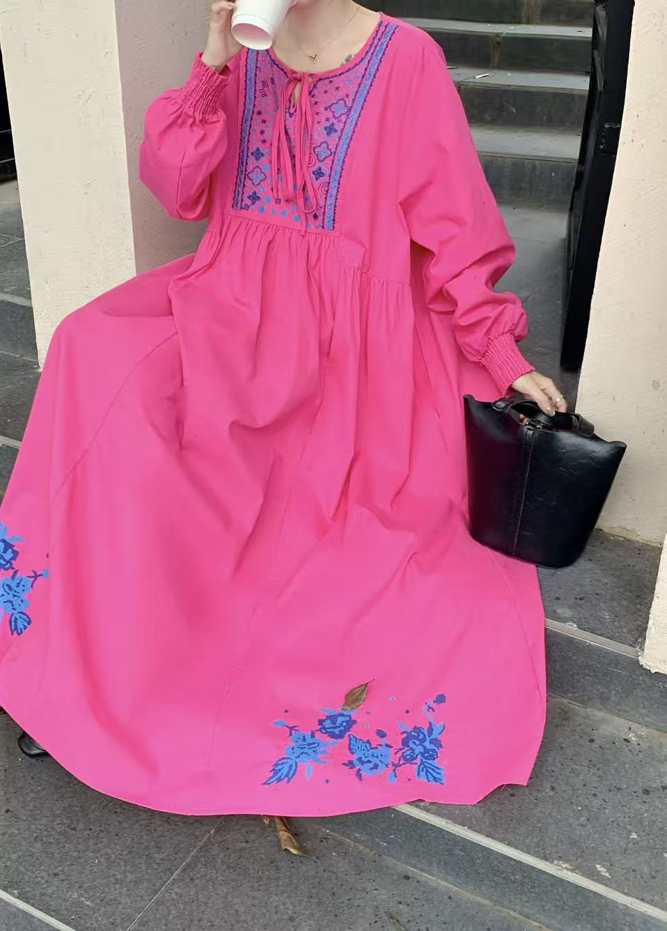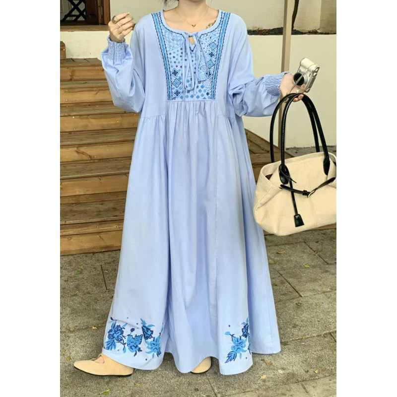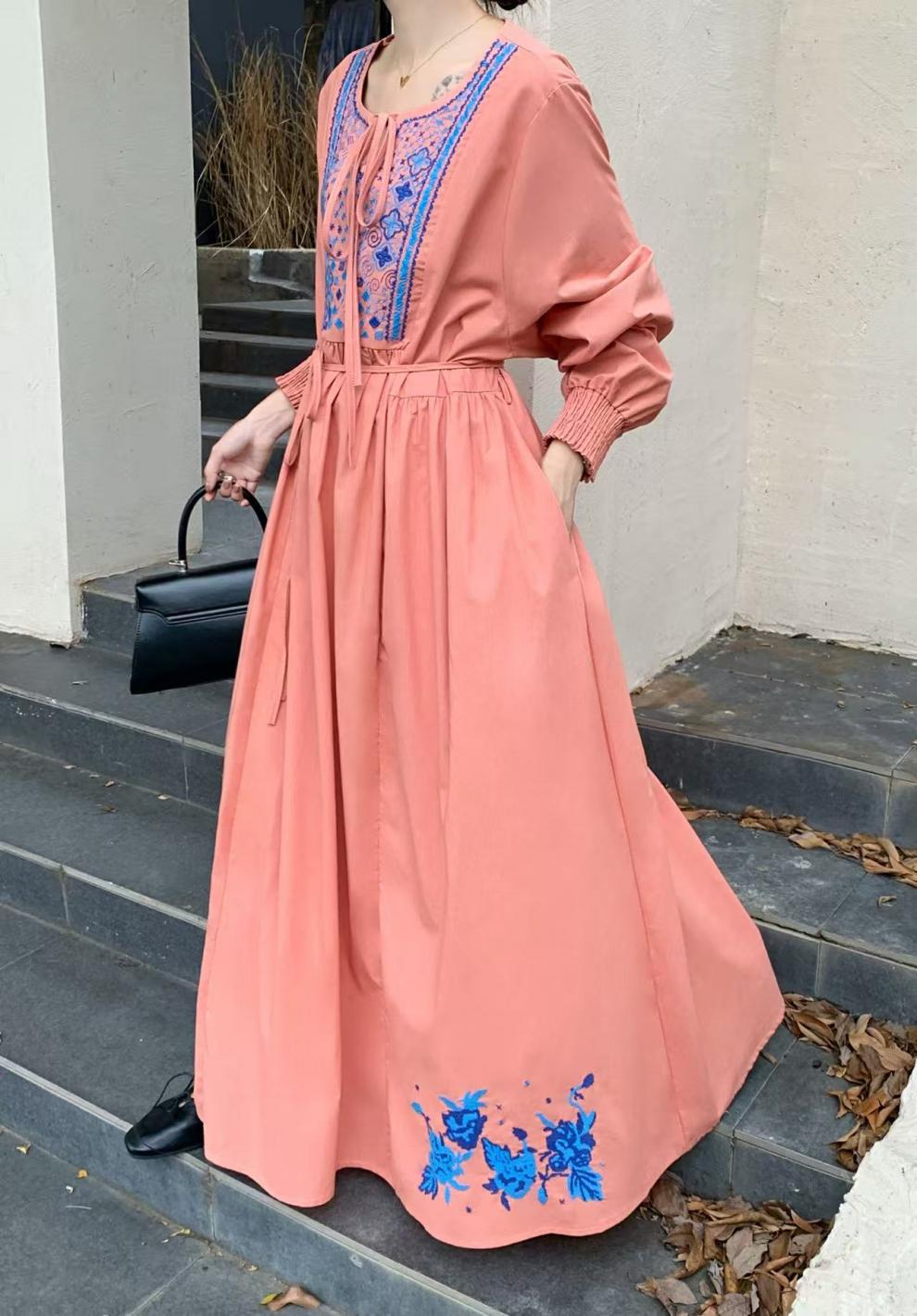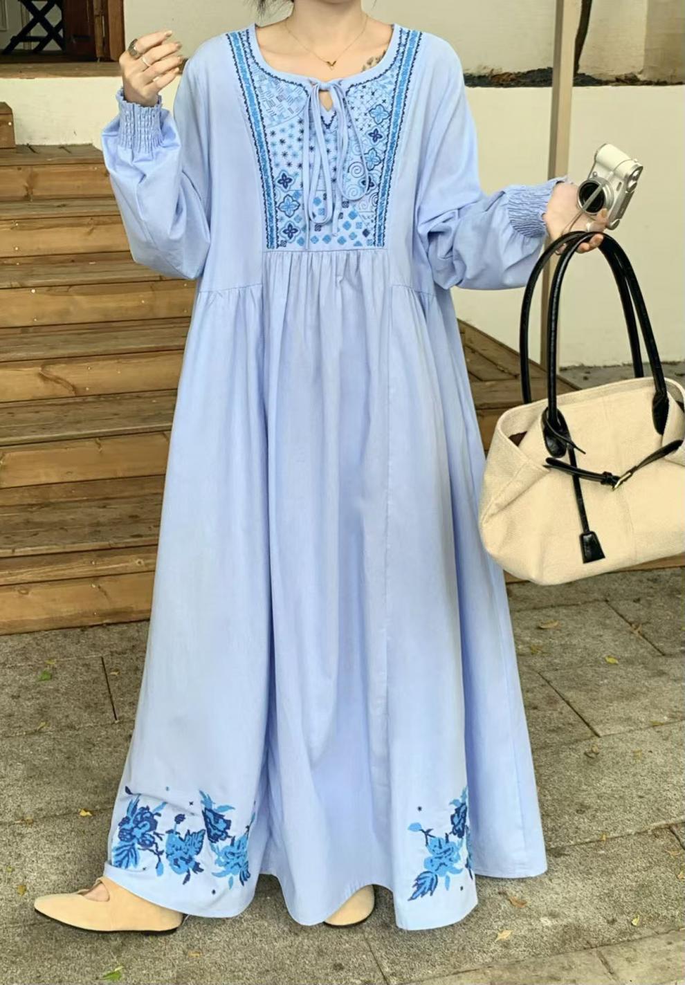 【ワンピース】春 秋 刺繍 ルーズ エレガント 花柄 長袖 ワンピース 【SHシリーズ】