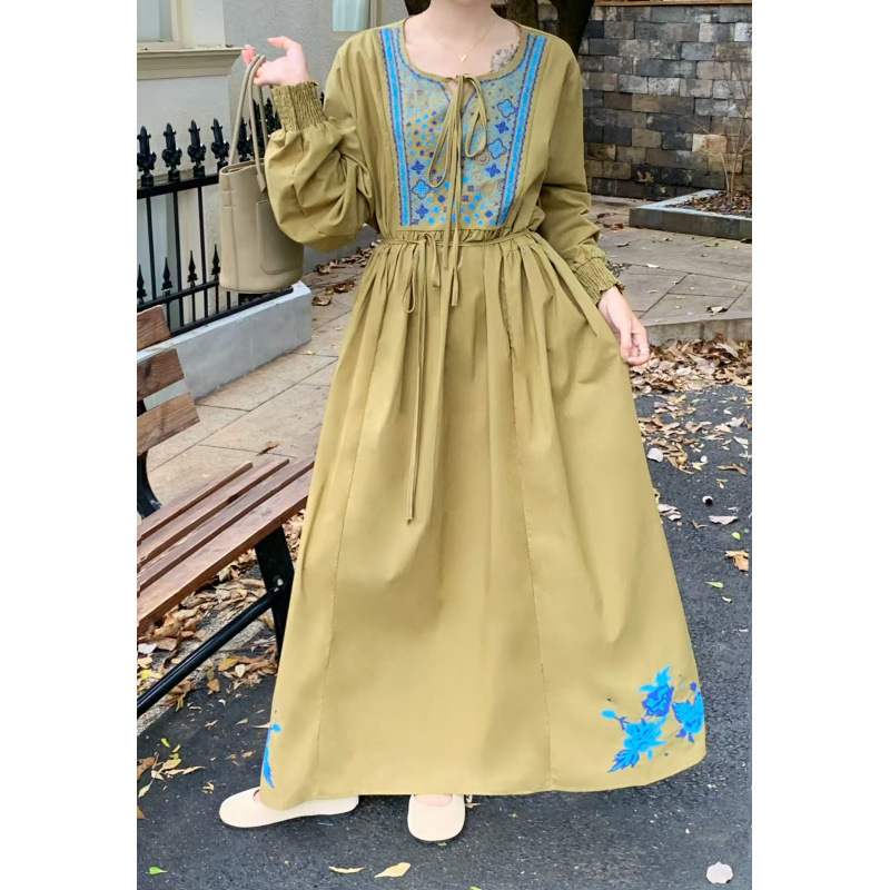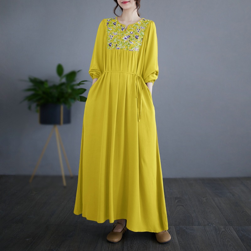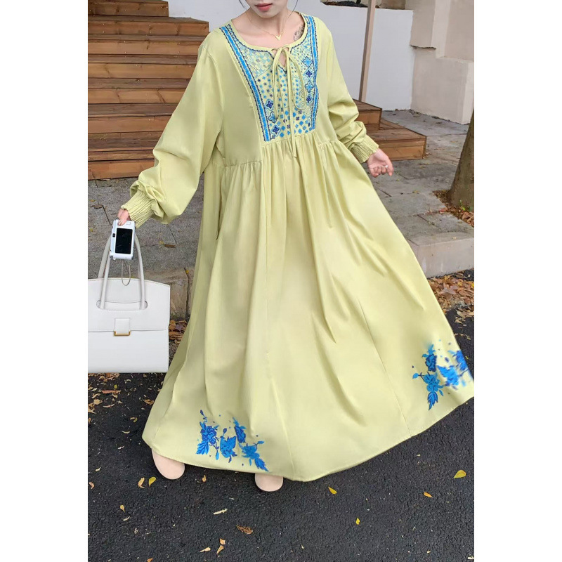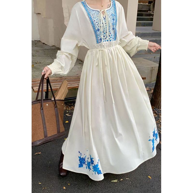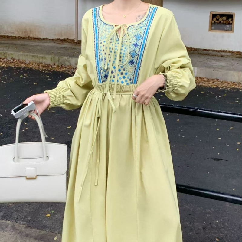 【商品名】【ワンピース】春 秋 刺繍 ルーズ エレガント 花柄 長袖 ワンピース 【SHシリーズ】