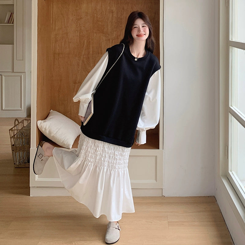 【ワンピース】レイヤード風 スウェットワンピース レディース ゆったり 体型カバー カジュアル ロング丈 長袖ワンピース 冬向け【JZシリーズ】