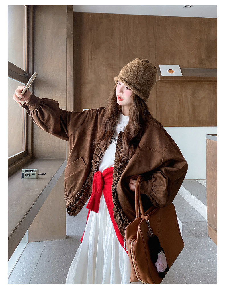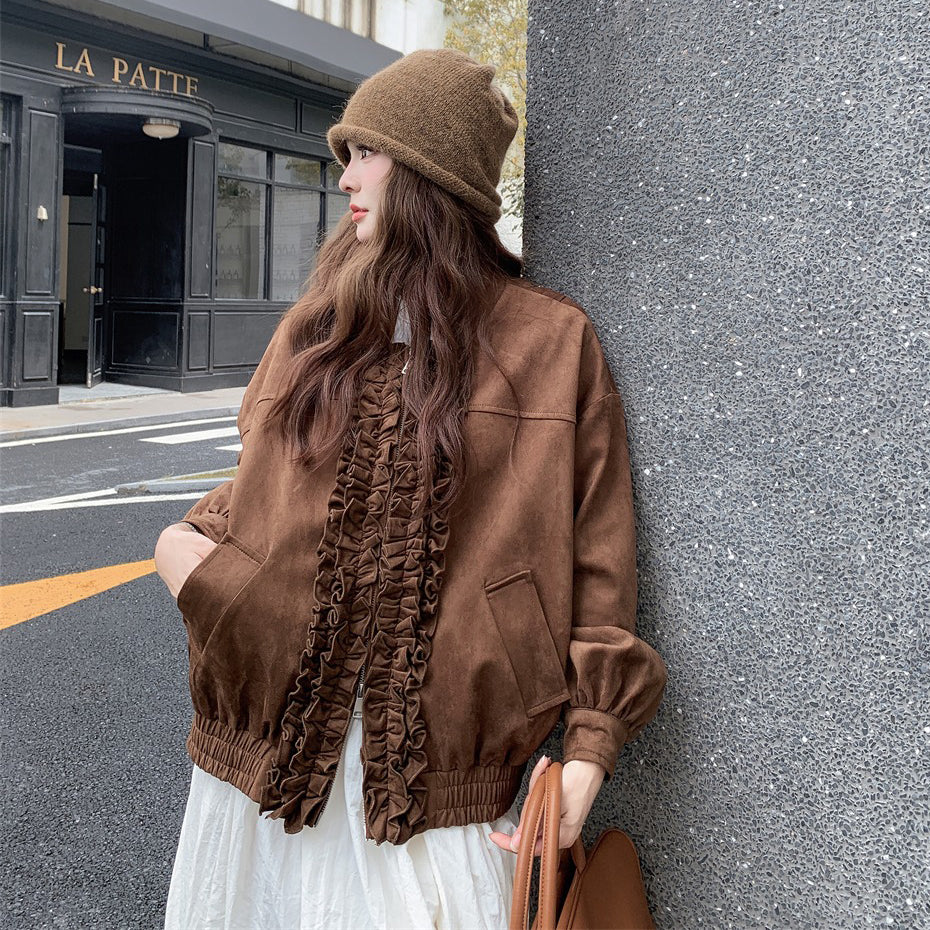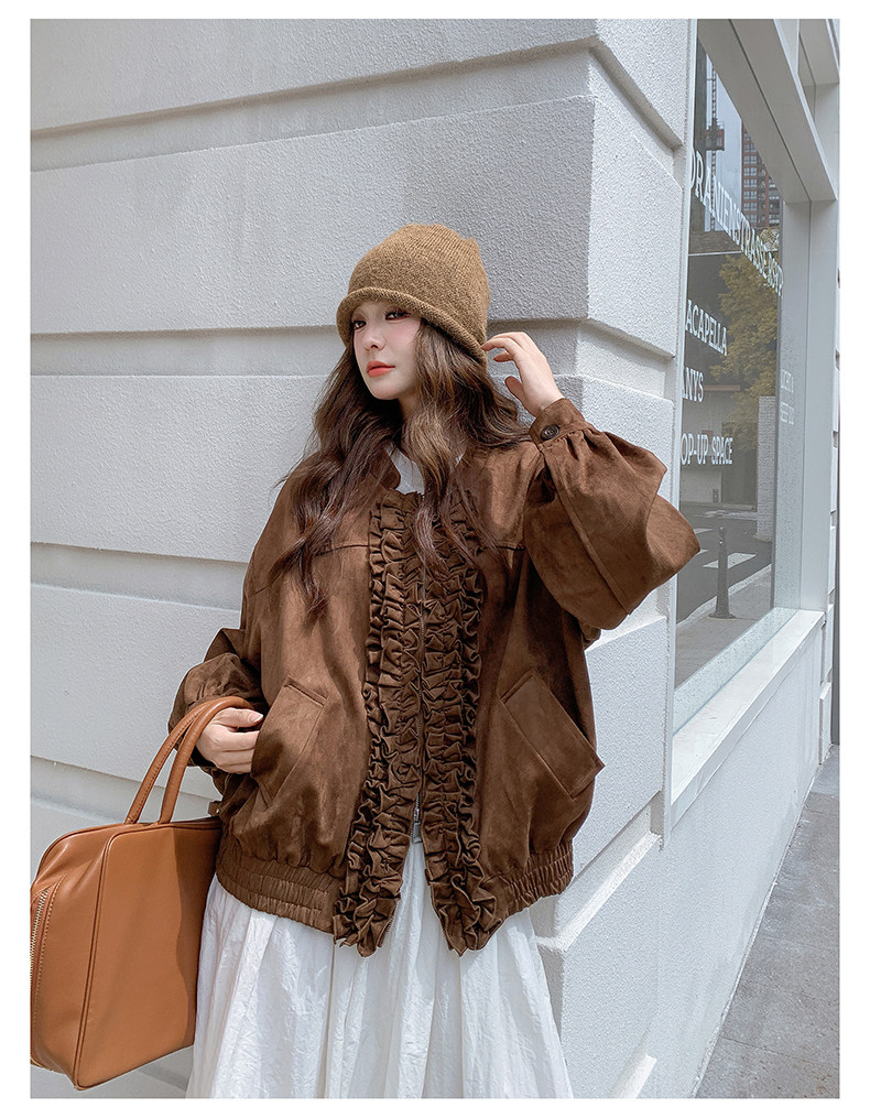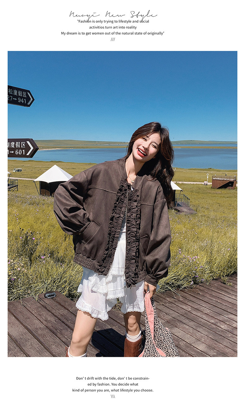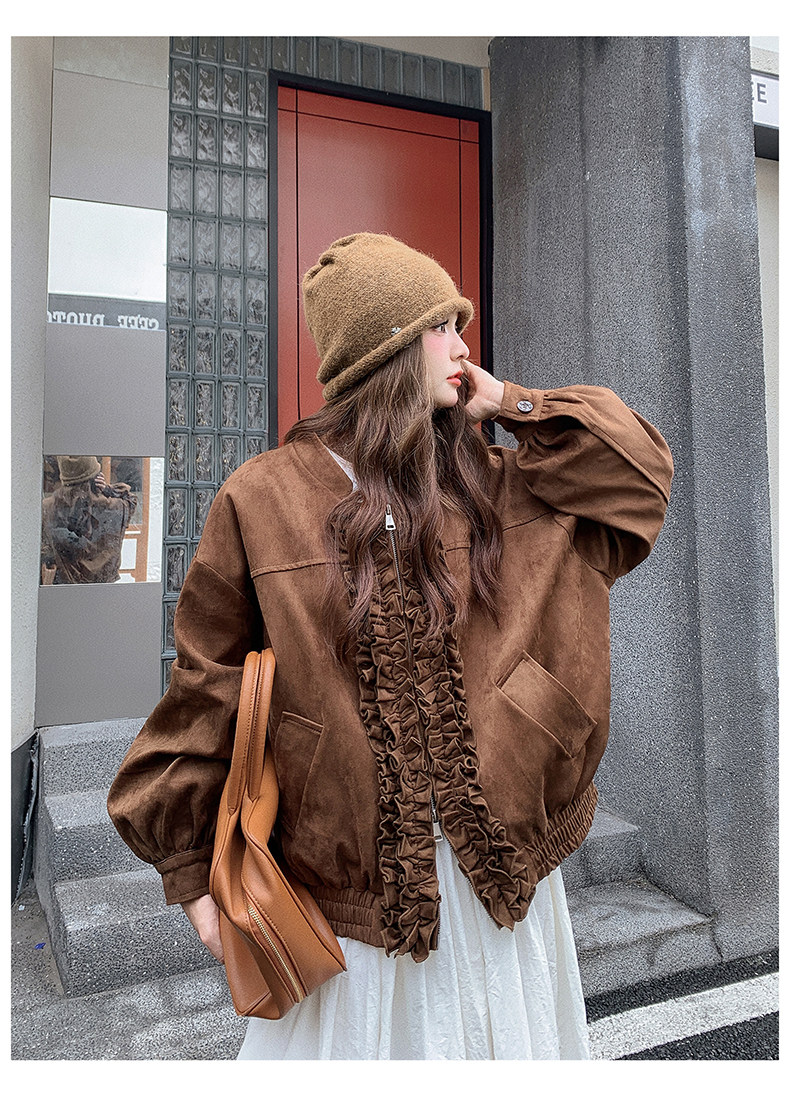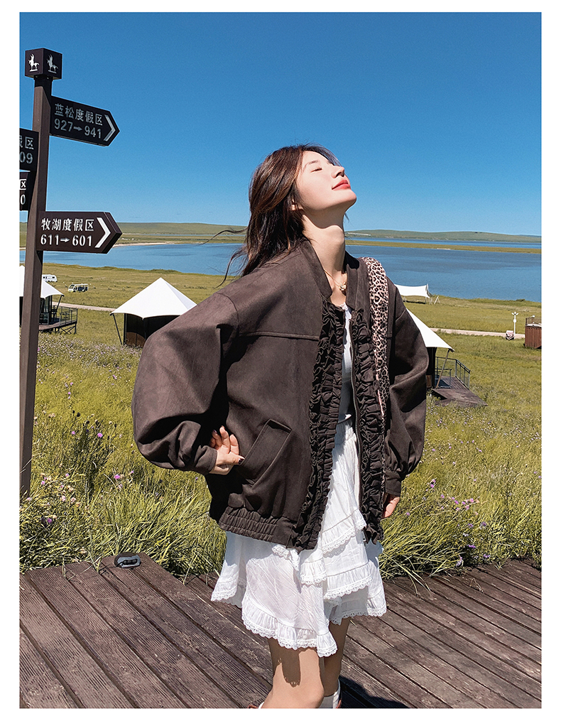 【アウター】カジュアル フリル切り替え スエード調 ショートジャケット【JZシリーズ】